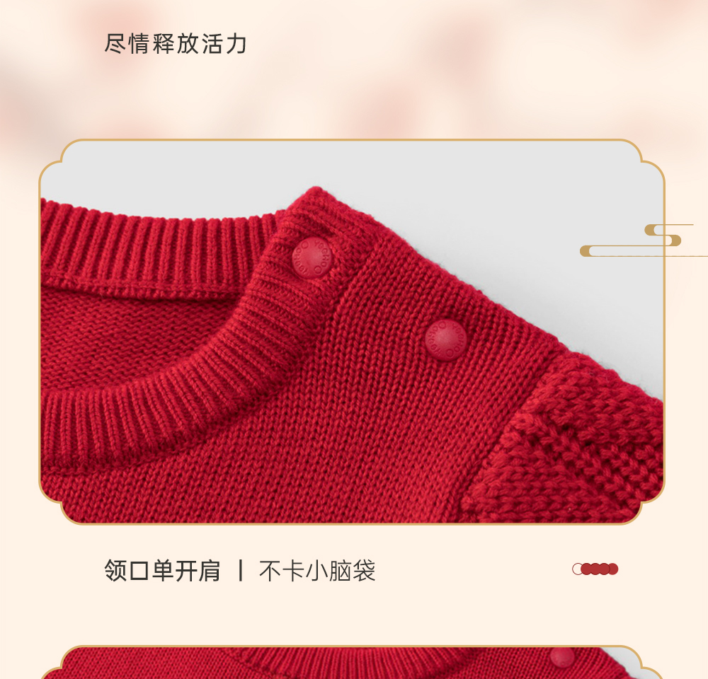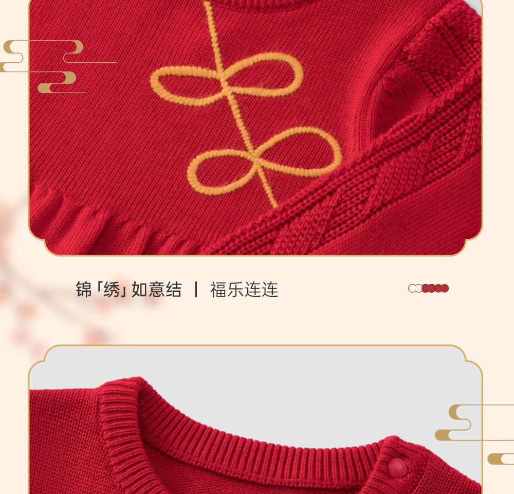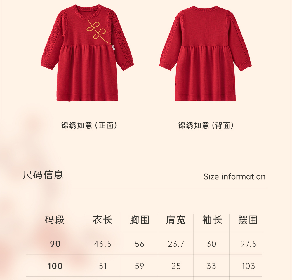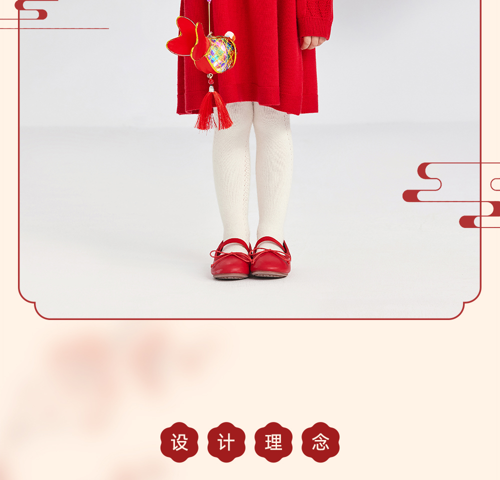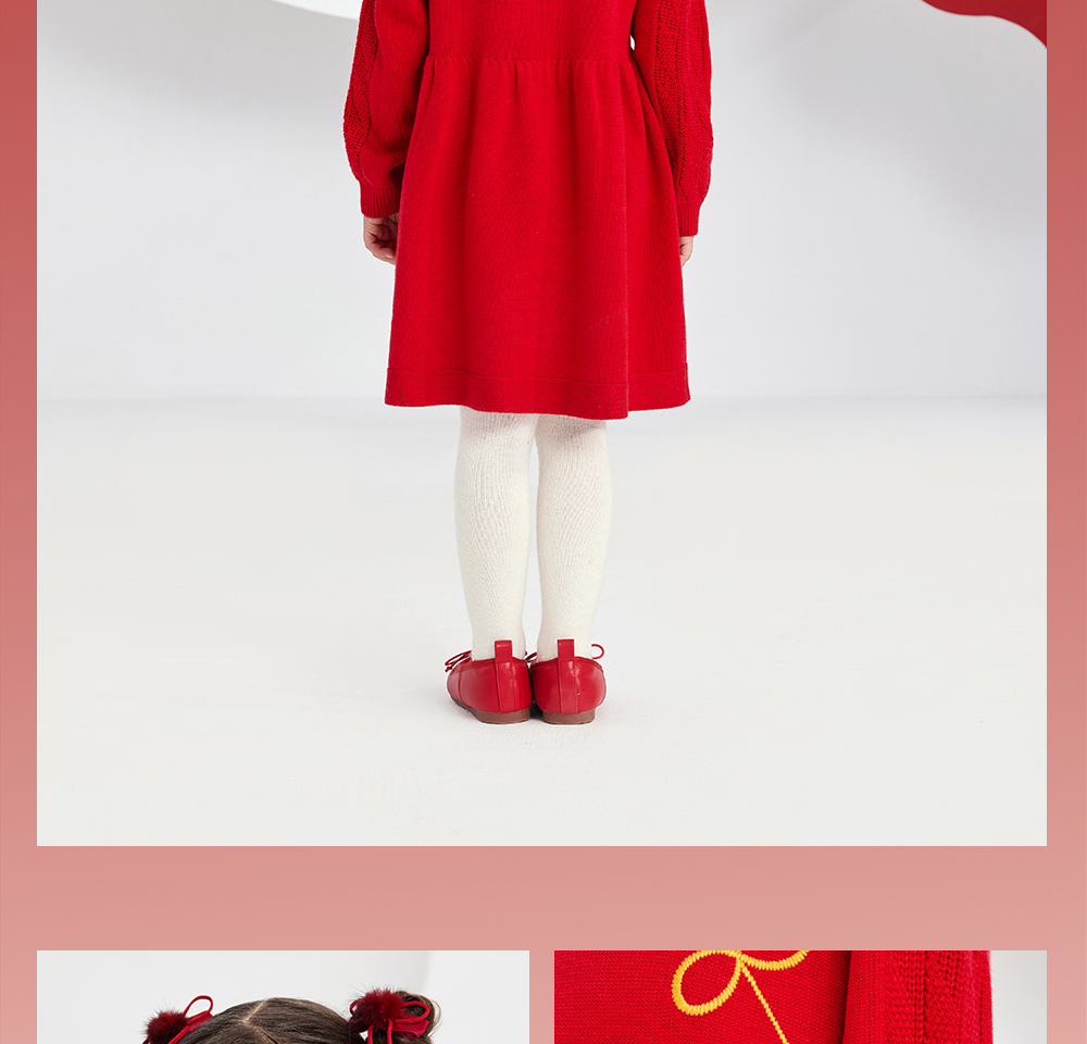 英氏女童国潮连衣裙秋季新中式喜庆羊毛保暖连衣裙