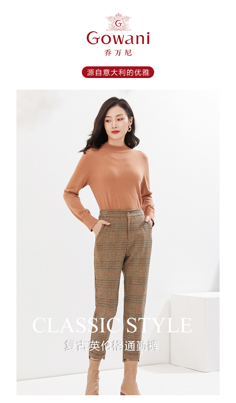 乔万尼休闲长裤复古英伦风格纹直筒裤EI4F593