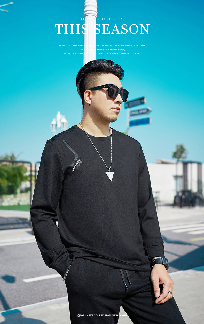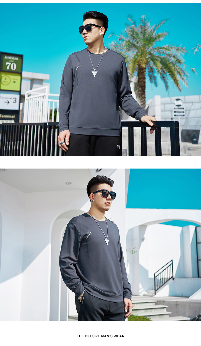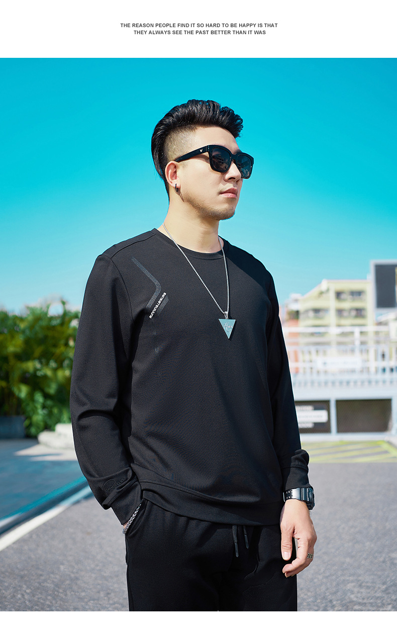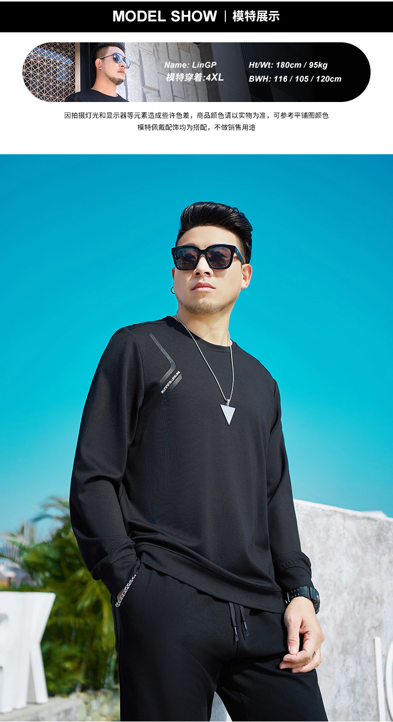 【新款DMH】大依优型大码男装300斤春季新品简约印花圆领打底衫宽松男式卫衣