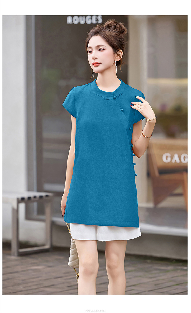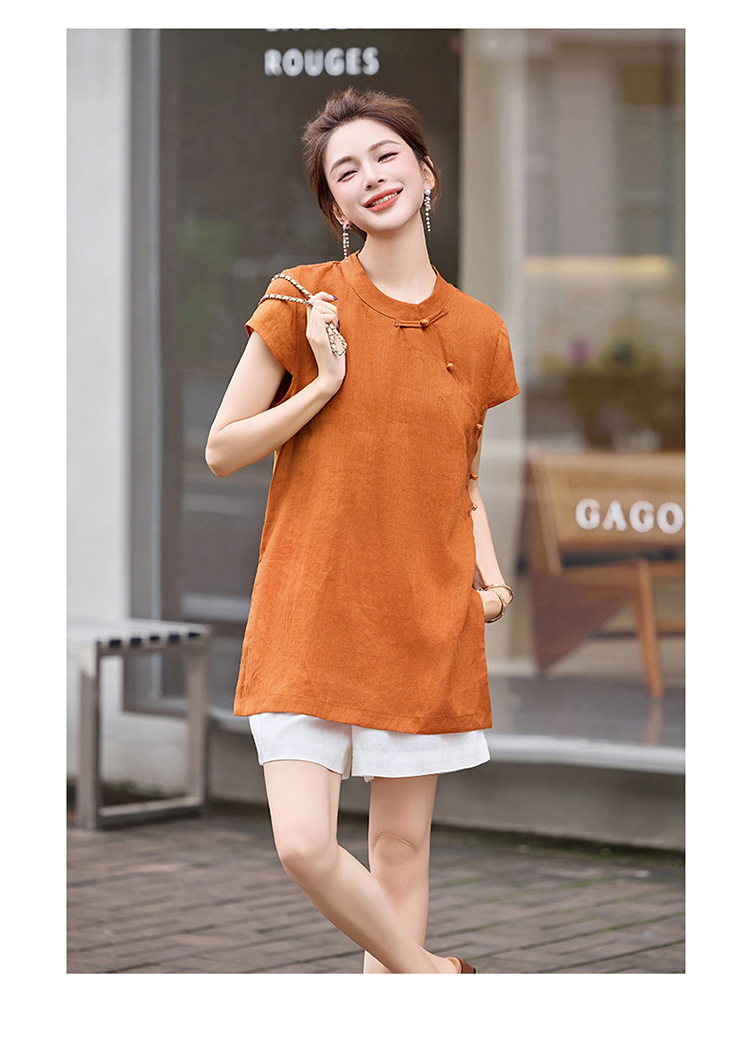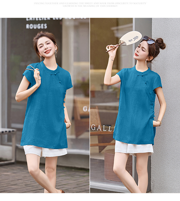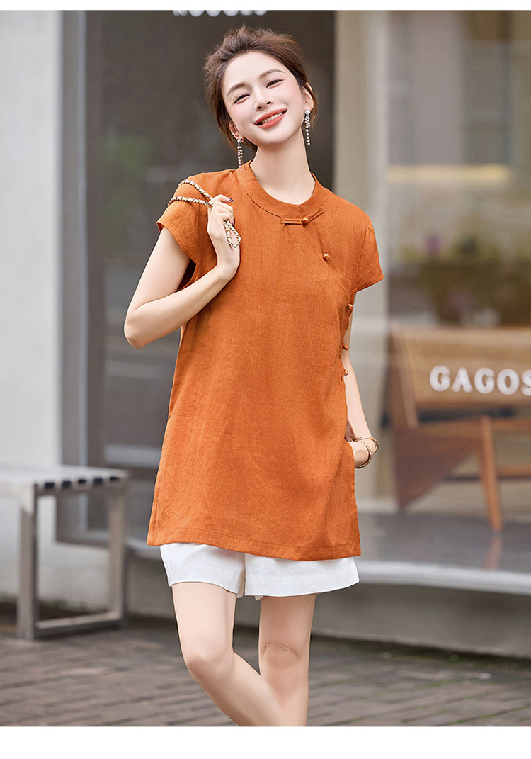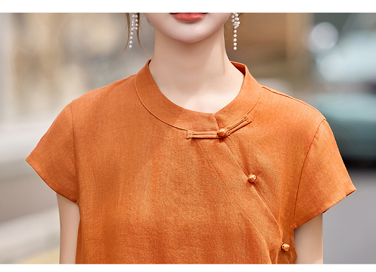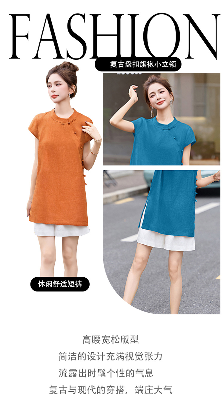 新中式半高领短袖小衫,网纱提花T恤LA43907
