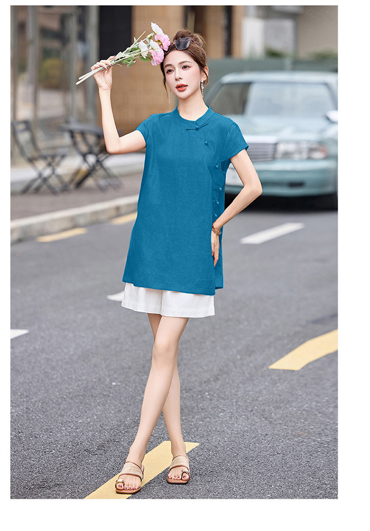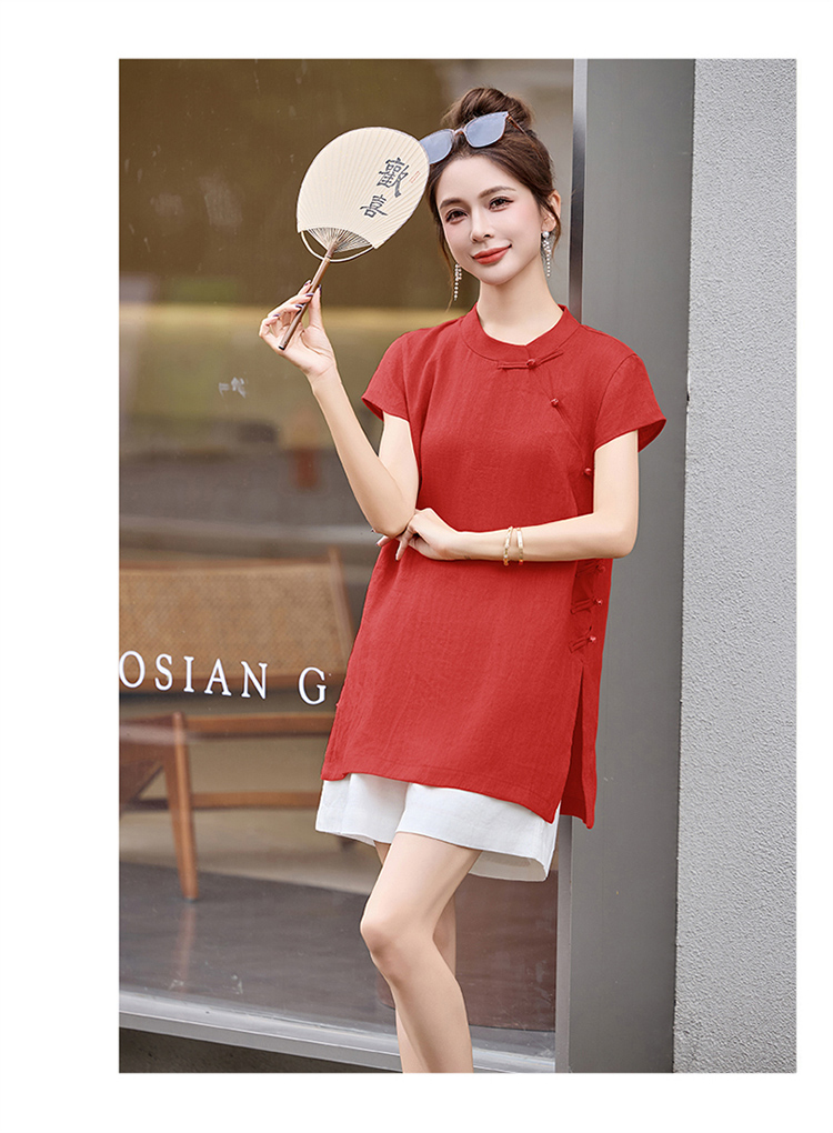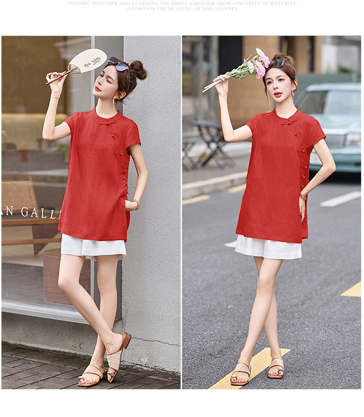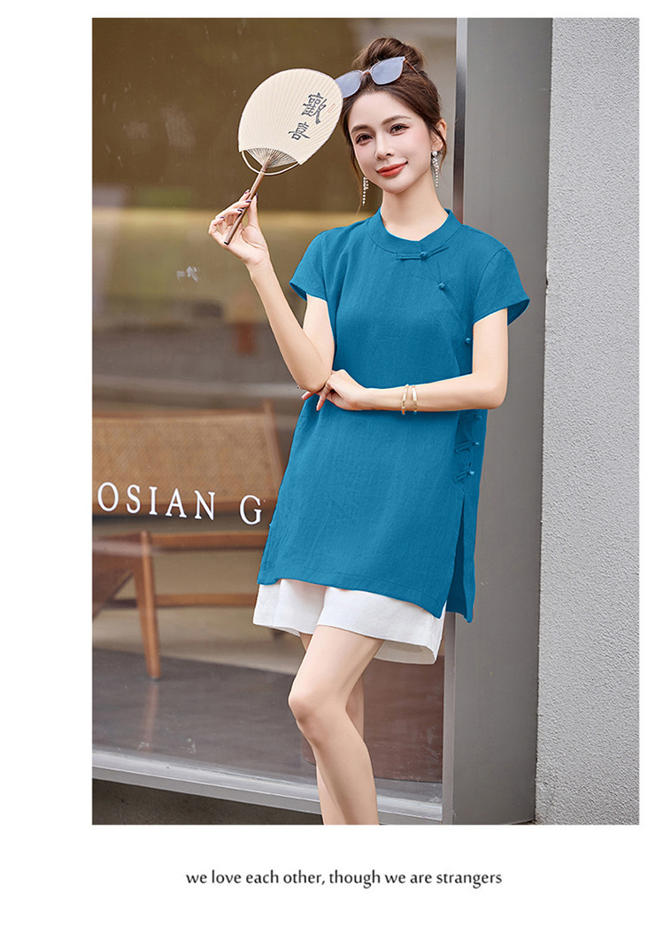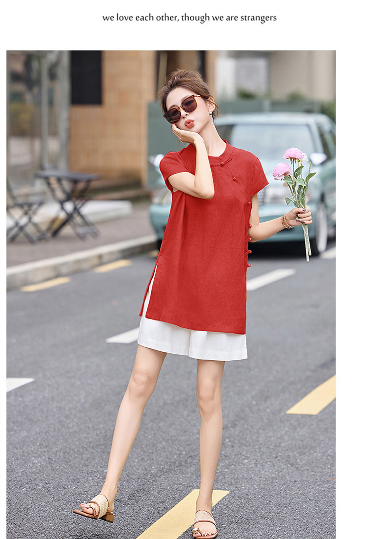 新中式半高领短袖小衫,网纱提花T恤LA43907