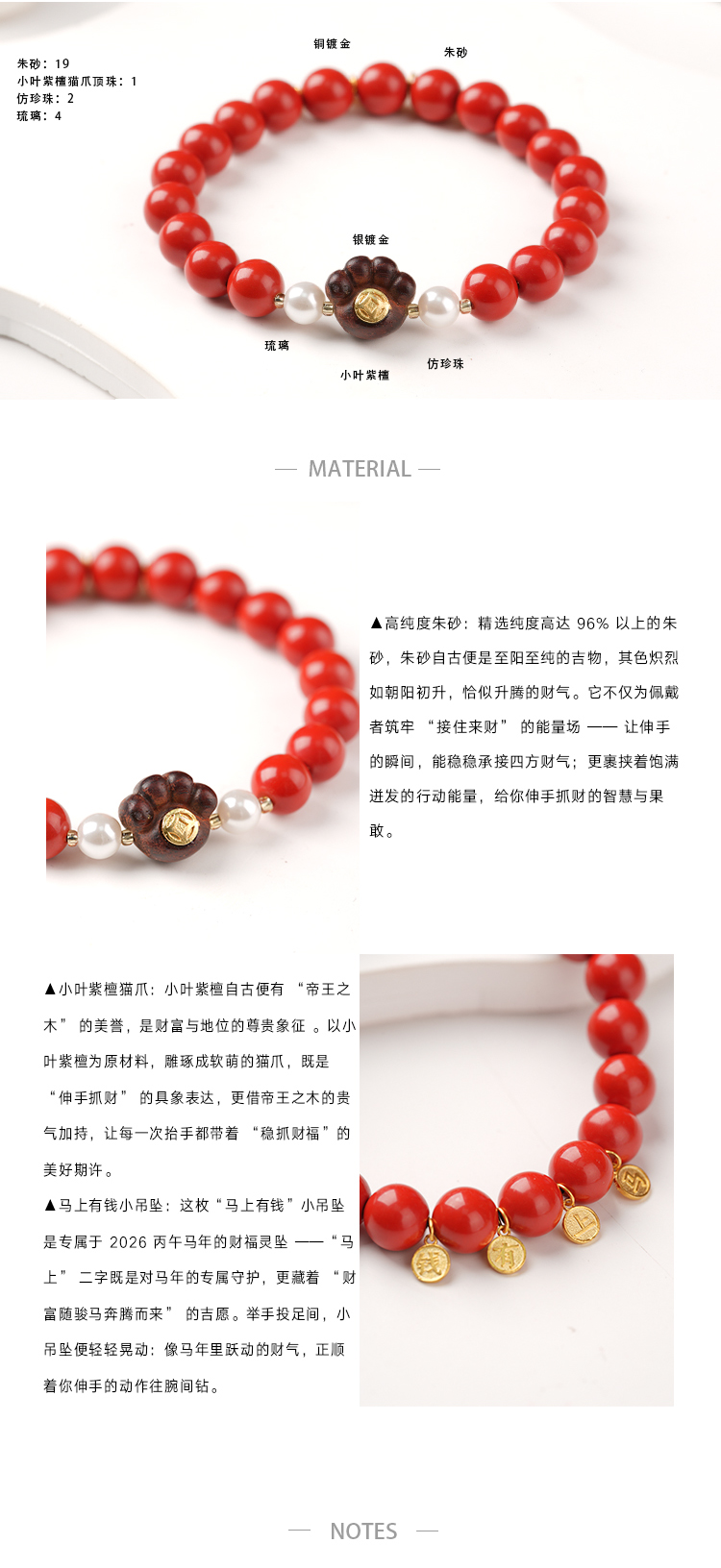 一念七宝 伸手来财 | 朱砂小叶紫檀猫爪手串