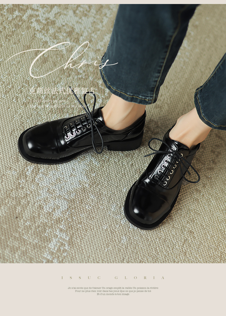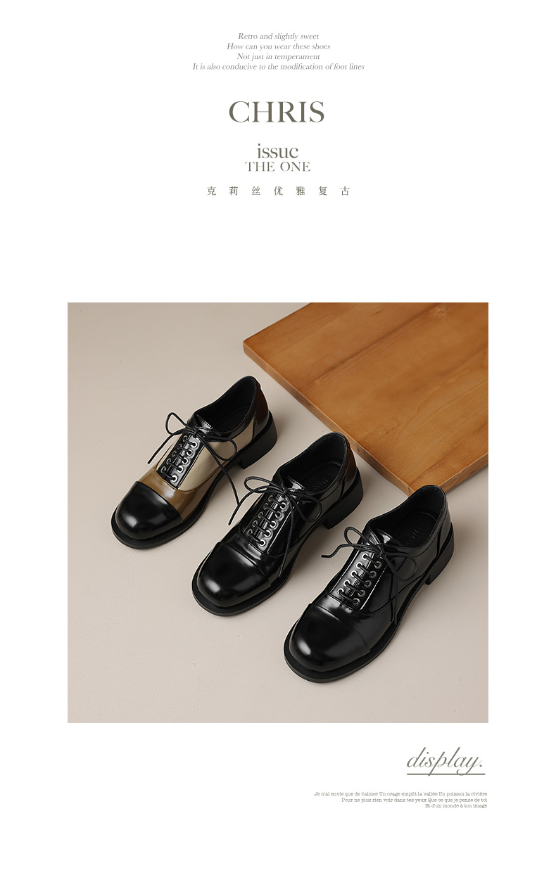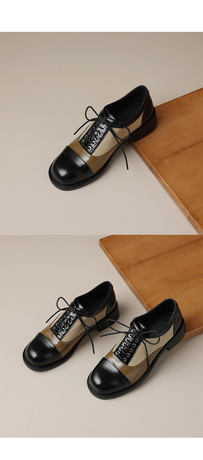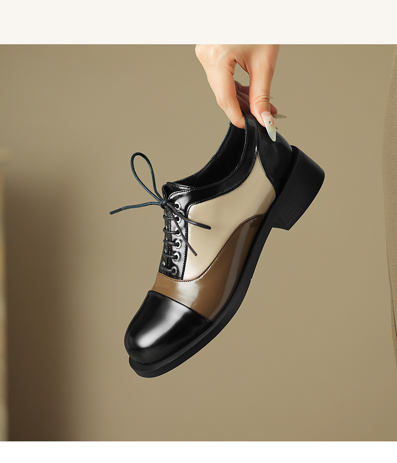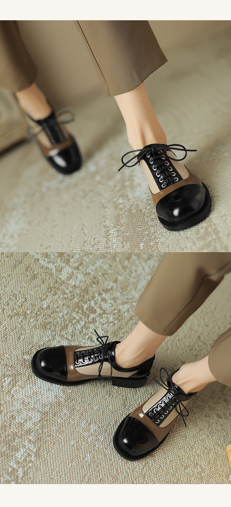 秋季新款,圆头真皮拼色绑带小皮鞋ML-m1601