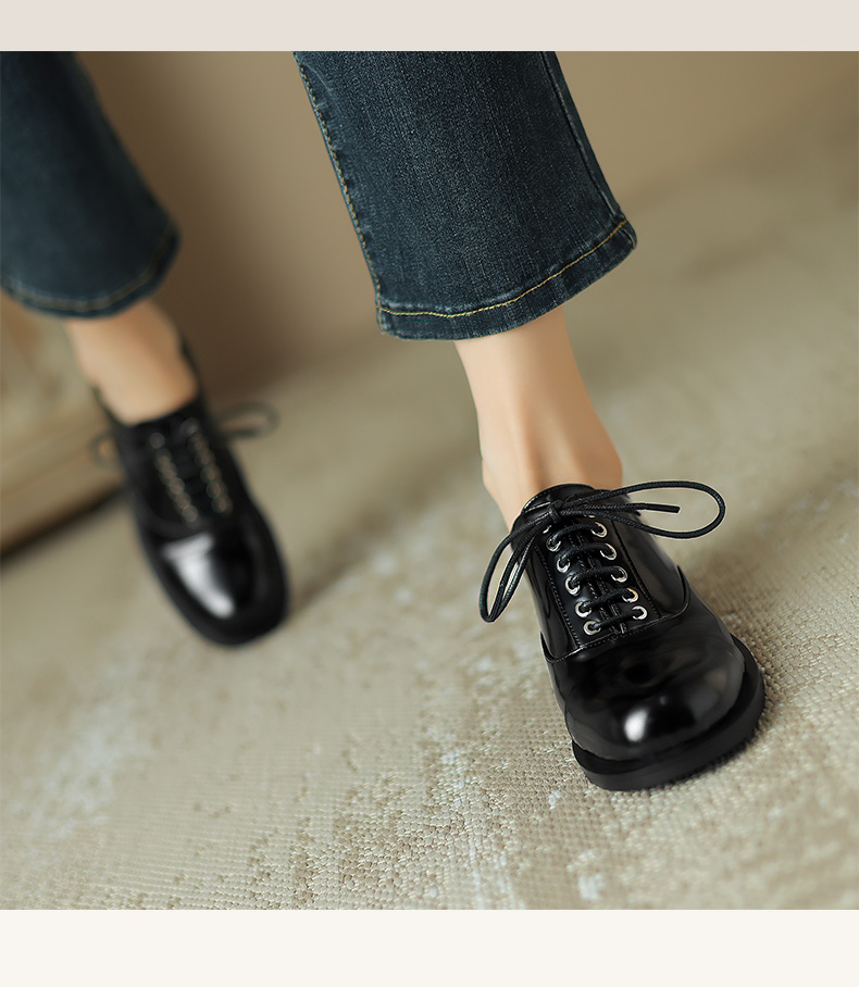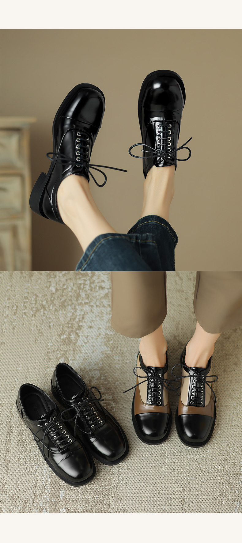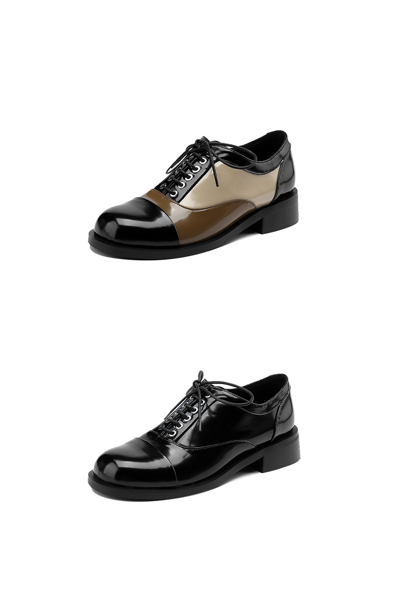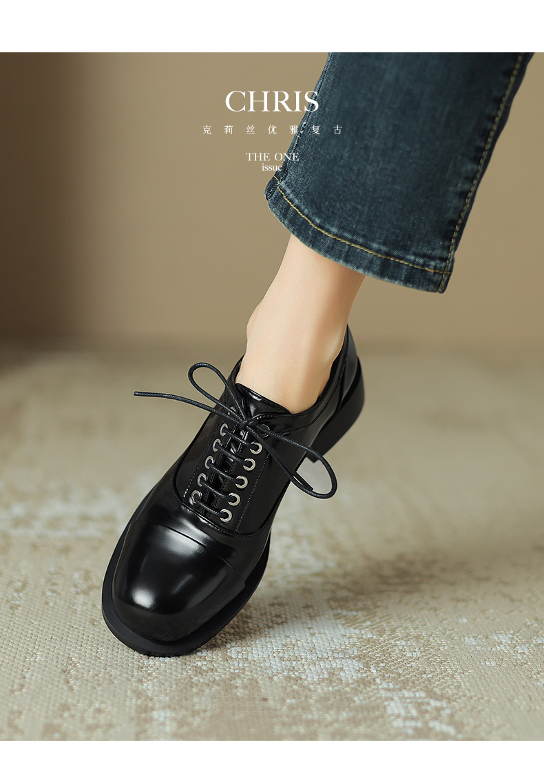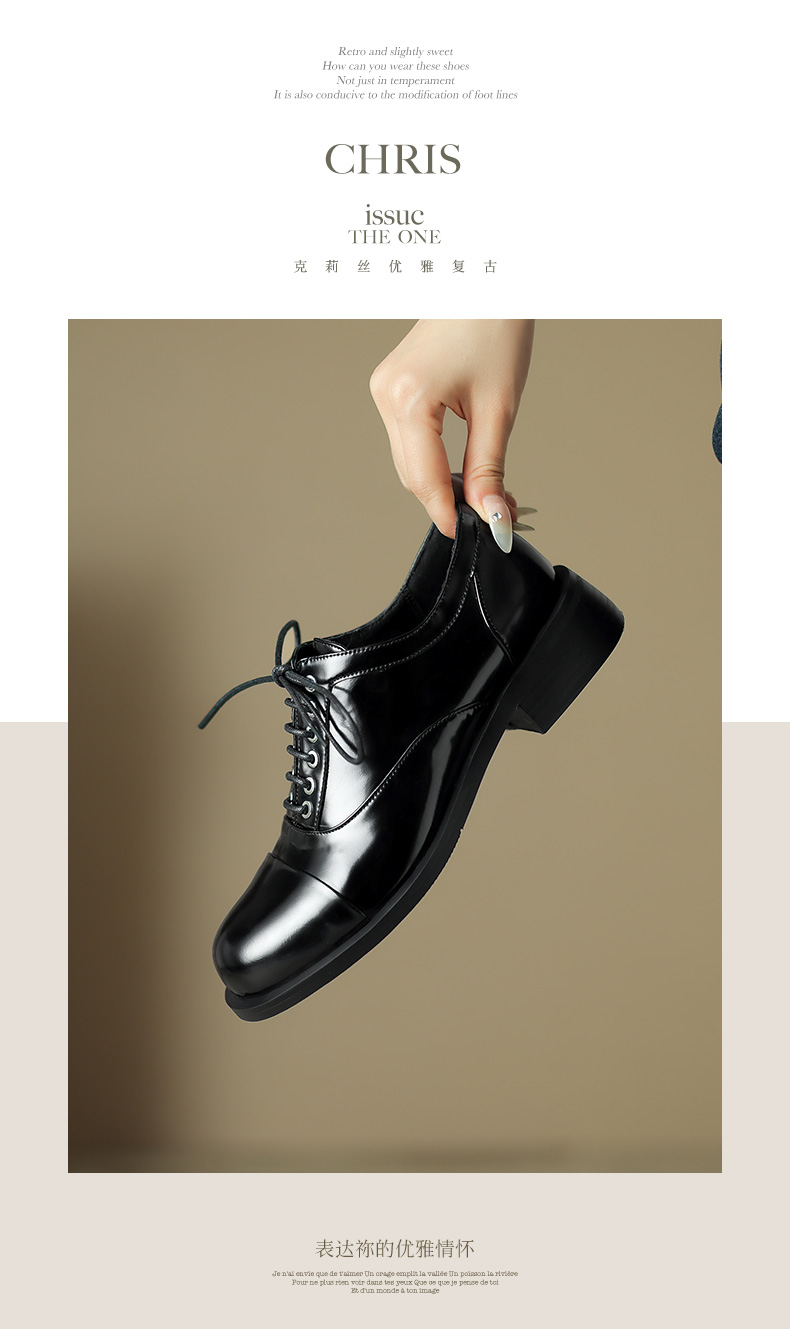 秋季新款,圆头真皮拼色绑带小皮鞋ML-m1601