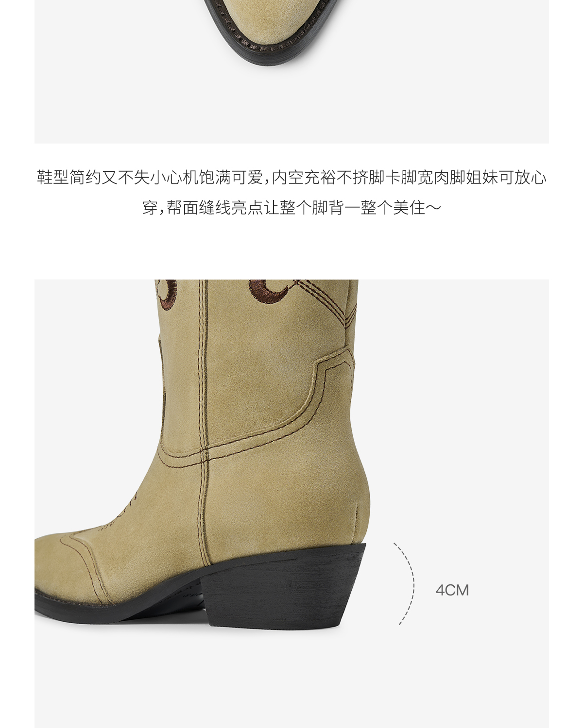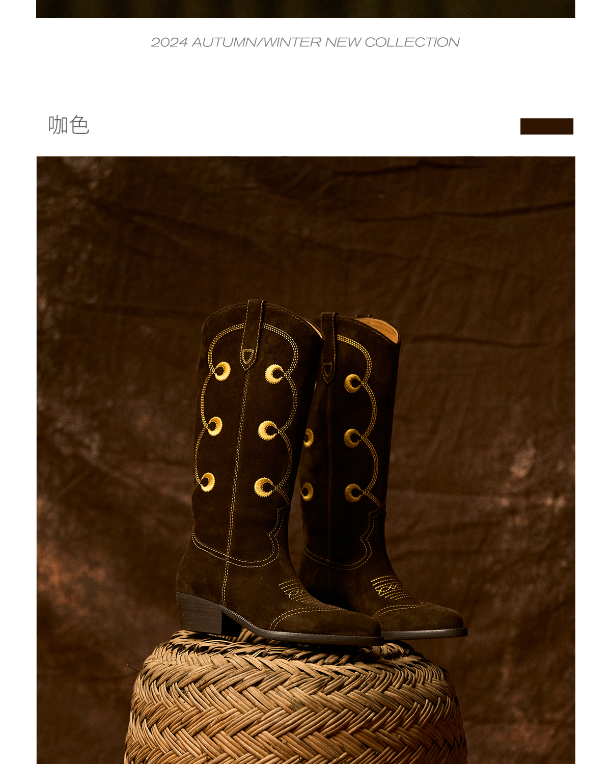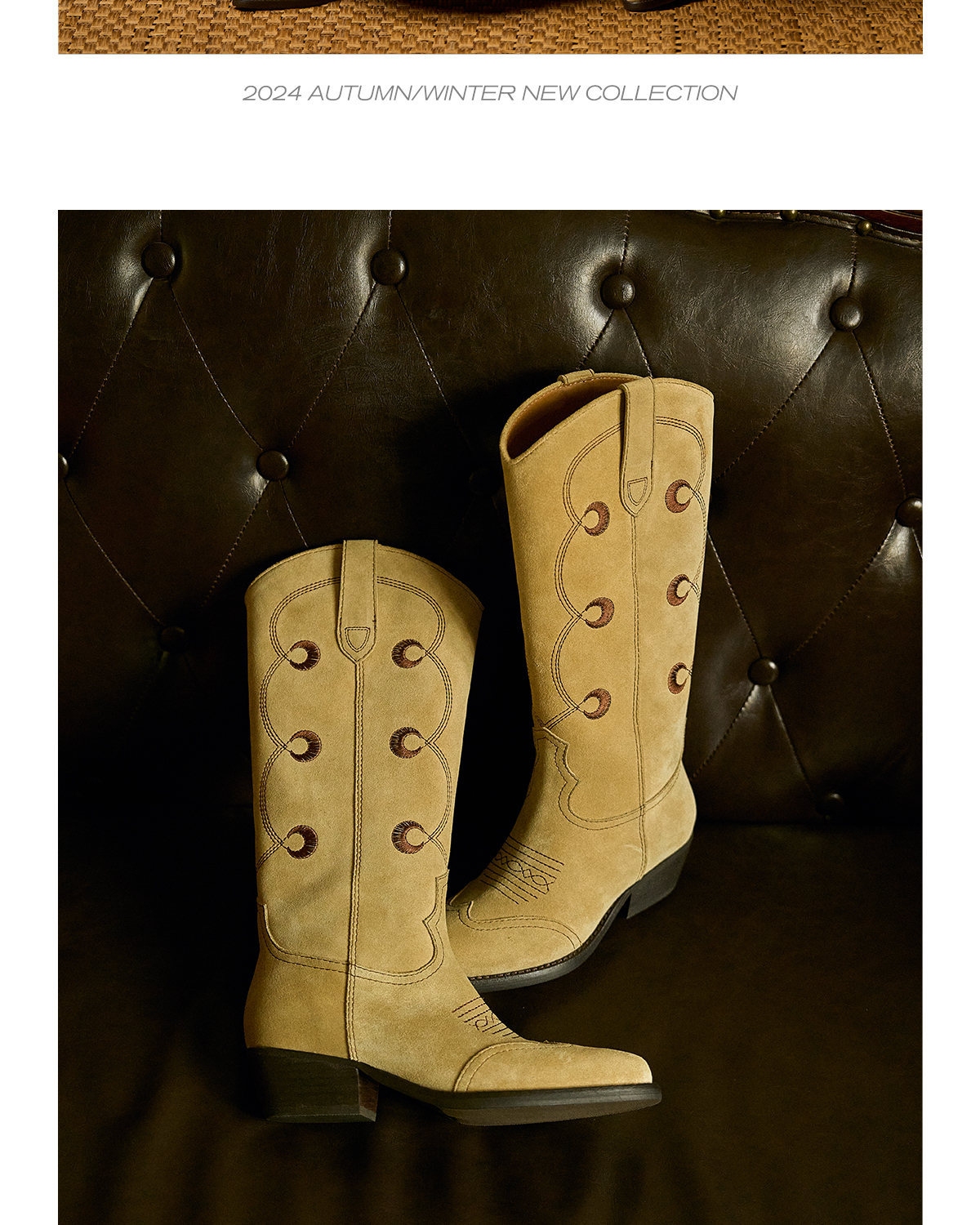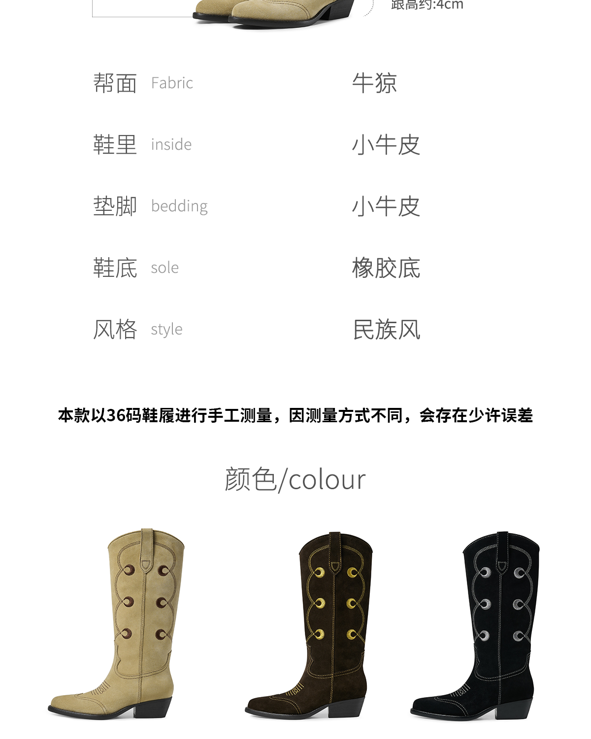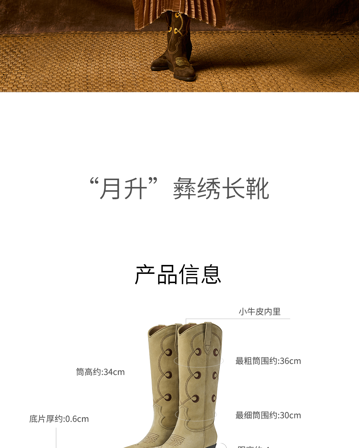 faytobe“月升“彝绣西部靴秋冬新款及膝靴牛皮民族图腾高筒靴