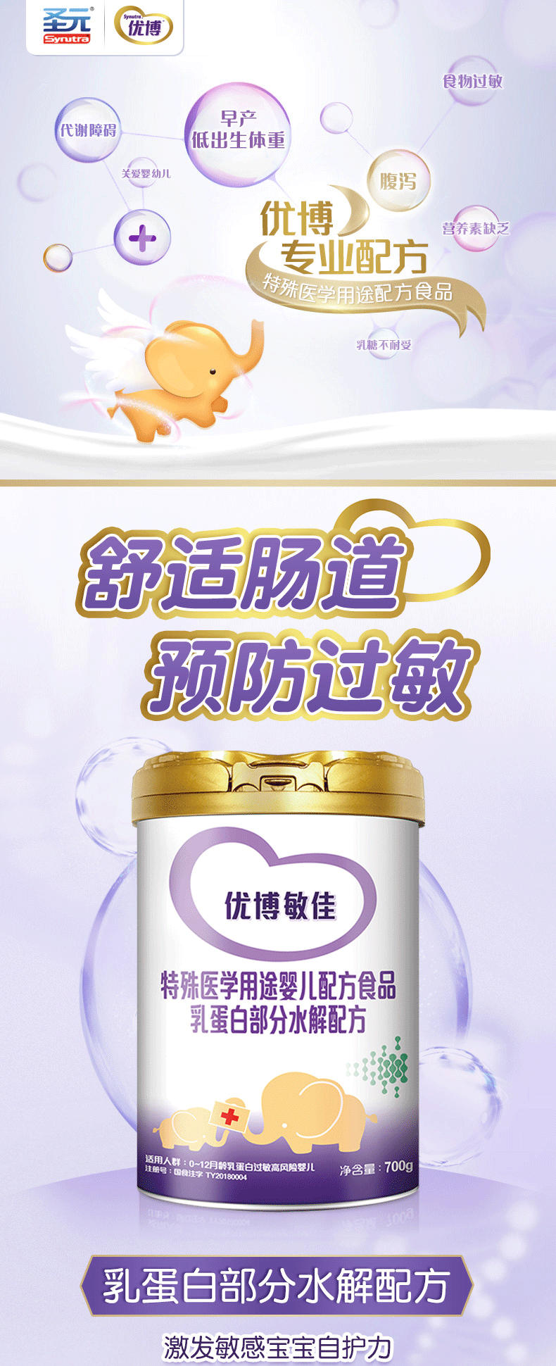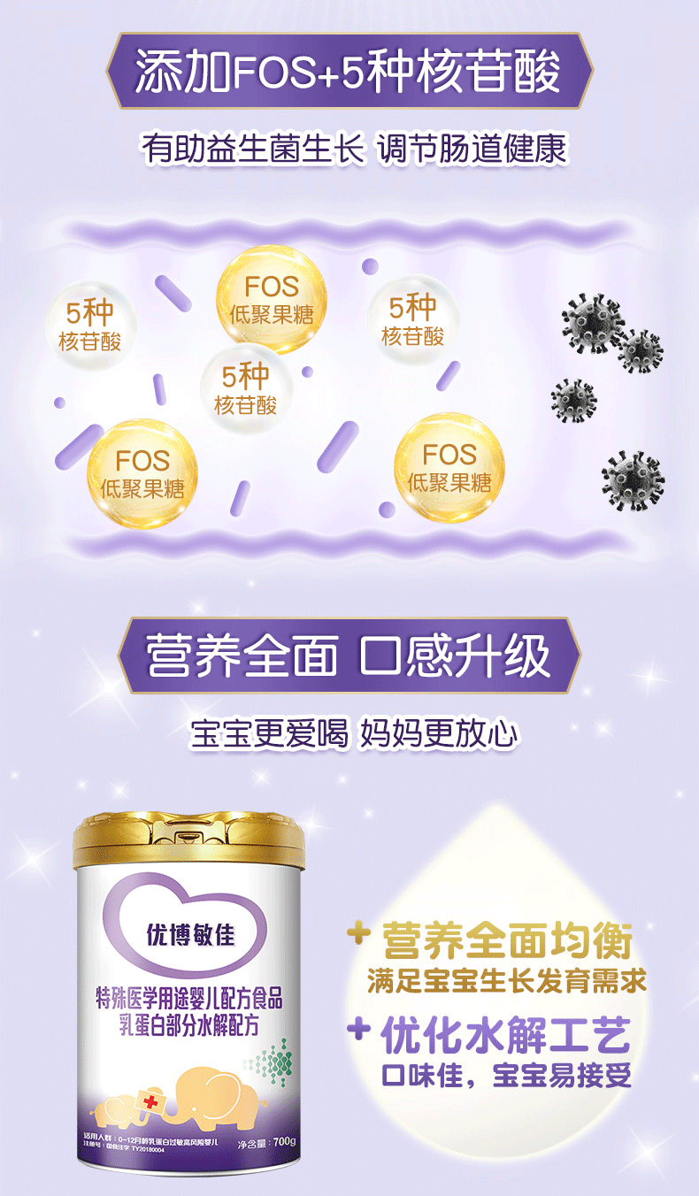 优博敏佳婴儿乳蛋白部分水解配方奶粉700g