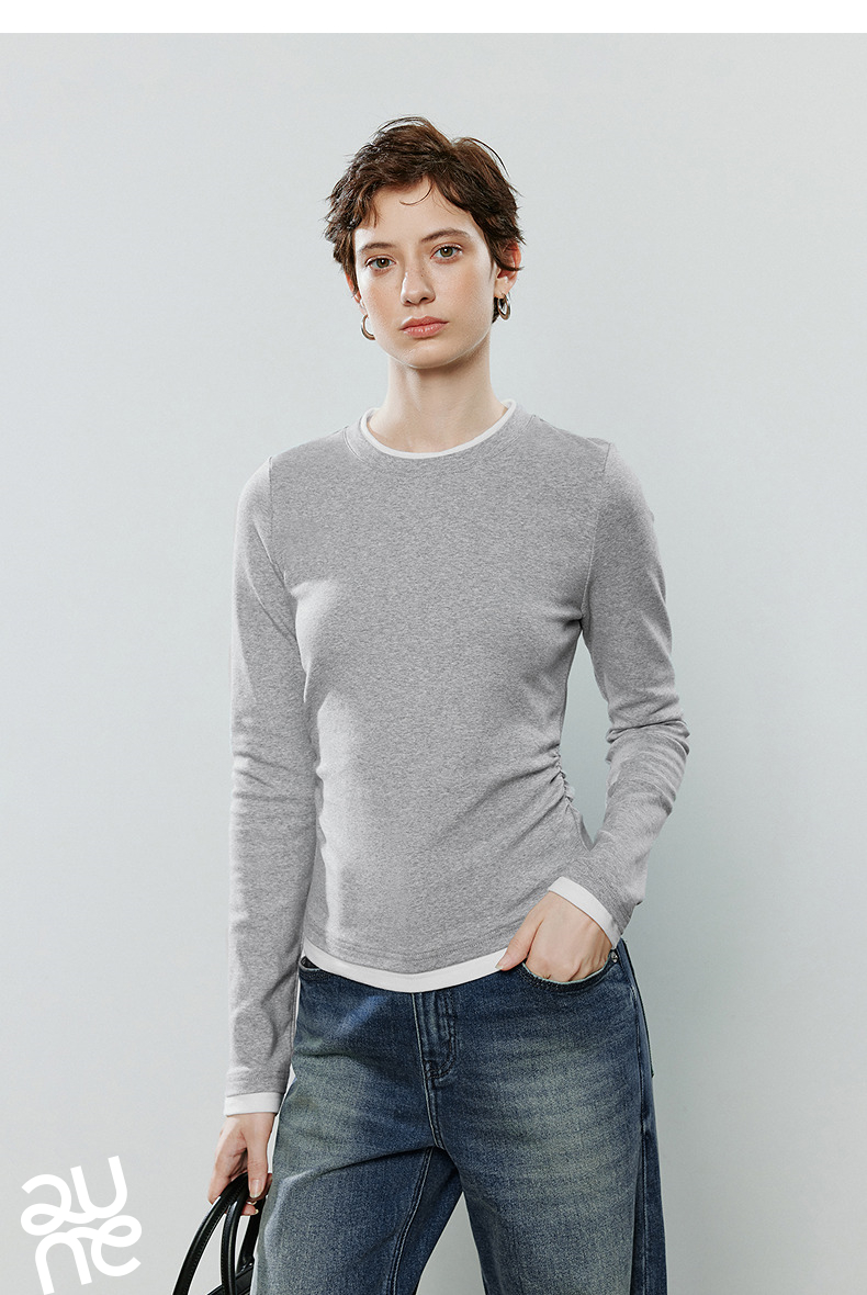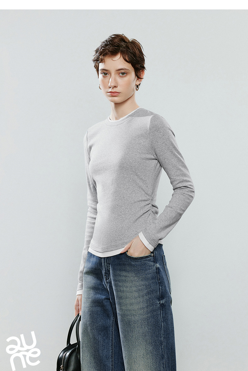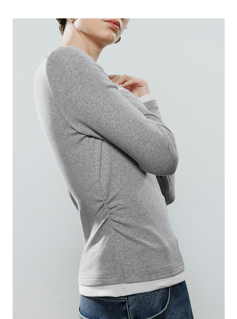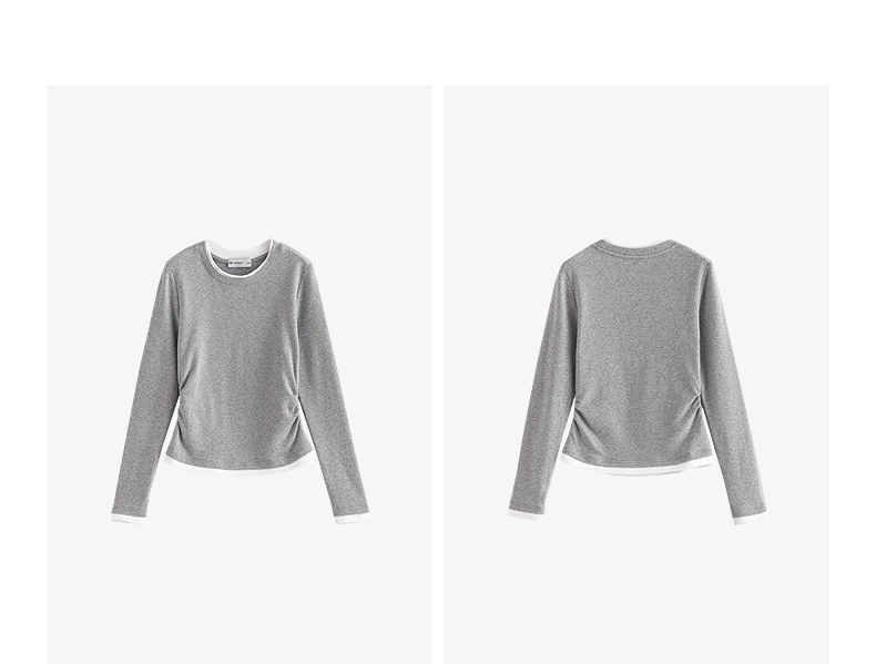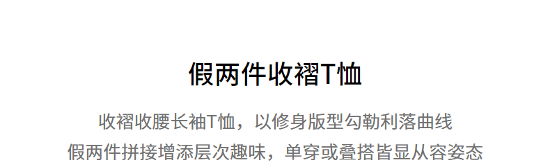 初语拼接假两件修身软弹收褶T恤8541003
