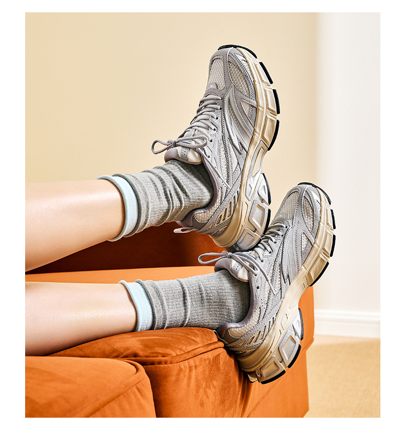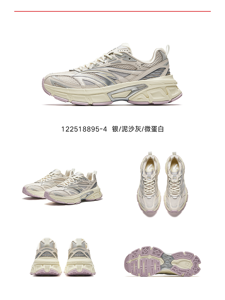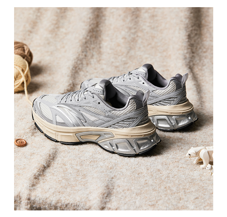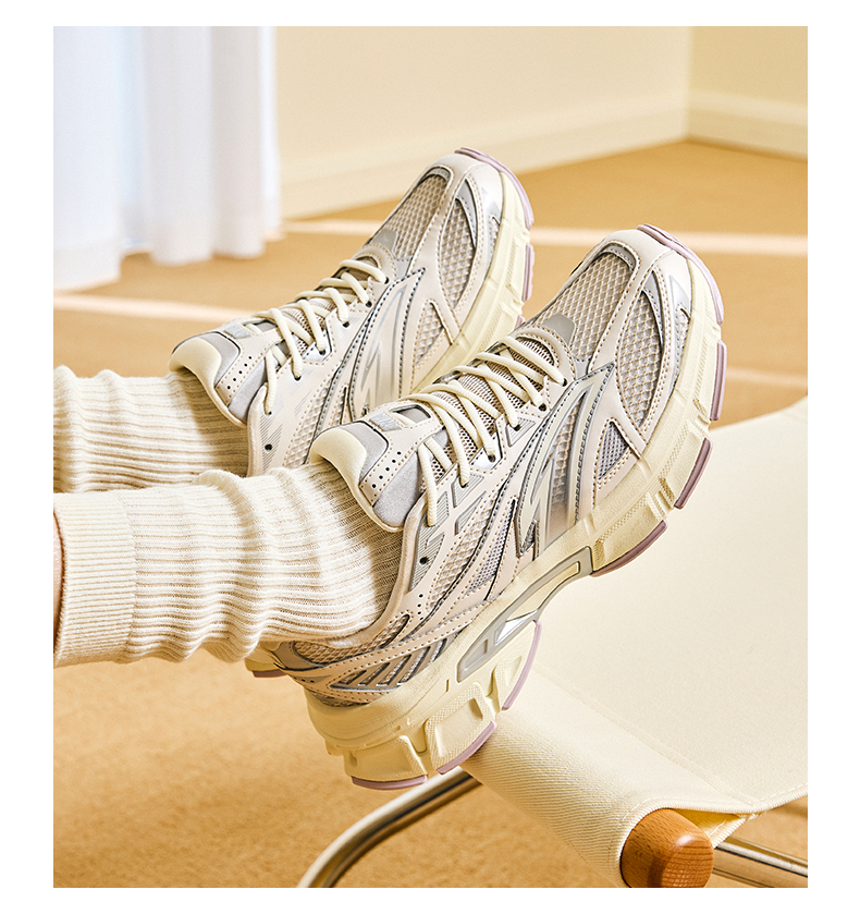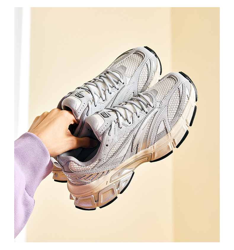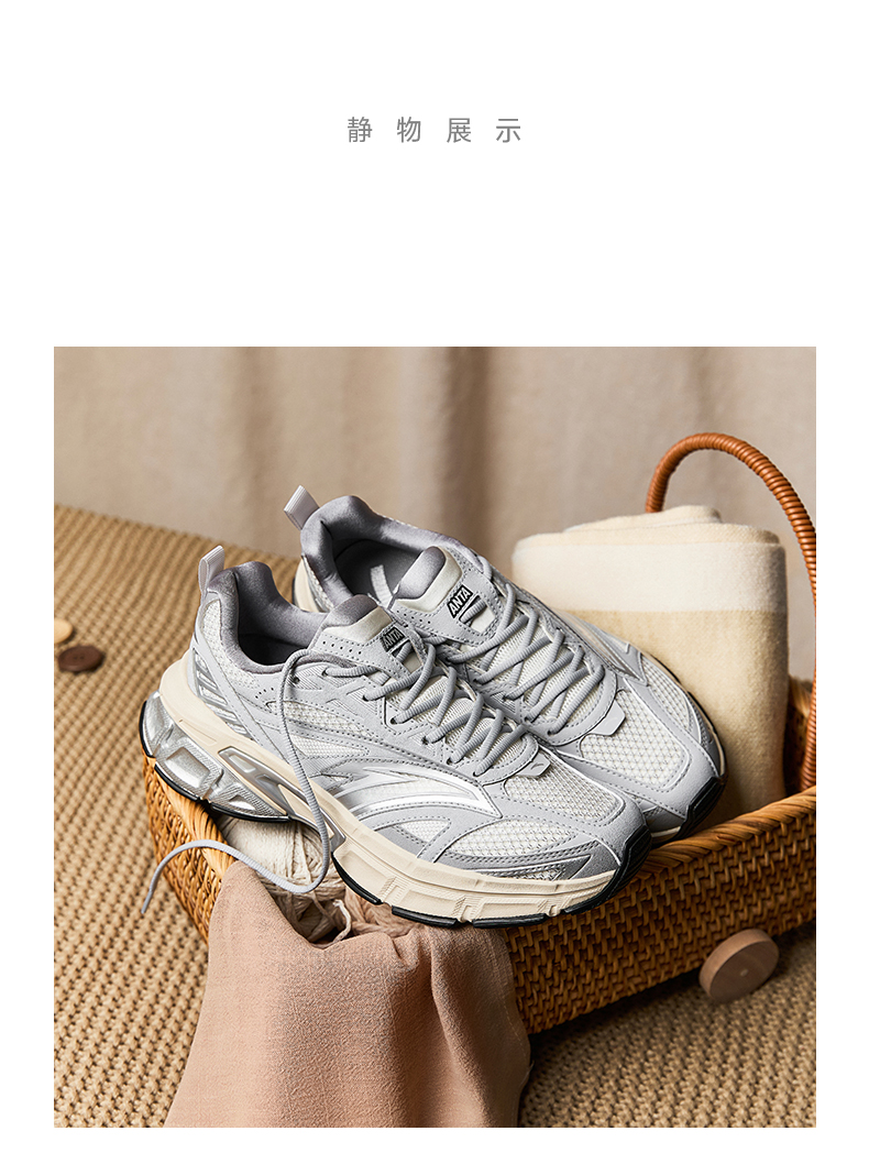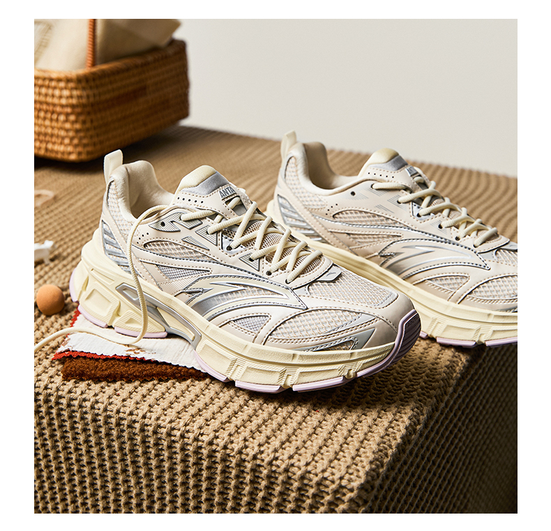 【37.5断码】安踏苍鹭丨革网拼接复古银色休闲鞋女鞋新款潮流运动鞋122518895【库存有限,如无货将做退款,介意慎拍!】