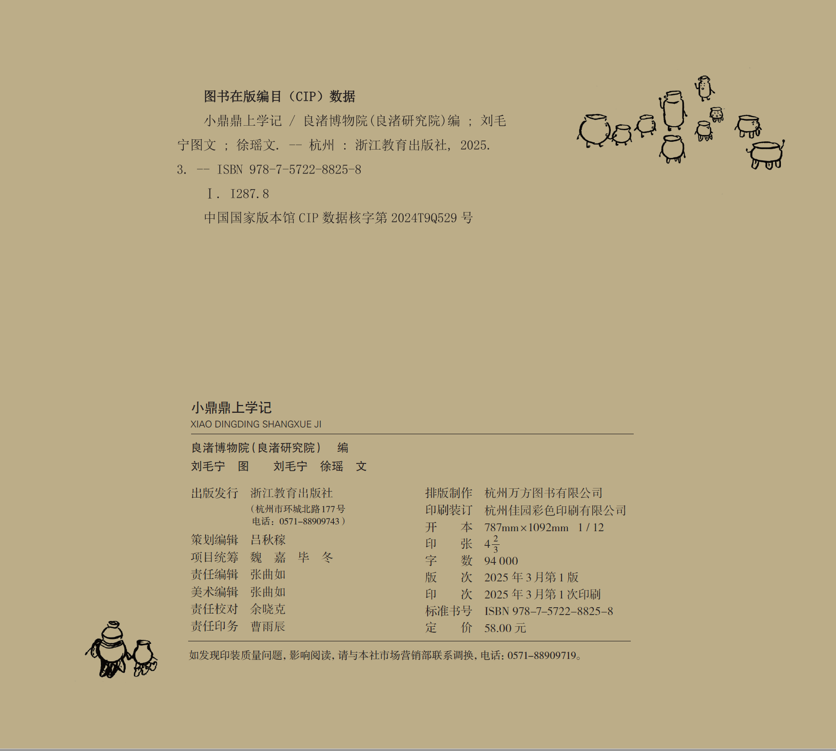 在《小鼎鼎上学记》中,可爱的良渚文化陶鼎 “小鼎鼎”成为主角,以良渚时期的多种陶器为原型,赋予它们鲜活生命,让陶器们以拟人化形象跃然纸上。故事趣味横生,巧妙地将陶器器型、功能属性等知识融入其中,孩子们在阅读过程中便能轻松掌握良渚文化的精髓。