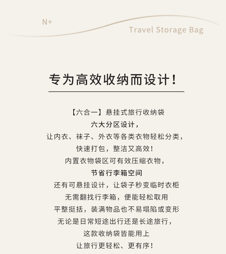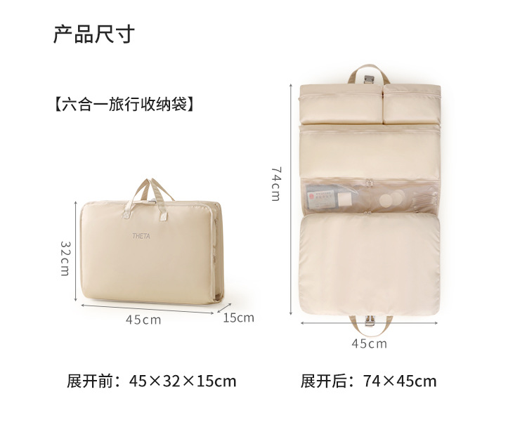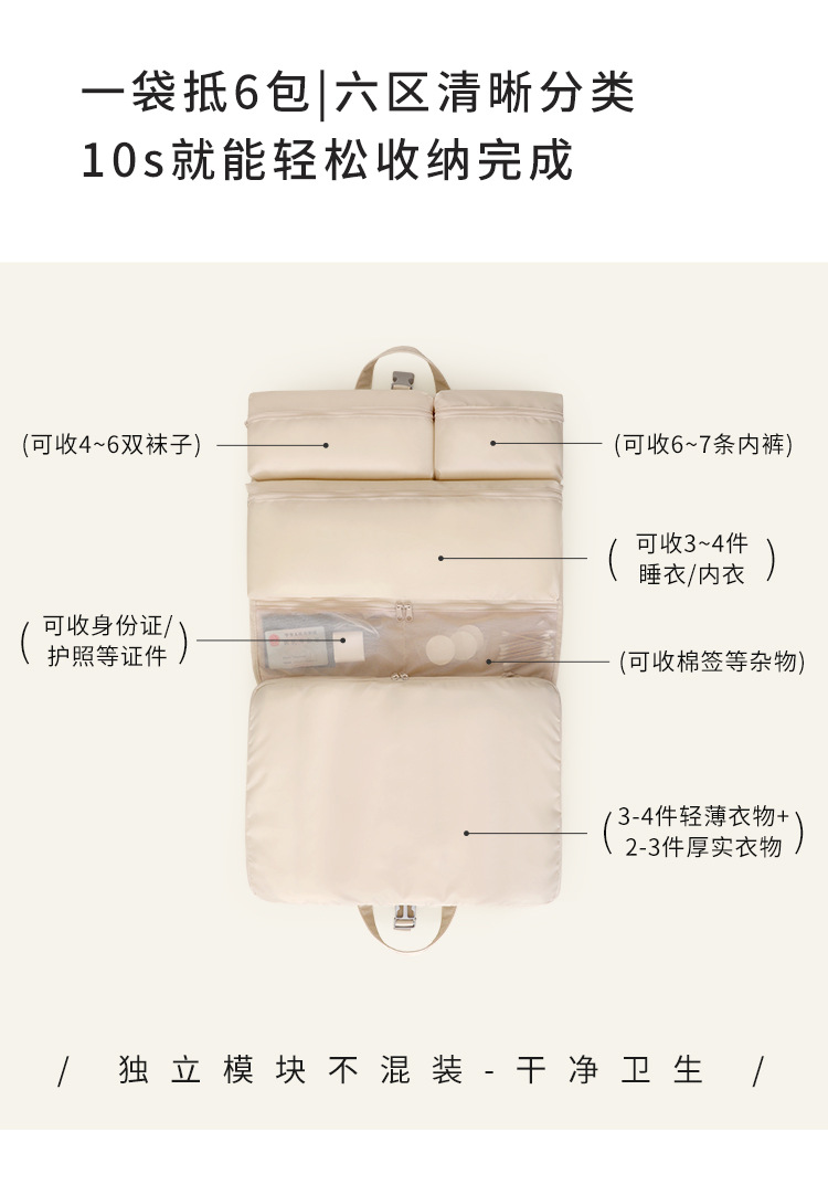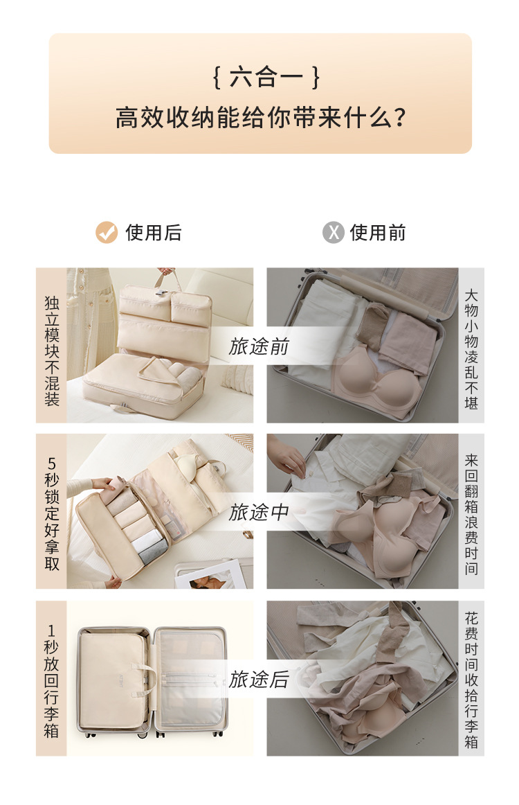 【便捷携带!耐磨防水】新款六合一压缩收纳袋旅行便携衣物内衣裤整理包折叠可悬挂行李箱。xb