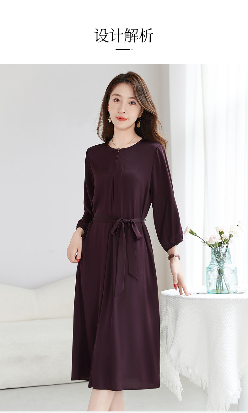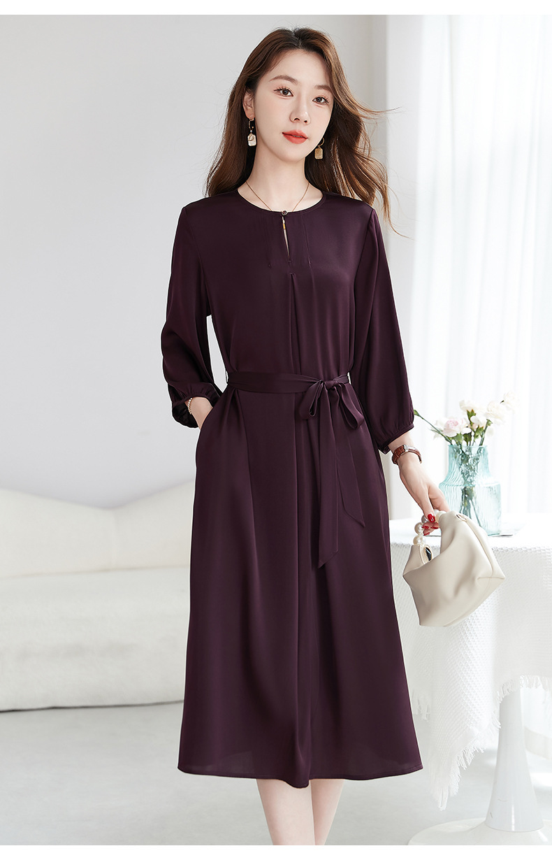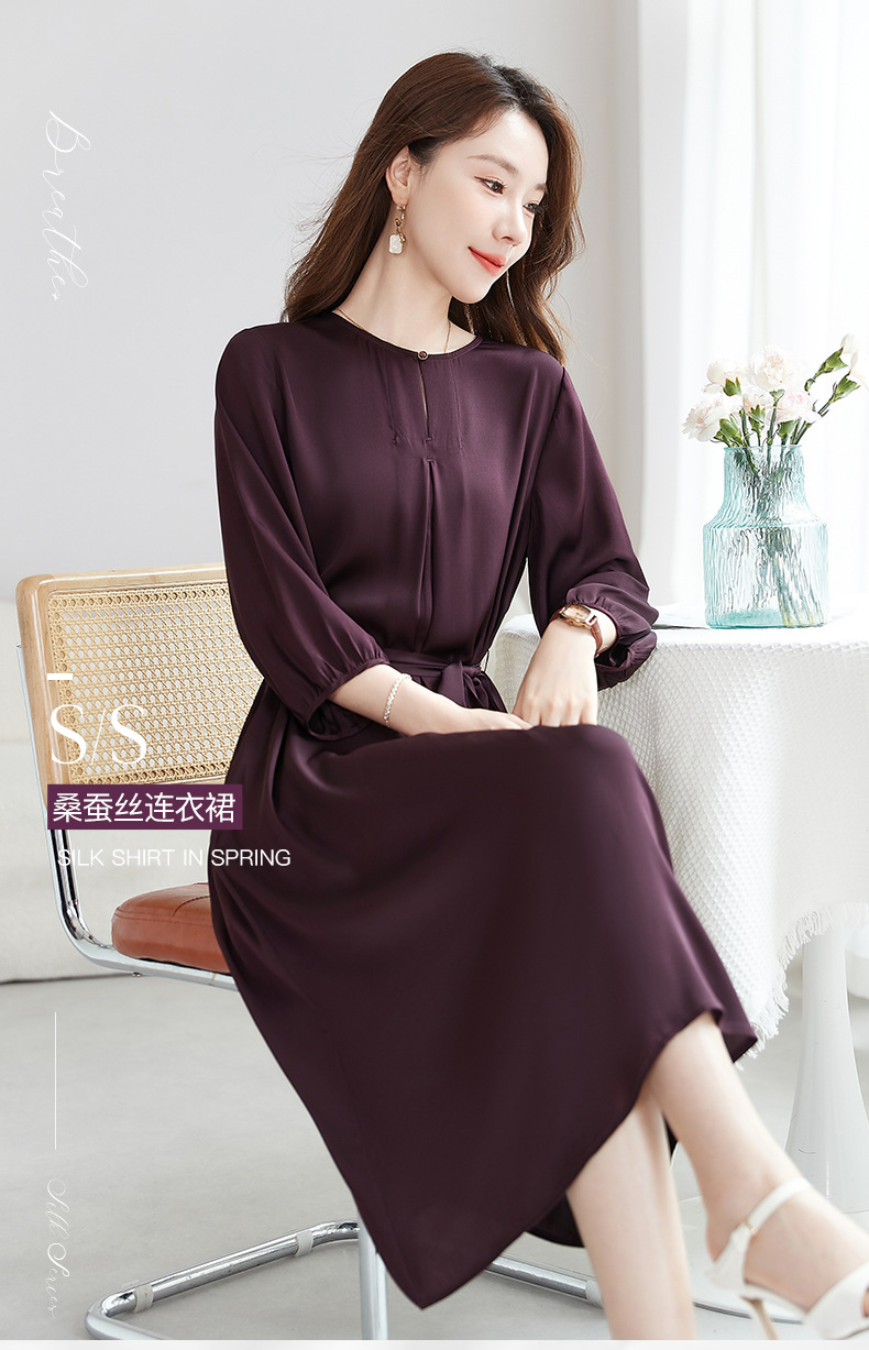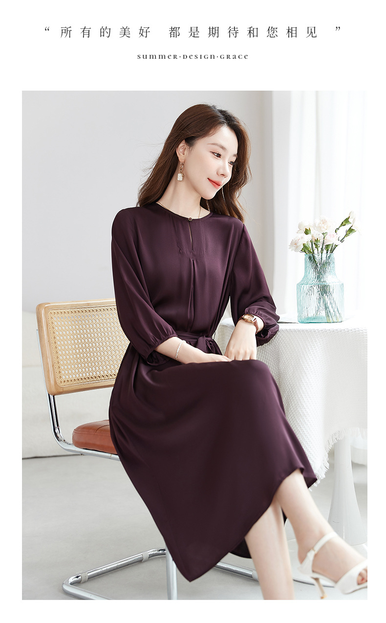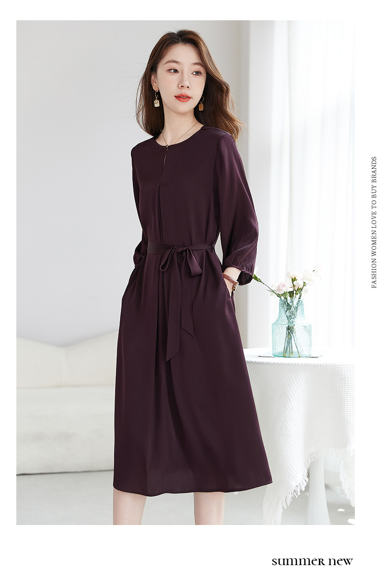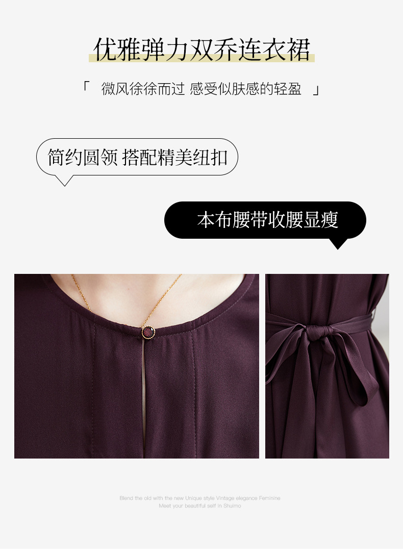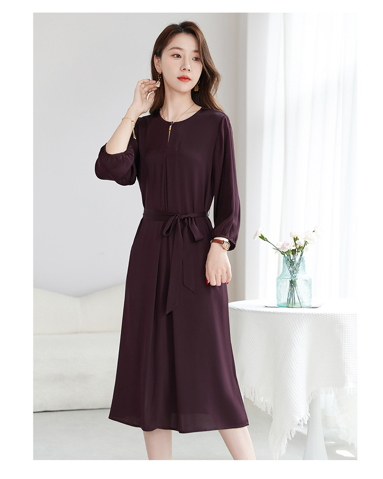 QS-82598766原创纯色优雅通勤气质真丝连衣裙弹力双乔桑蚕丝中长裙子8766