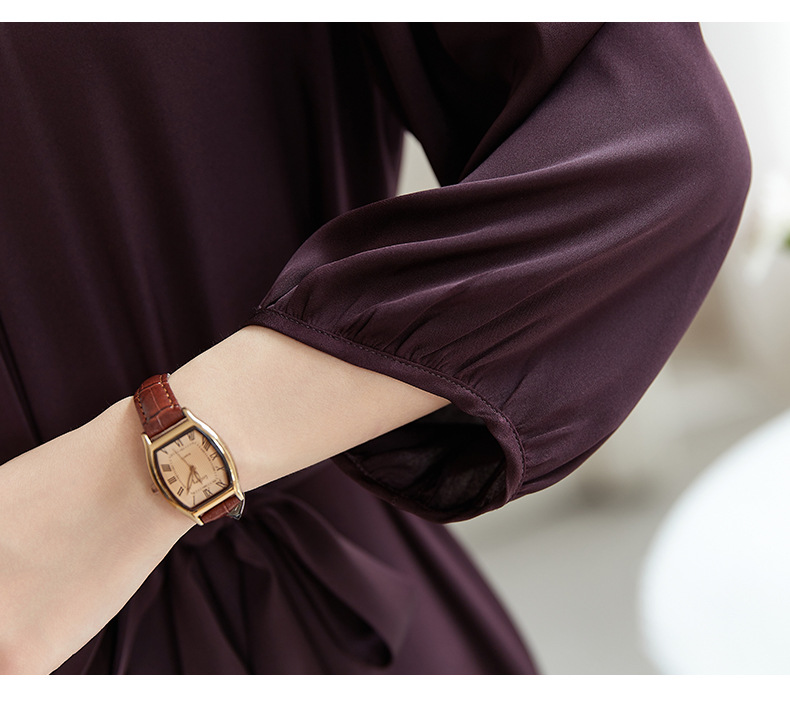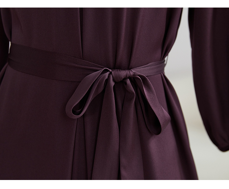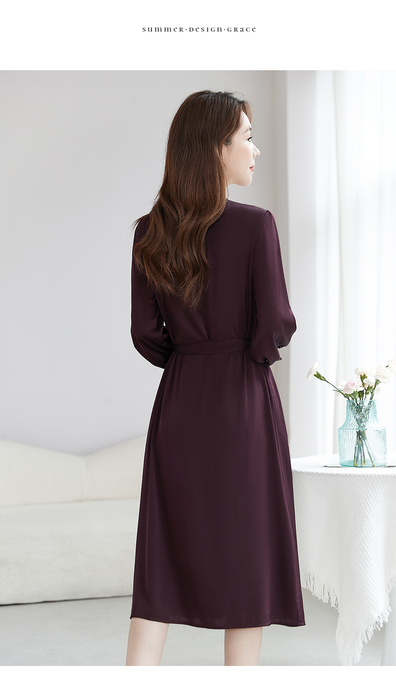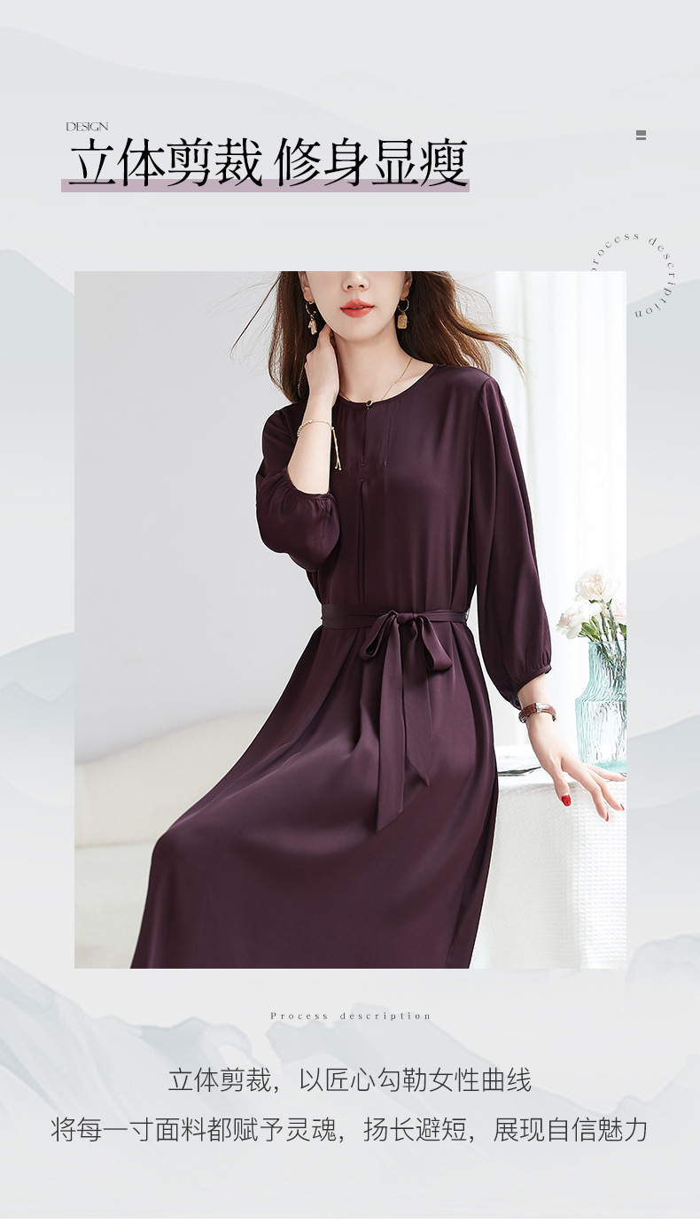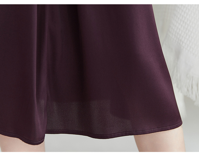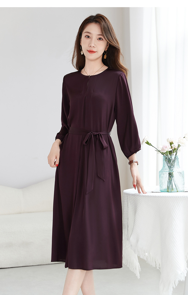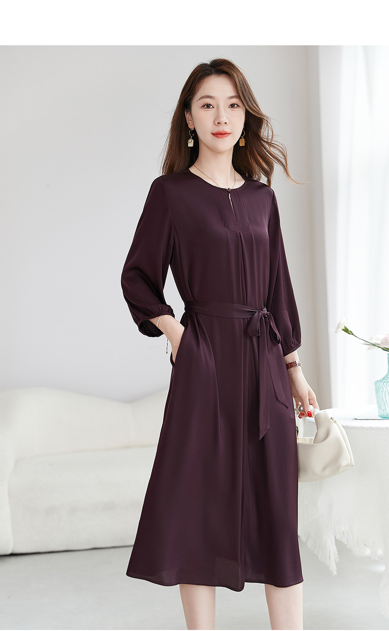 QS-82598766原创纯色优雅通勤气质真丝连衣裙弹力双乔桑蚕丝中长裙子8766