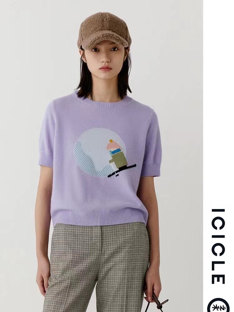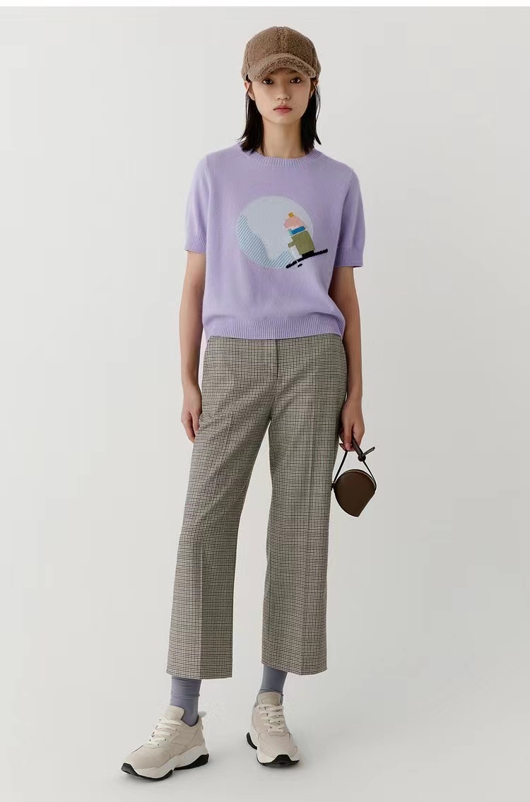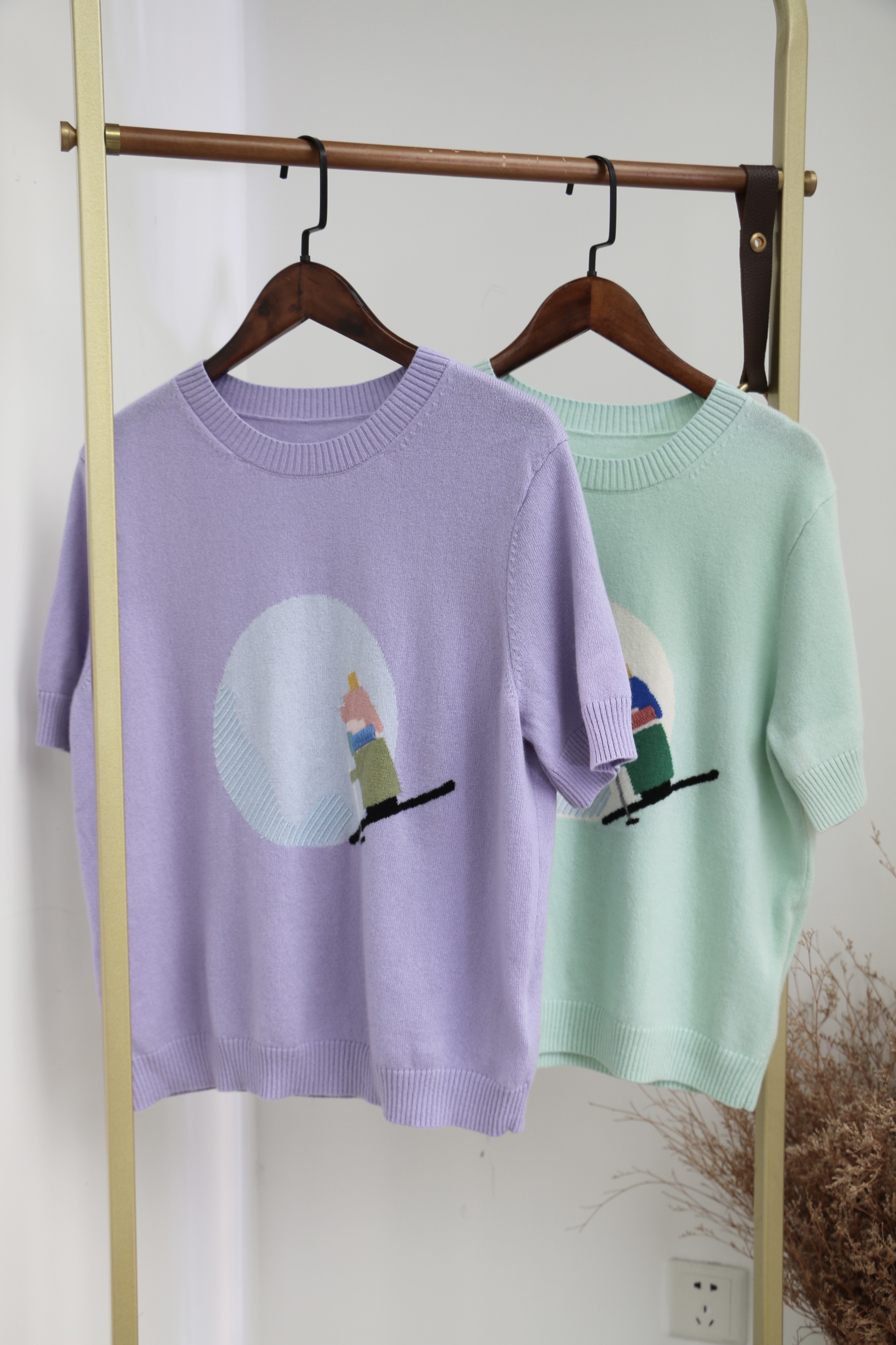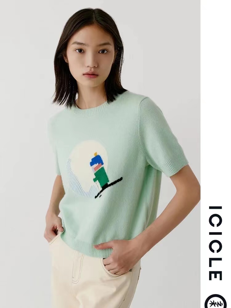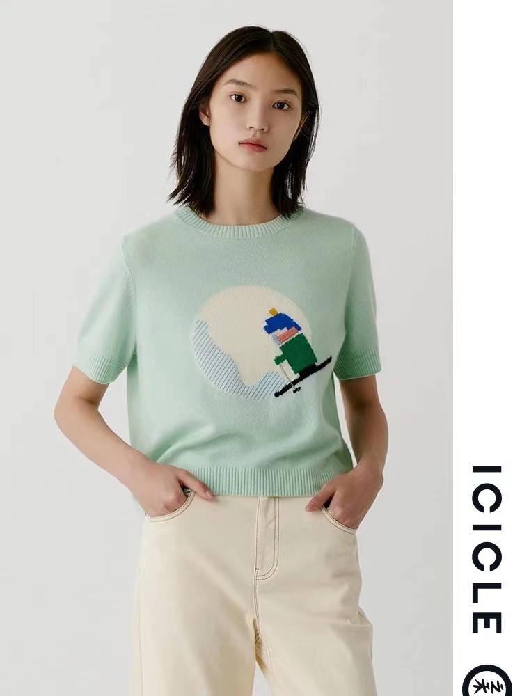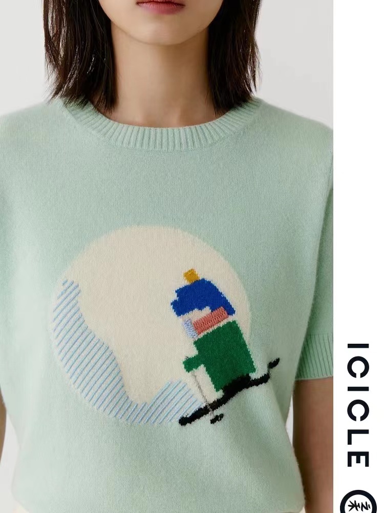有趣的羊绒短袖,滑雪小人儿
