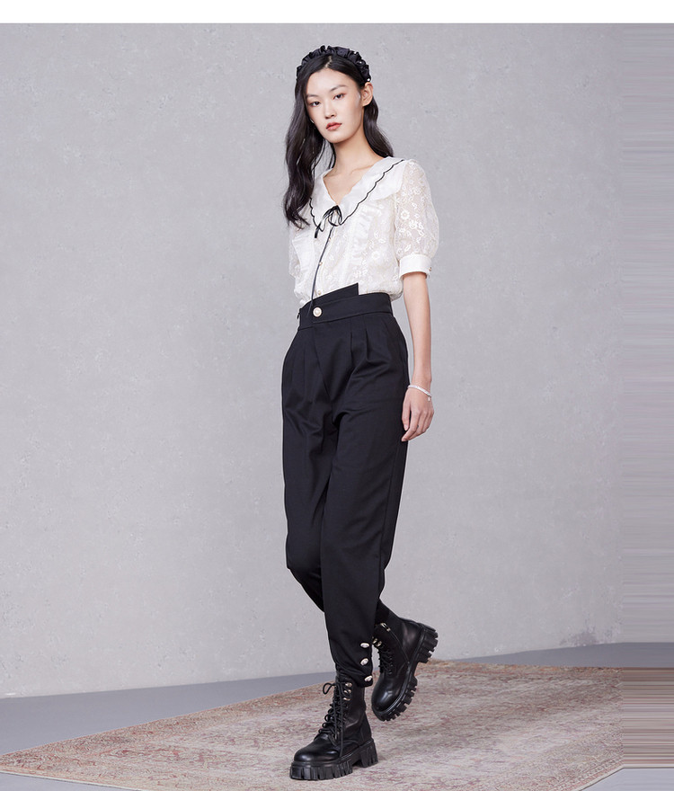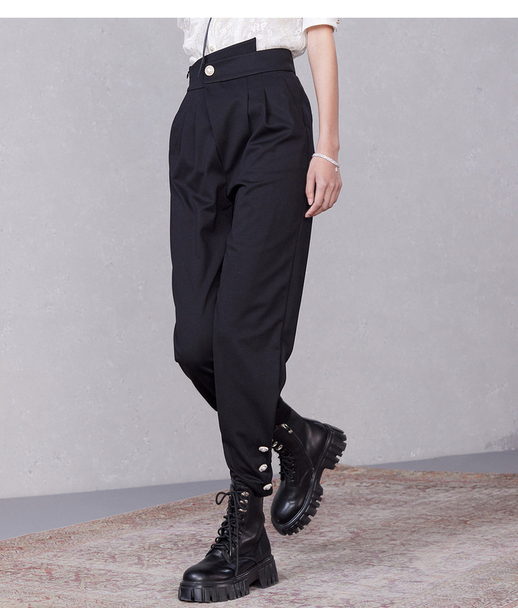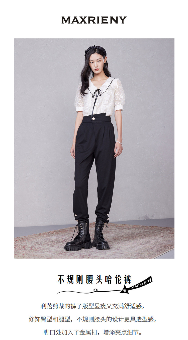 MAXRIENY黑色哈伦裤女夏季简约休闲裤宽松长裤子MC87PA279A90