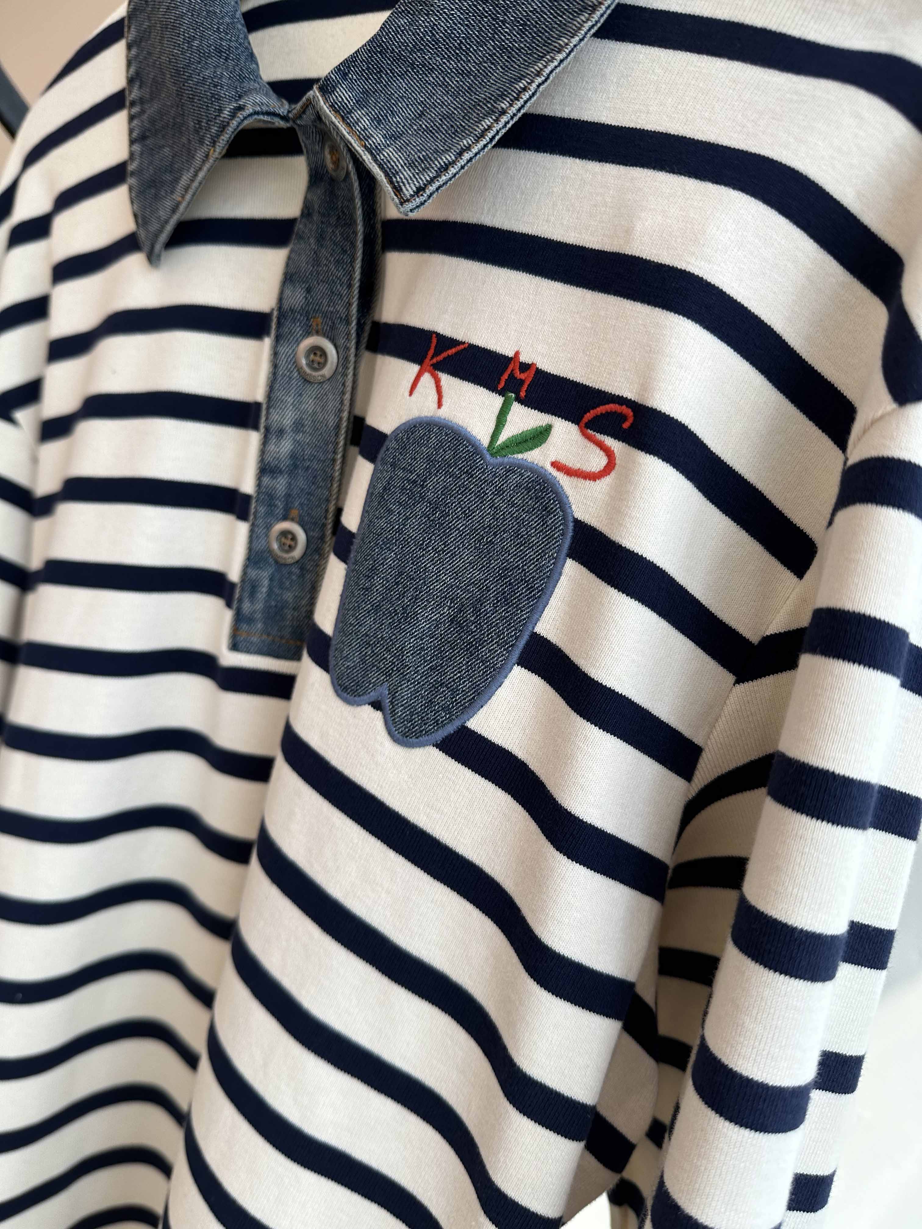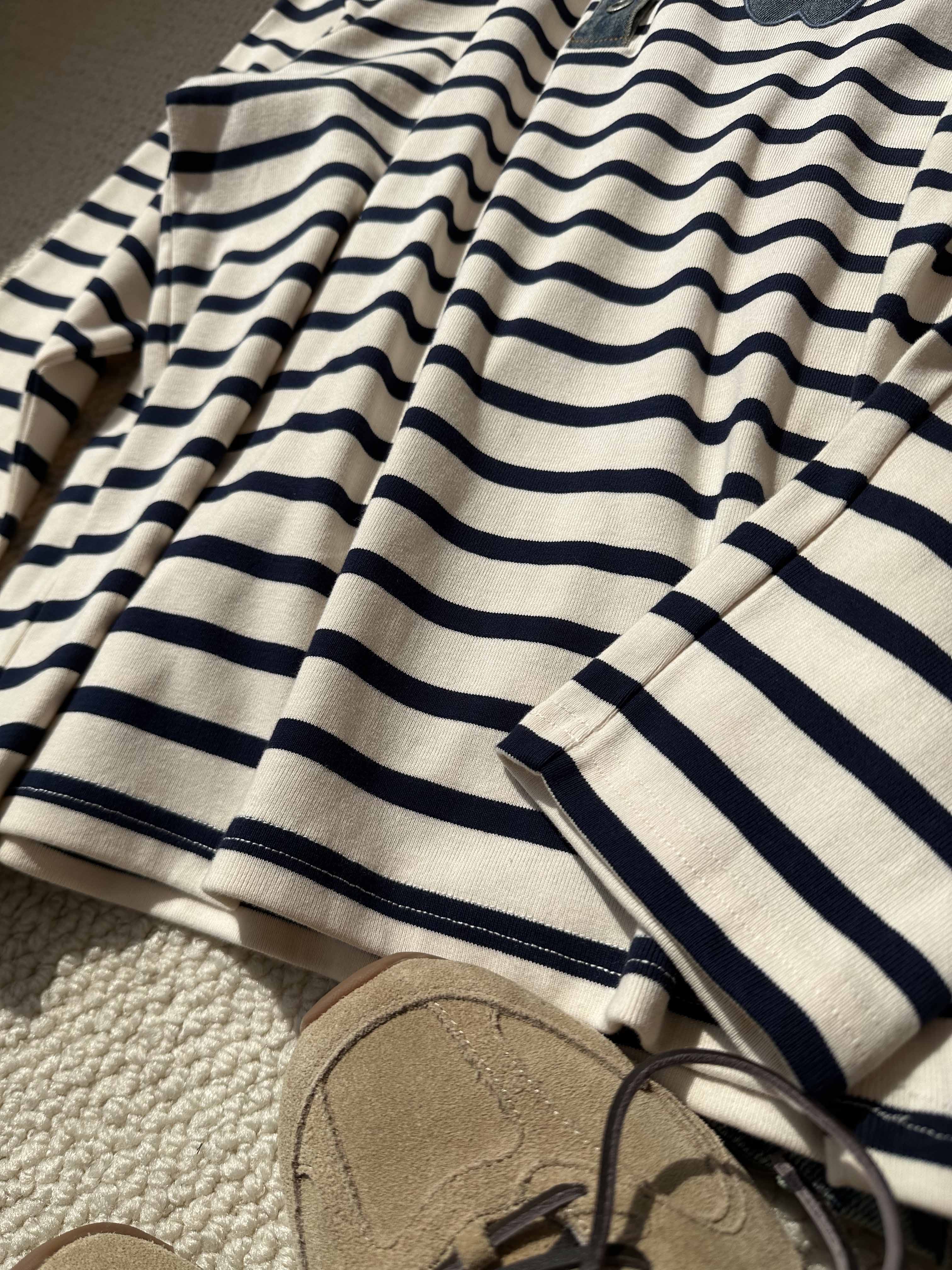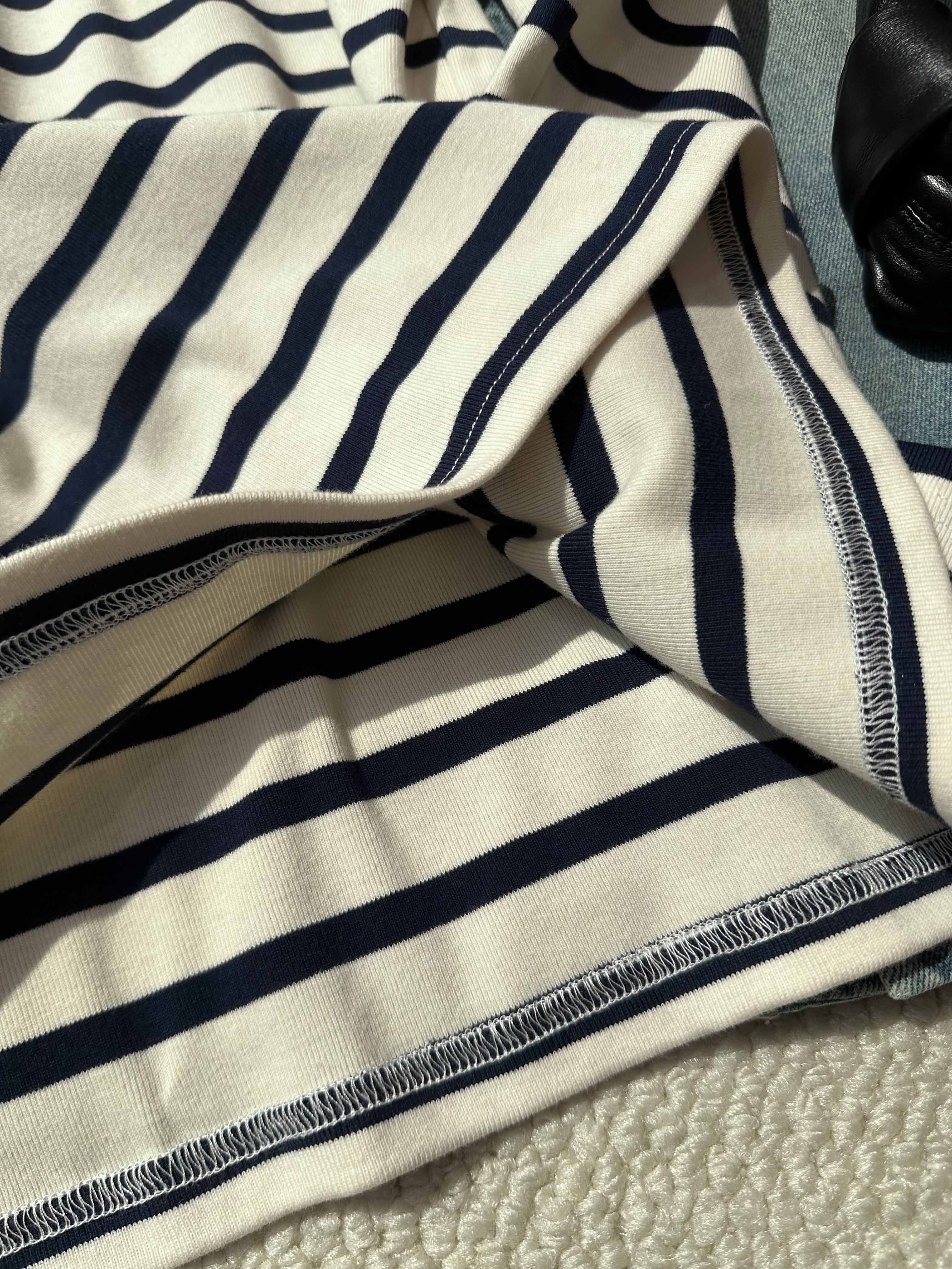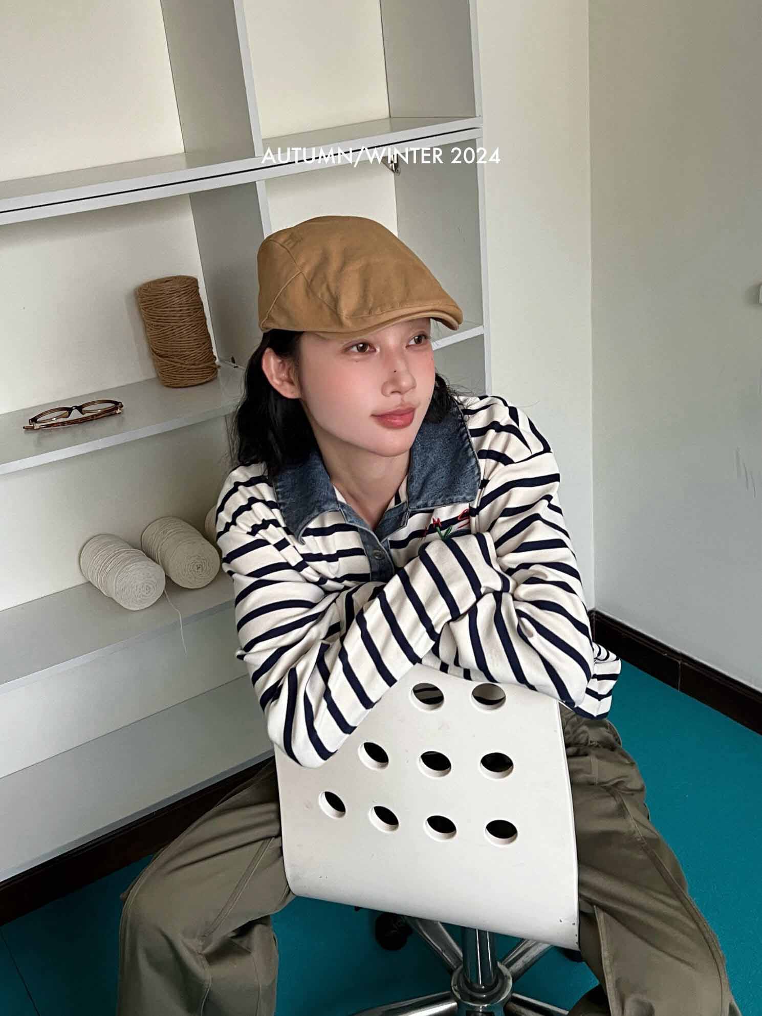 顺丰包邮22506洛诗琳美式复古撞色牛仔拼接条纹长袖T恤708