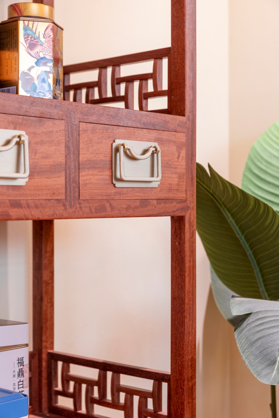 此架格可用于陈列书籍、物品,因其占地较小,用途又不止于此,无论搭配茶桌,放在房间拐角处置物,或用于成排的展示性陈列都十分的出彩和百搭。
