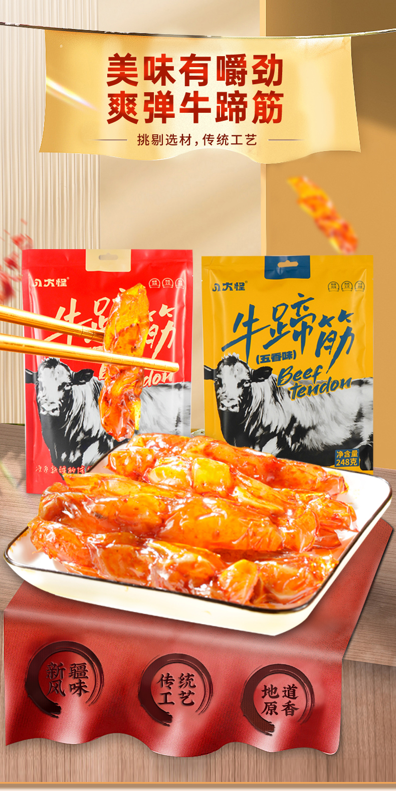 八大怪·牛蹄筋248g*2(一袋香辣味一袋五香味)劲道弹牙 Q弹爽囗
