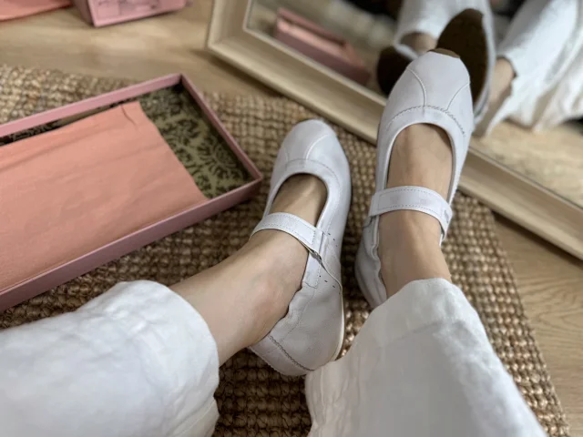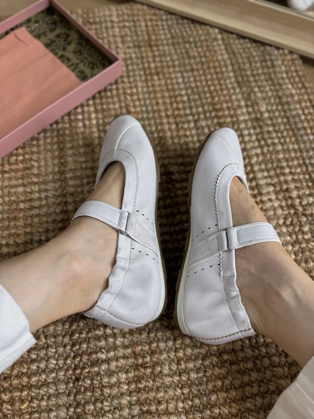 这款玛丽珍球鞋在原版基础上抬高了鞋型,缓解了脚背压迫感,但肉脚或高脚背用户可能仍有轻微不适。鞋型调整已最大限度兼顾舒适与原版风格,建议多穿着走动,松紧带会逐渐变松更贴合脚型。鞋面采用意大利进口皮,经过手工擦色工艺处理,皮质软糯、厚度优于市面同类产品,无需磨合期即可享受柔软脚感。