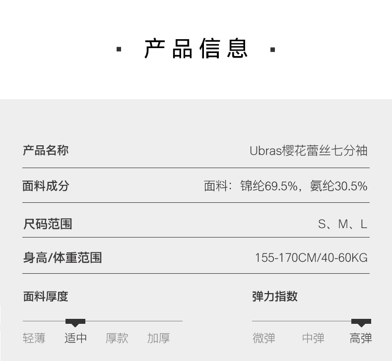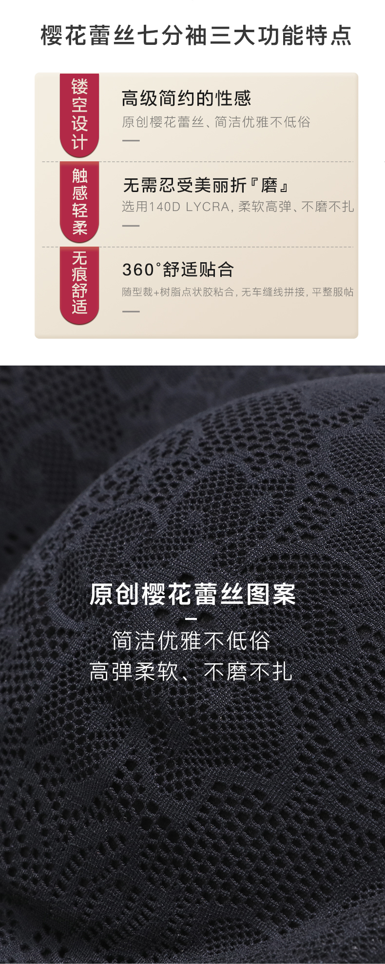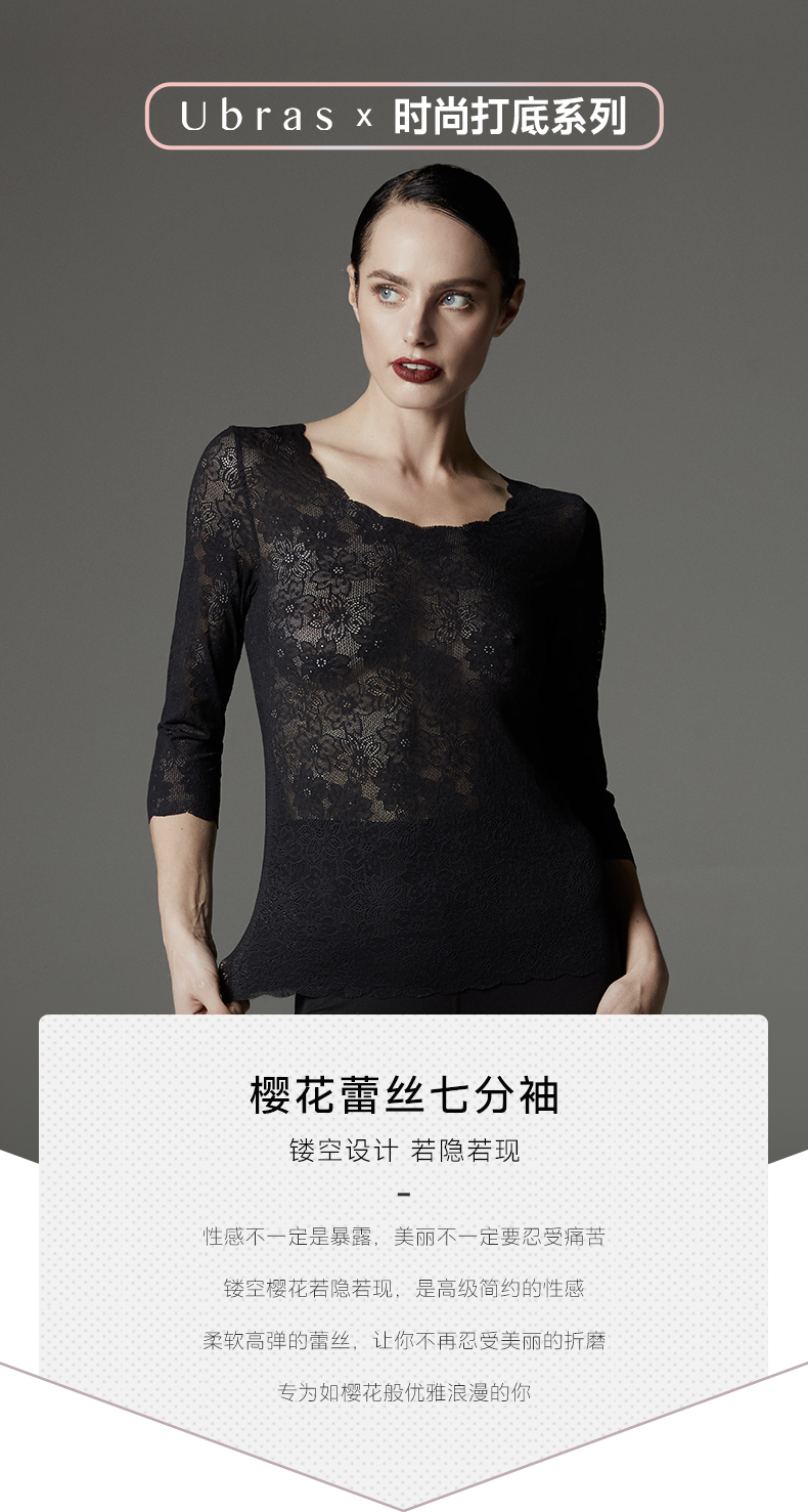 Ubras樱花蕾丝七分袖上衣女士性感时尚百搭打底中袖上衣秋季新款