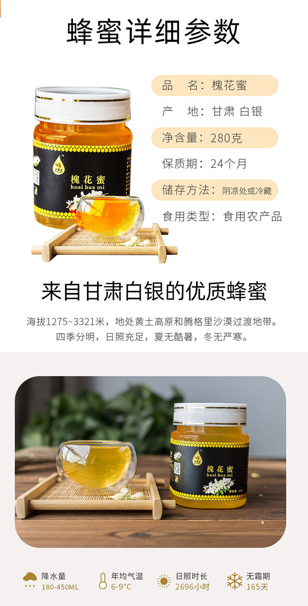 甘肃白银今蜜源 【洋槐蜜 280g*2瓶】