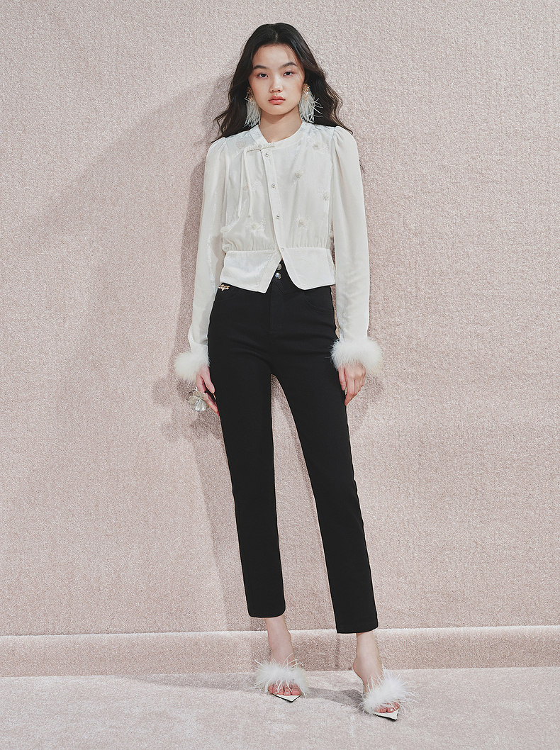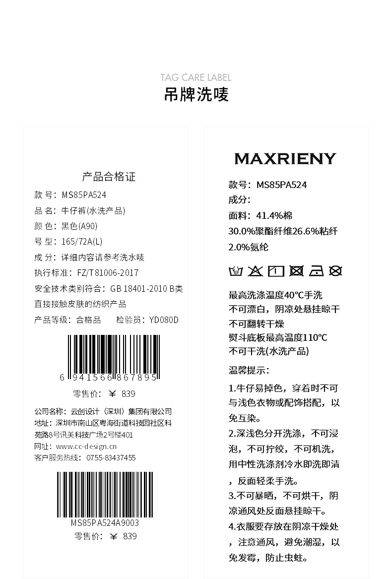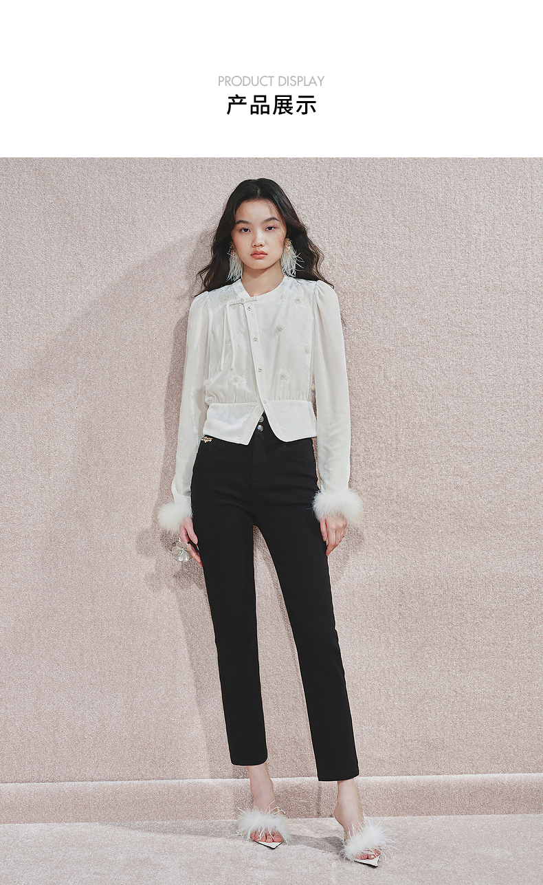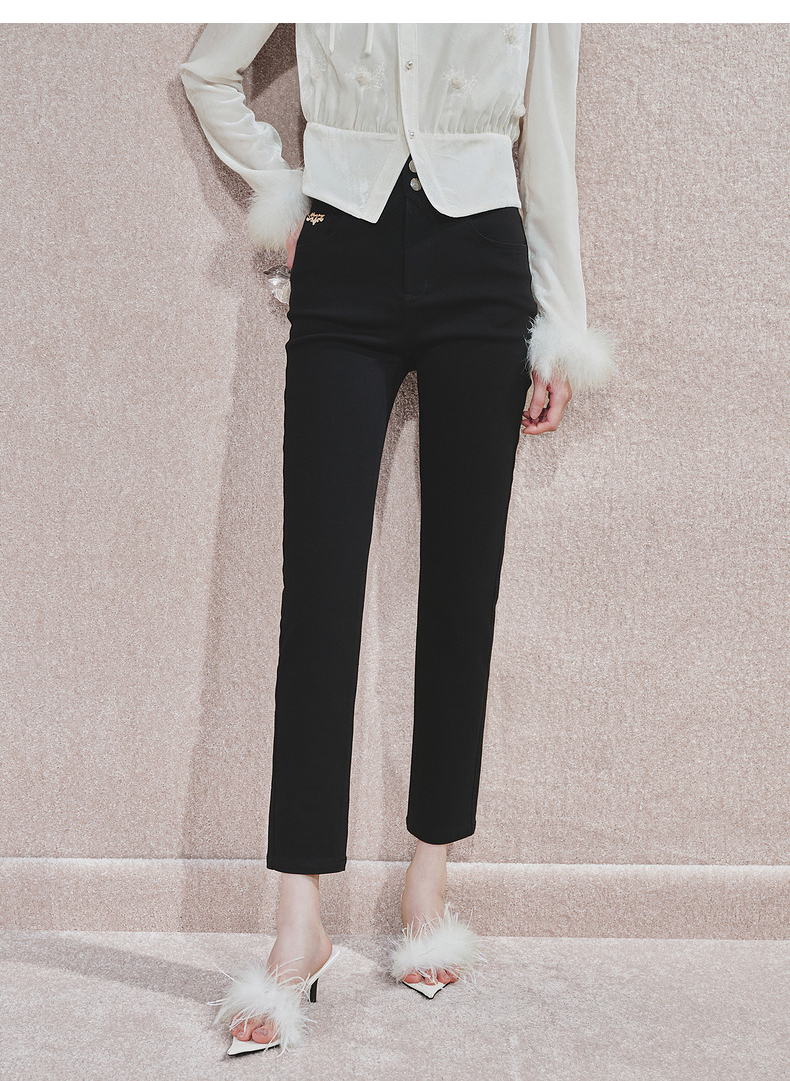MAXRIENY时尚黑色高腰修长显瘦牛仔裤24冬新款女装高级气质感(货号:MS85PA524)