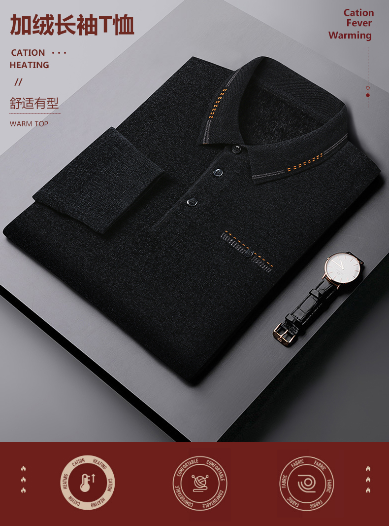 【新款DWP】大依优型大码加绒长袖Polo衫翻领男装加肥加大体恤大号上衣胖子