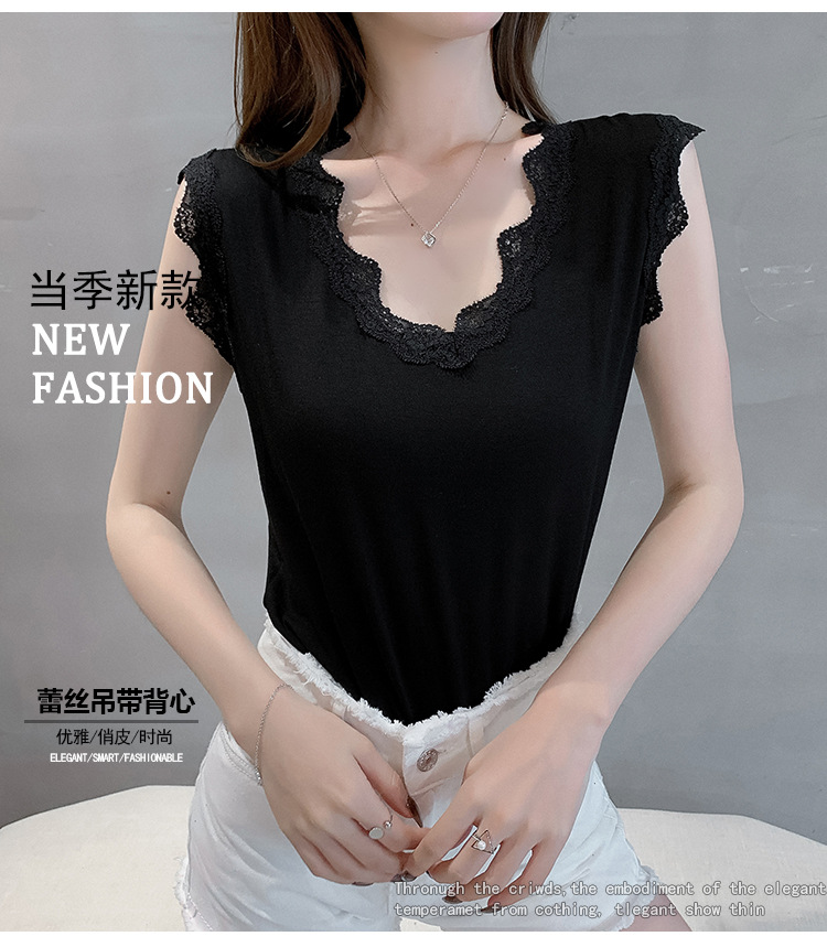 XY-992318新款修身显瘦莫代尔花边内搭后背蝴蝶吊带背心女WY