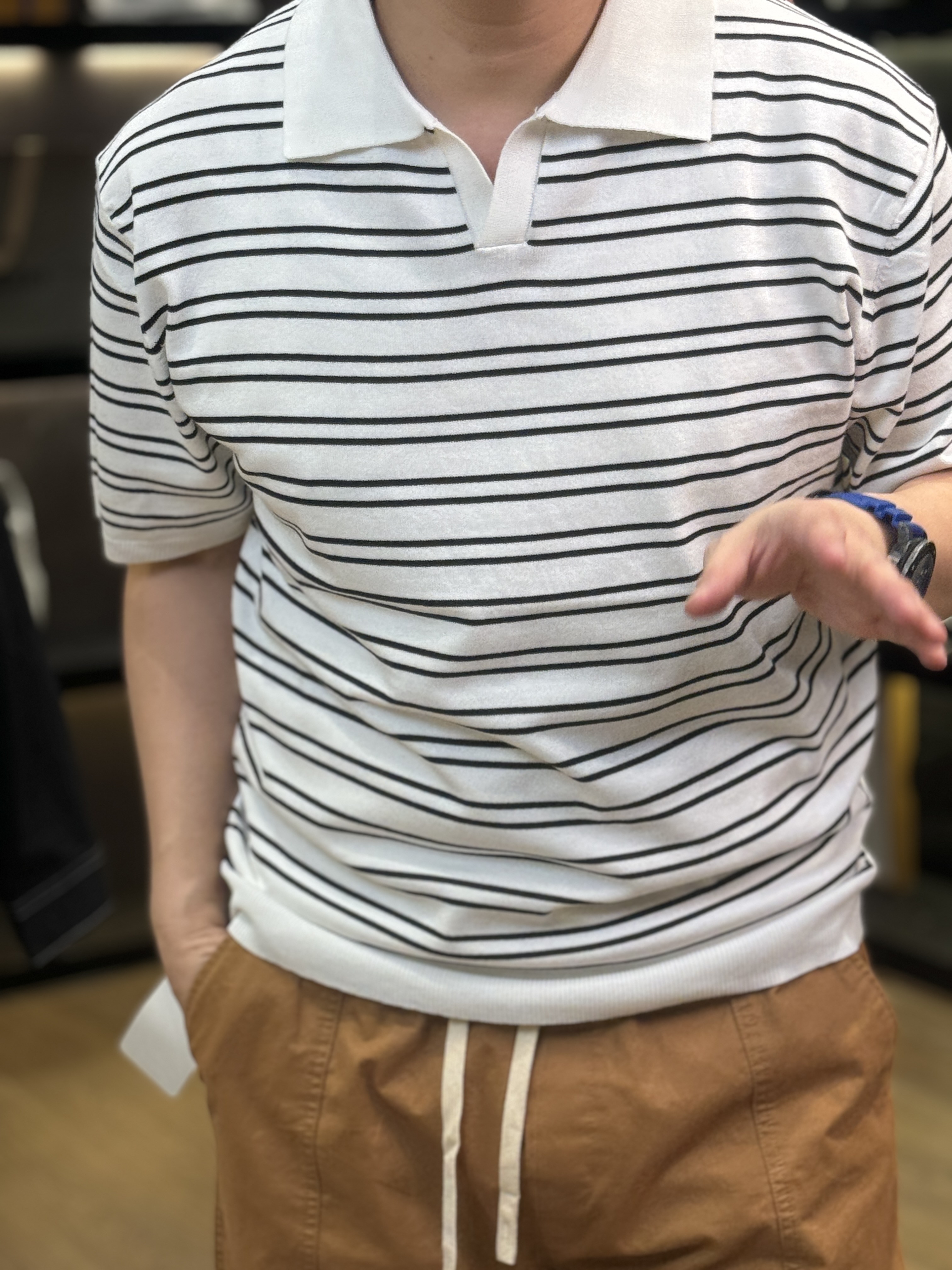 POLO领设计复古又减龄,领口弧度贴合颈部,不勒脖子还能修饰脸型,随手一搭就很有松弛感,配项链、挂坠超加分~