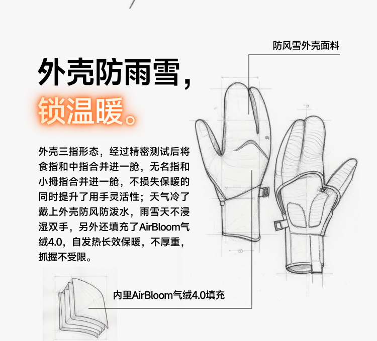 【25秋冬新品】蕉下分指式防风雨保暖手套LS000