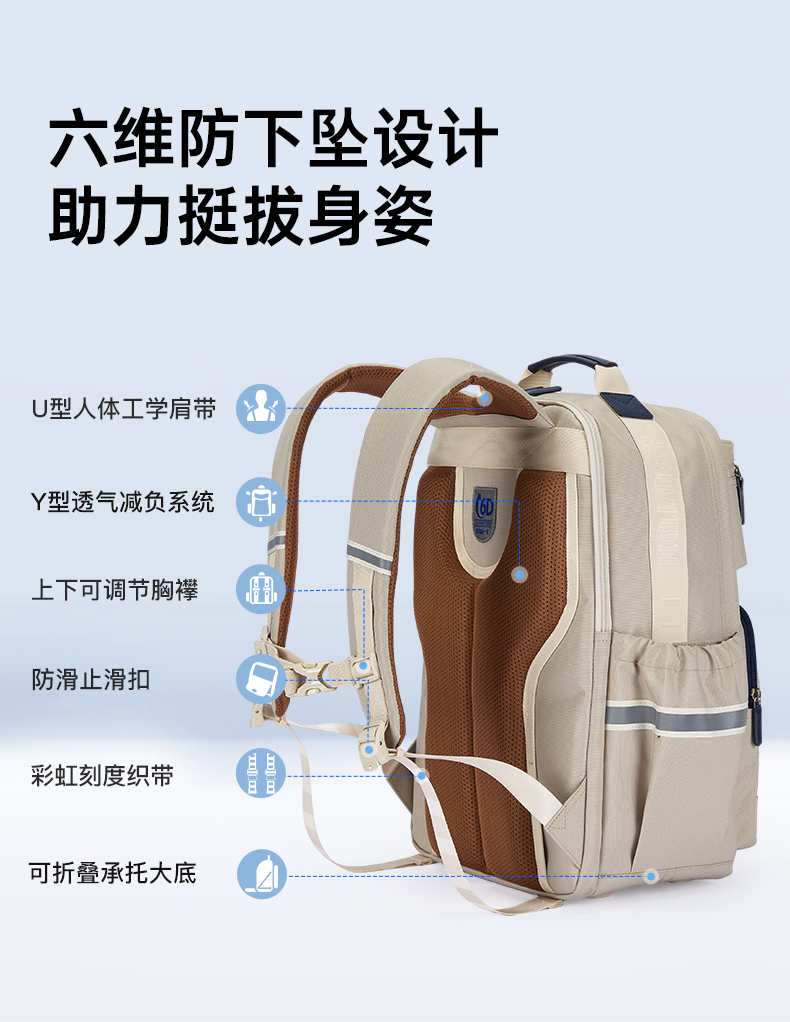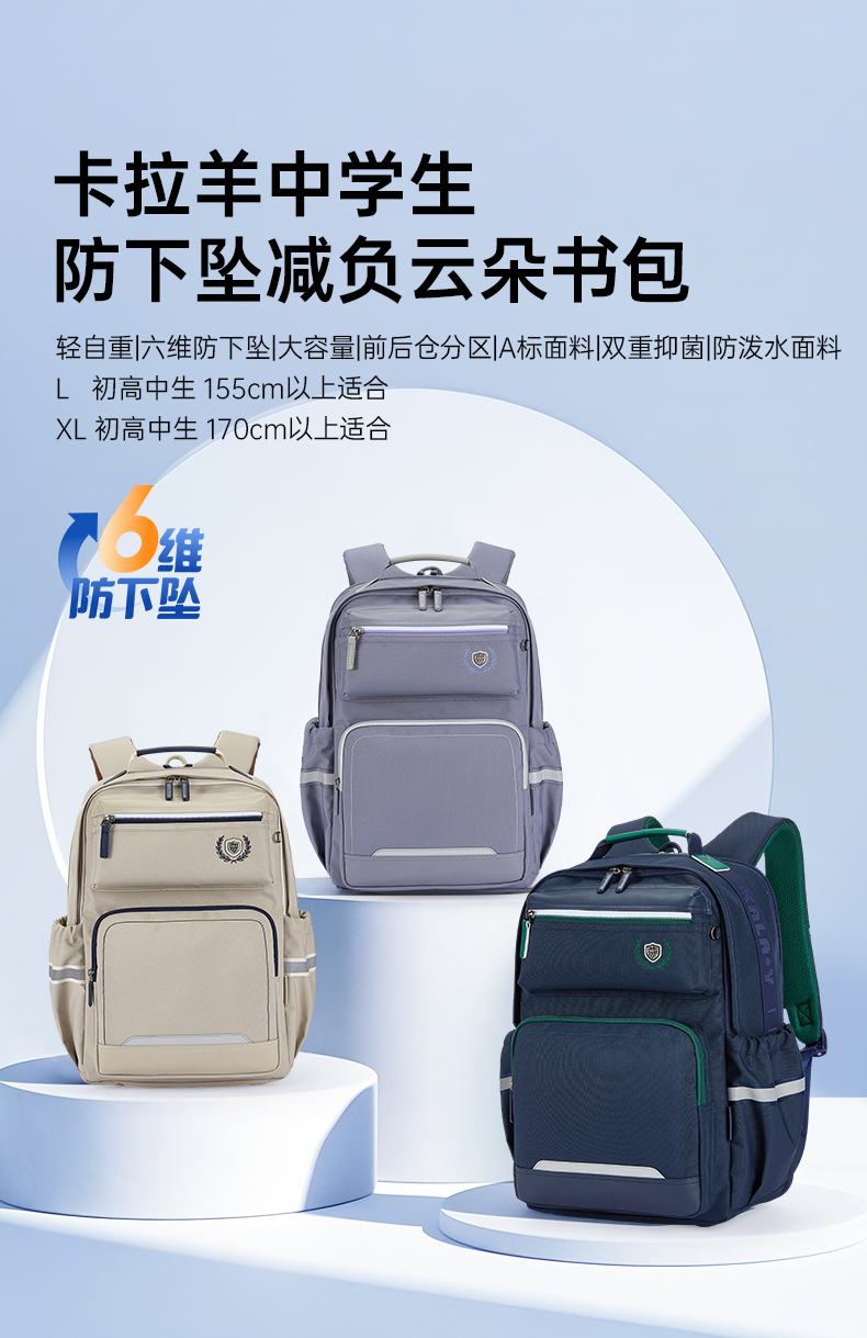 【云朵书包Classic】卡拉羊中学生6维减负防下坠书包双肩包揽月 CX5088/L
