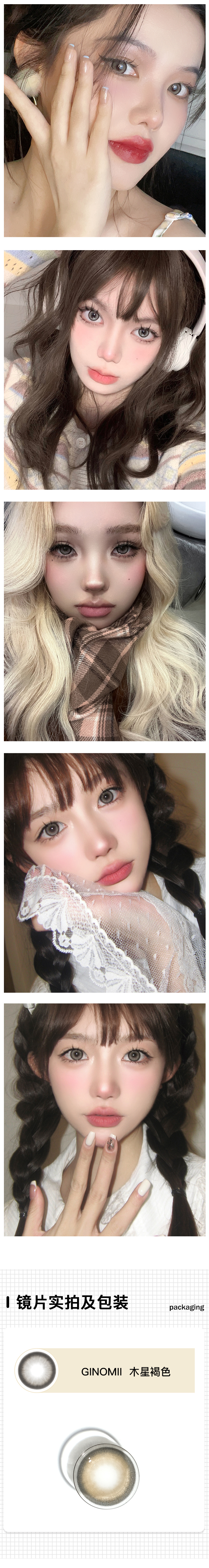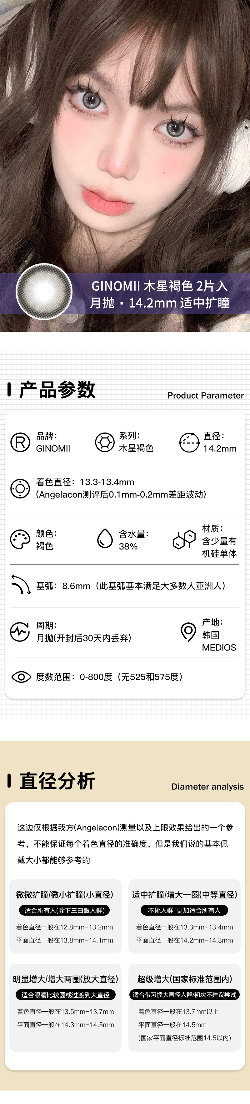 Ginomii / 木星褐色 / 美瞳月抛 / 2片入 / 14.2mm / 适中扩瞳粗边亚麻融瞳轻混血