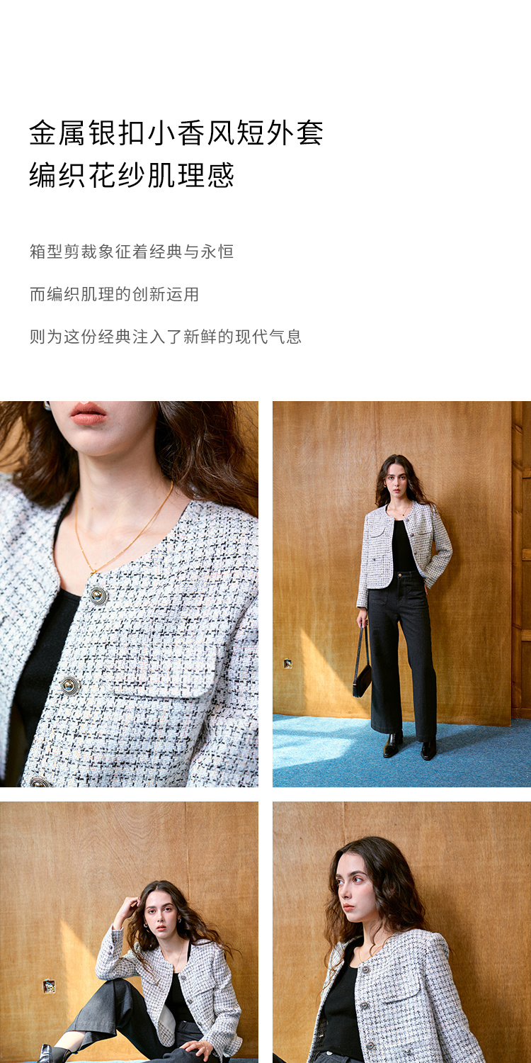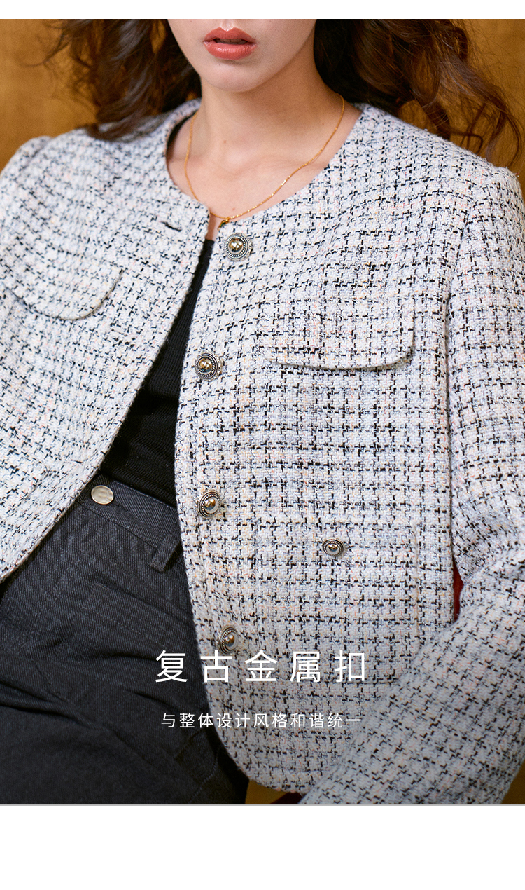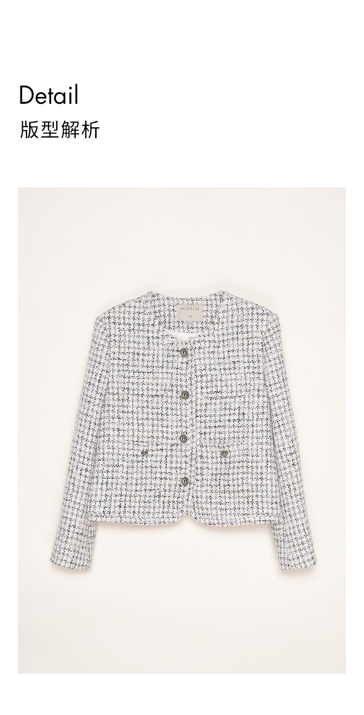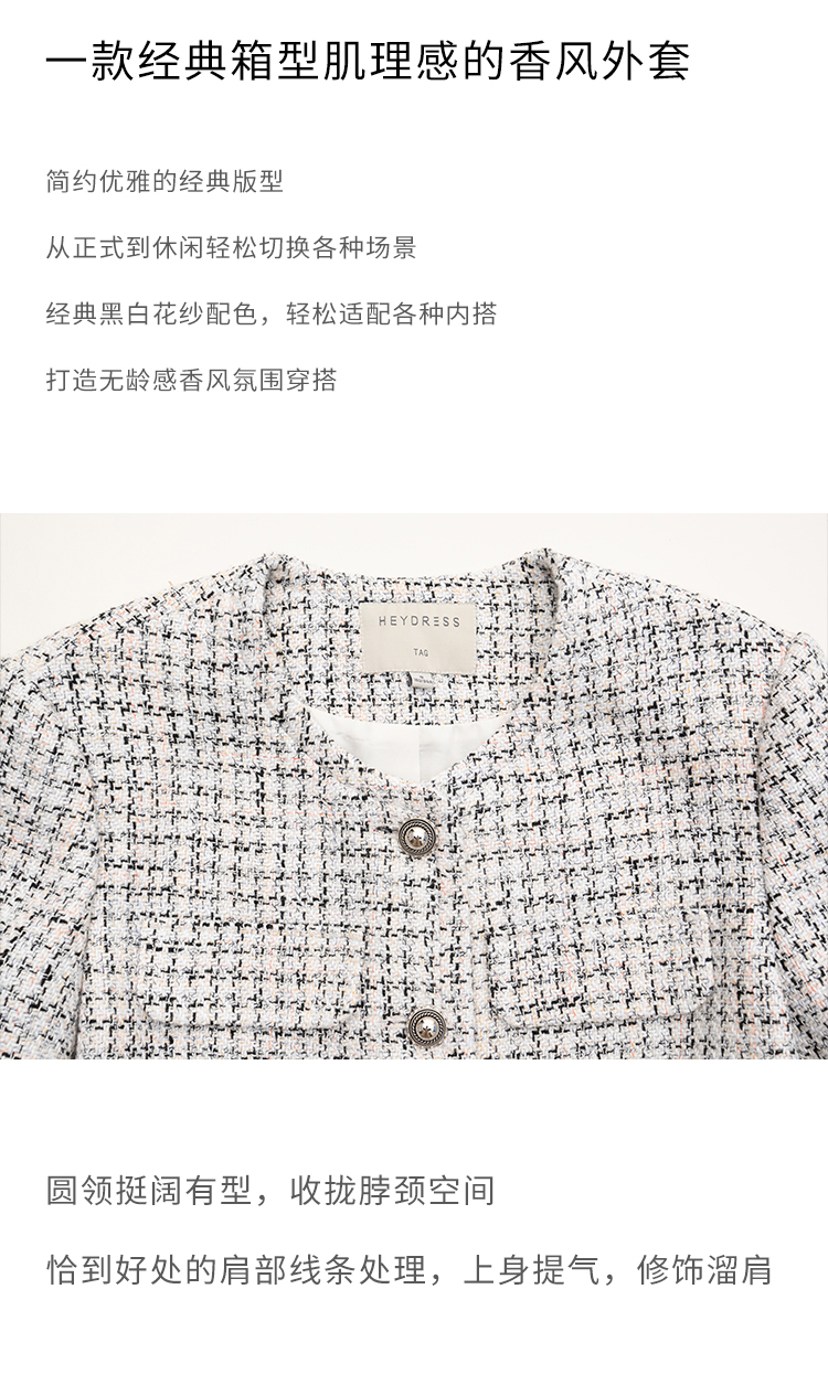 Heydress肌理感香风外套女秋季经典简约花纱金属扣箱型短款上衣