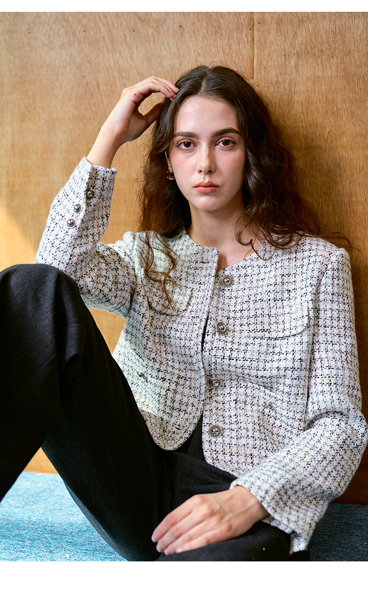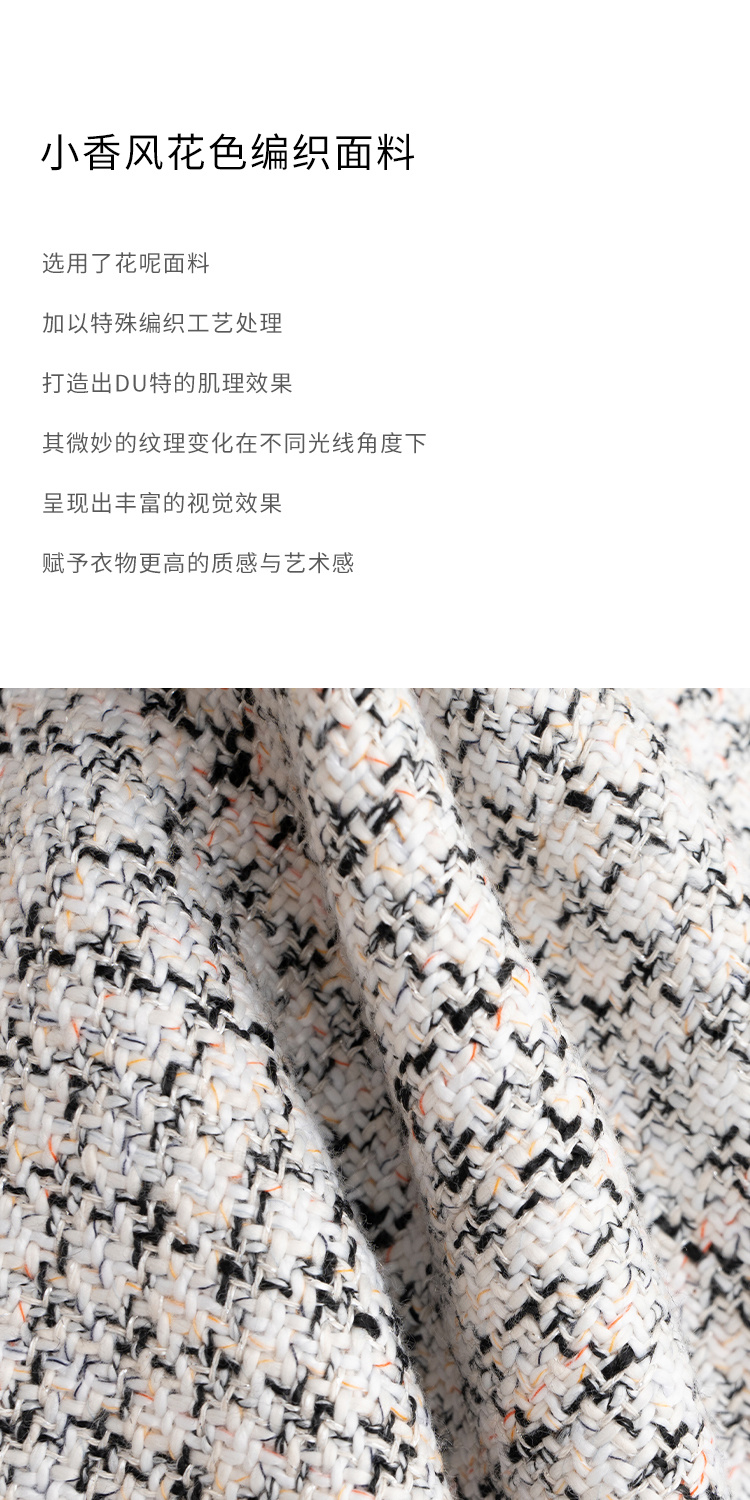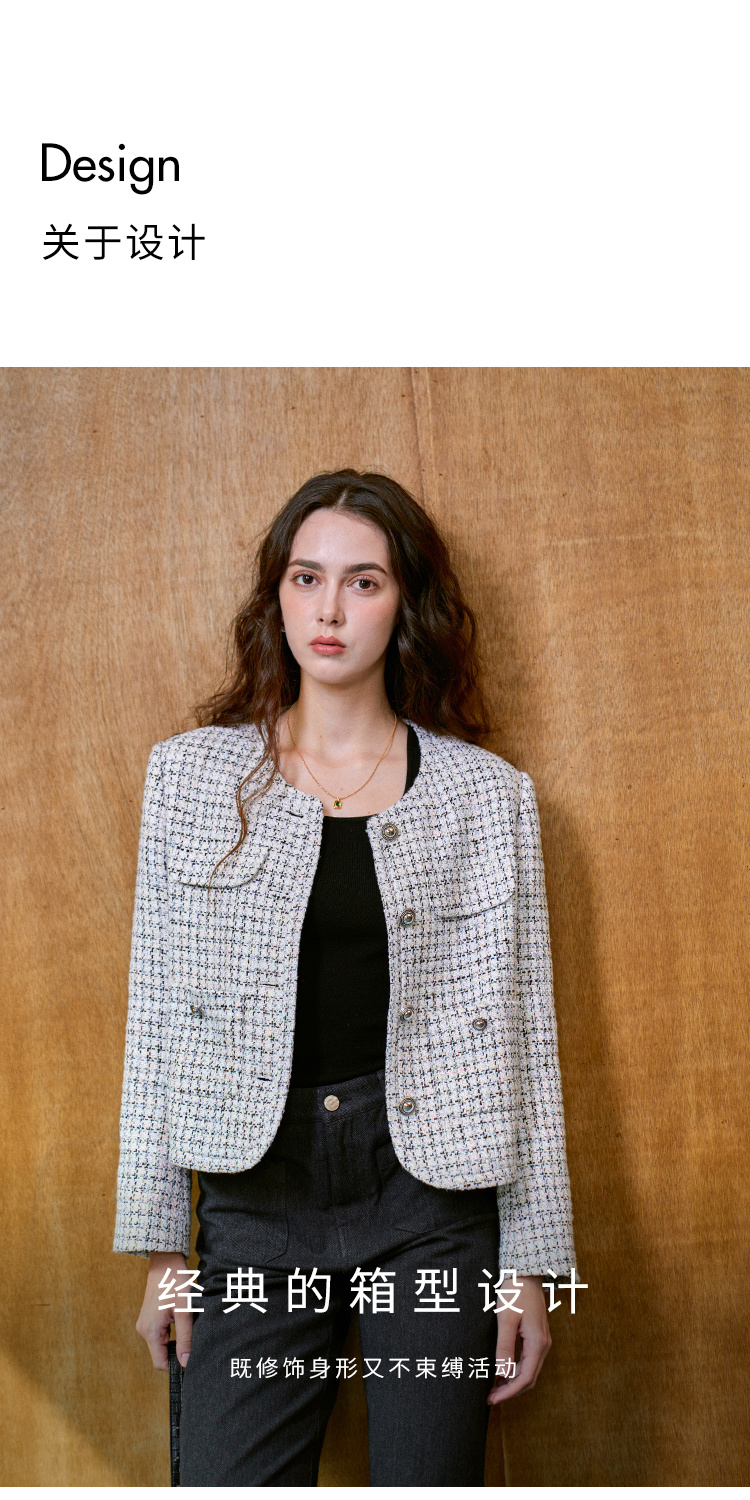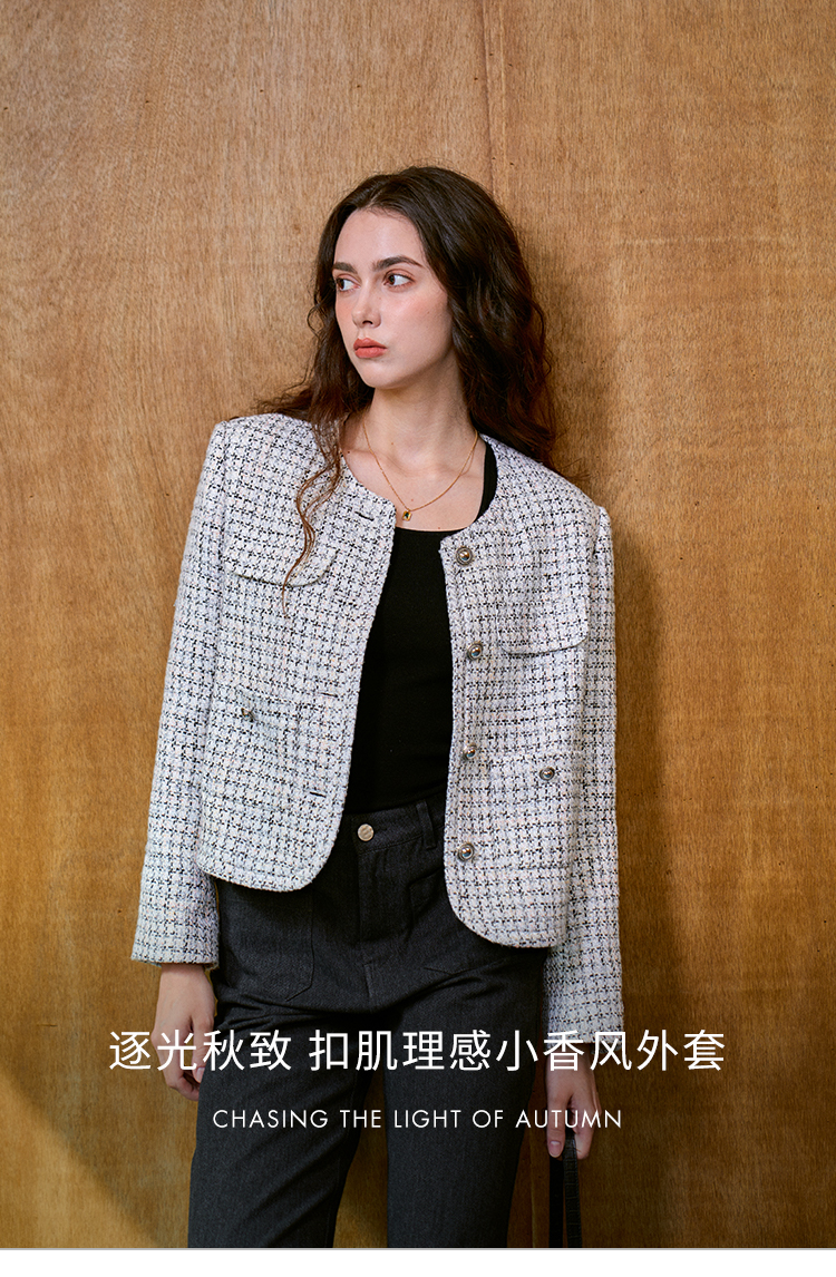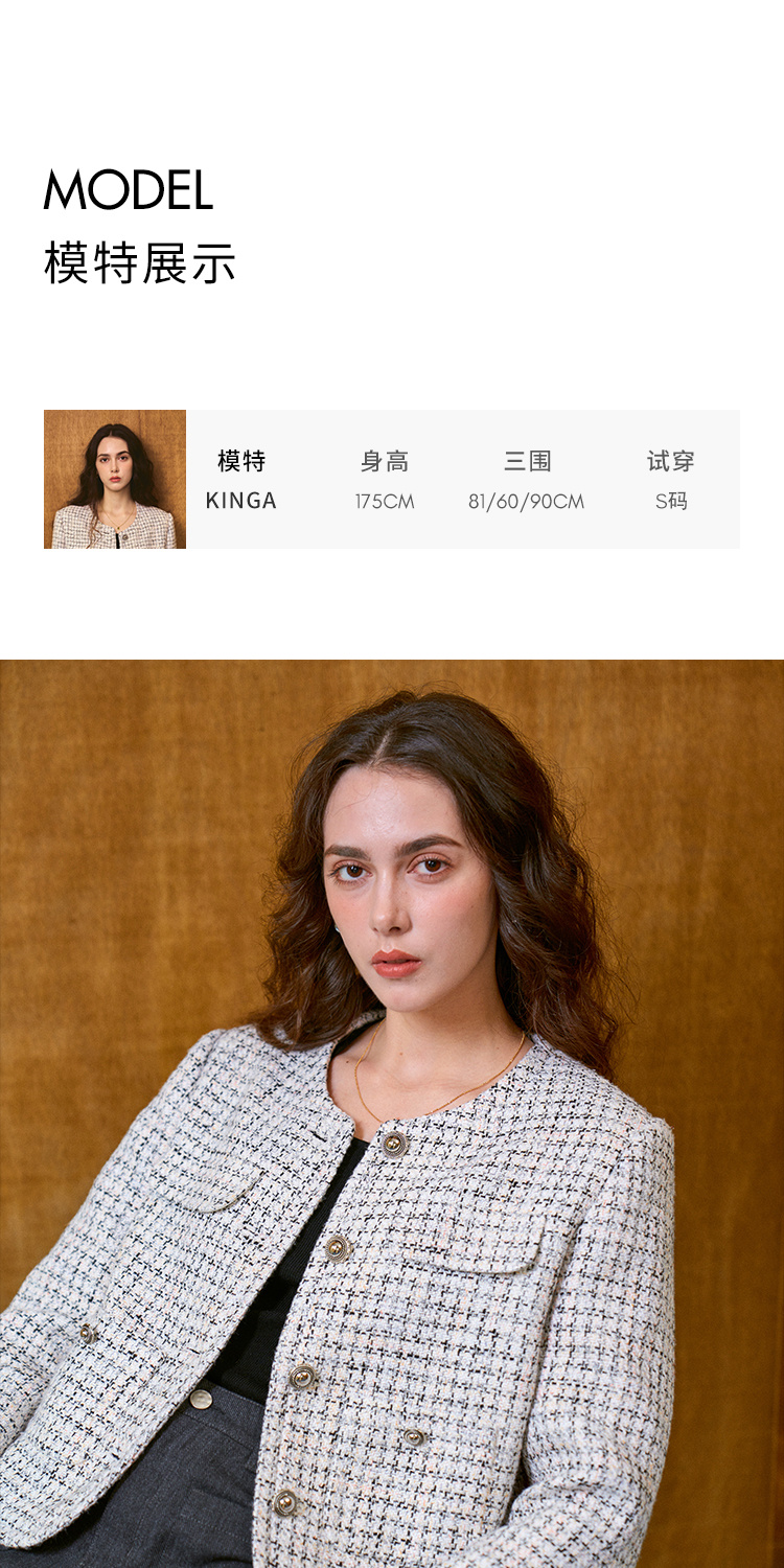 Heydress肌理感香风外套女秋季经典简约花纱金属扣箱型短款上衣
