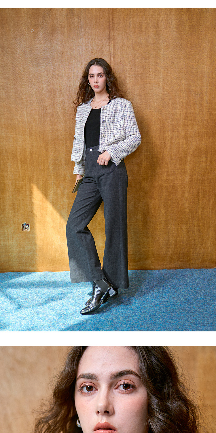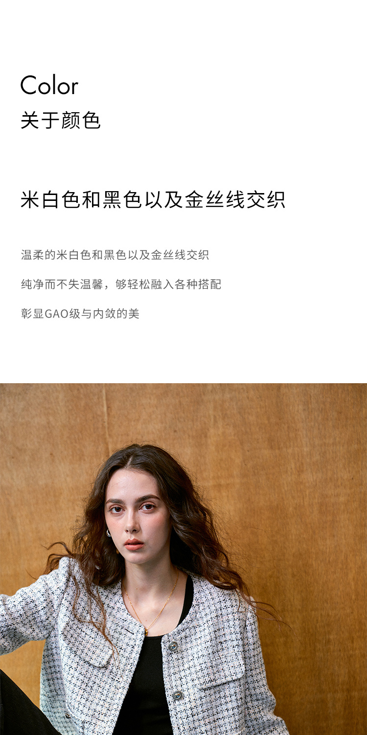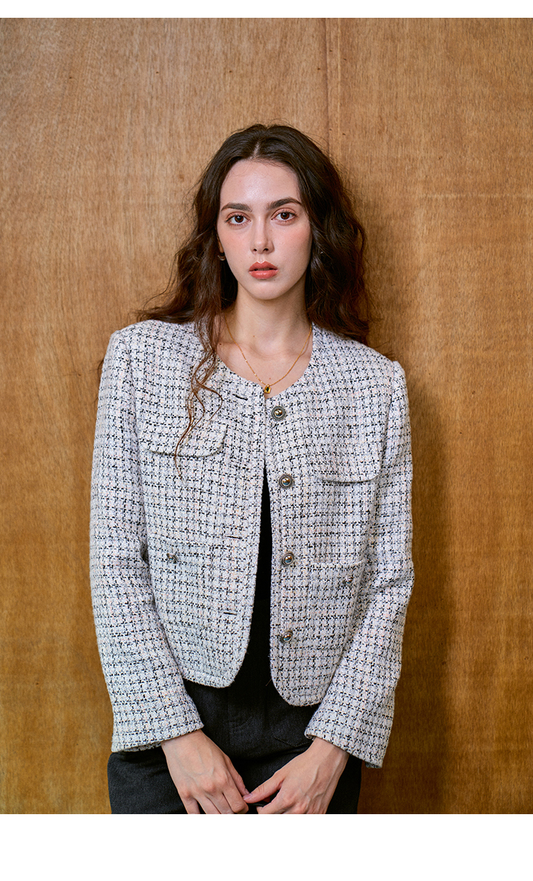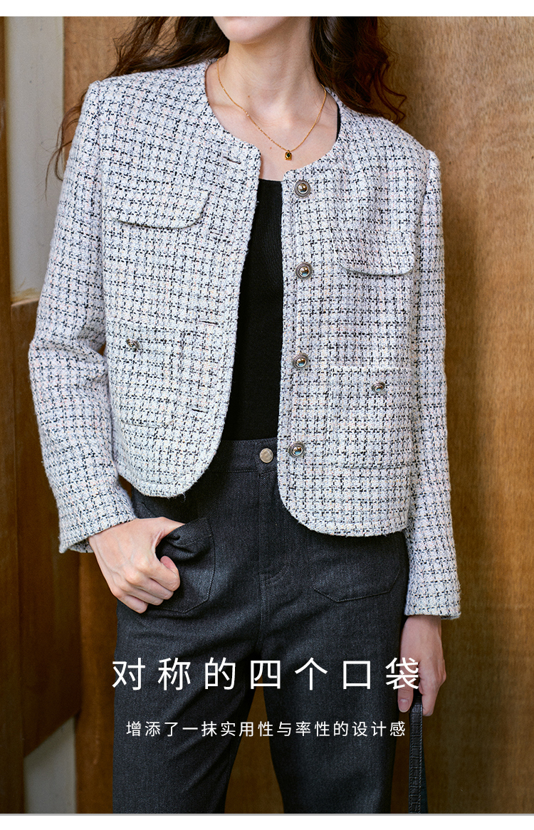 Heydress肌理感香风外套女秋季经典简约花纱金属扣箱型短款上衣