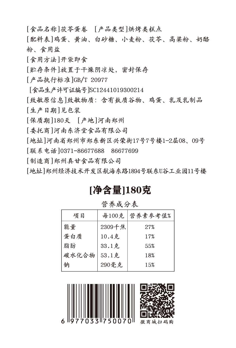 东济堂手工茯苓鸡蛋卷层层松 脆 香酥到掉渣 28支/盒