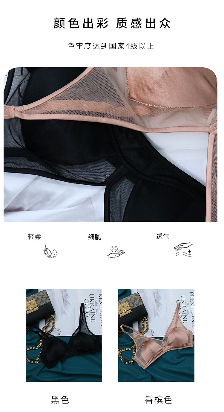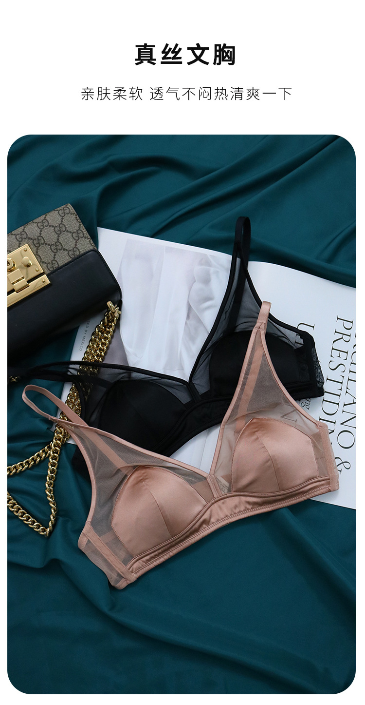 TG-TG02S191 法式光面真丝三角杯文胸 缎面轻奢桑蚕丝无钢圈内衣小胸薄款