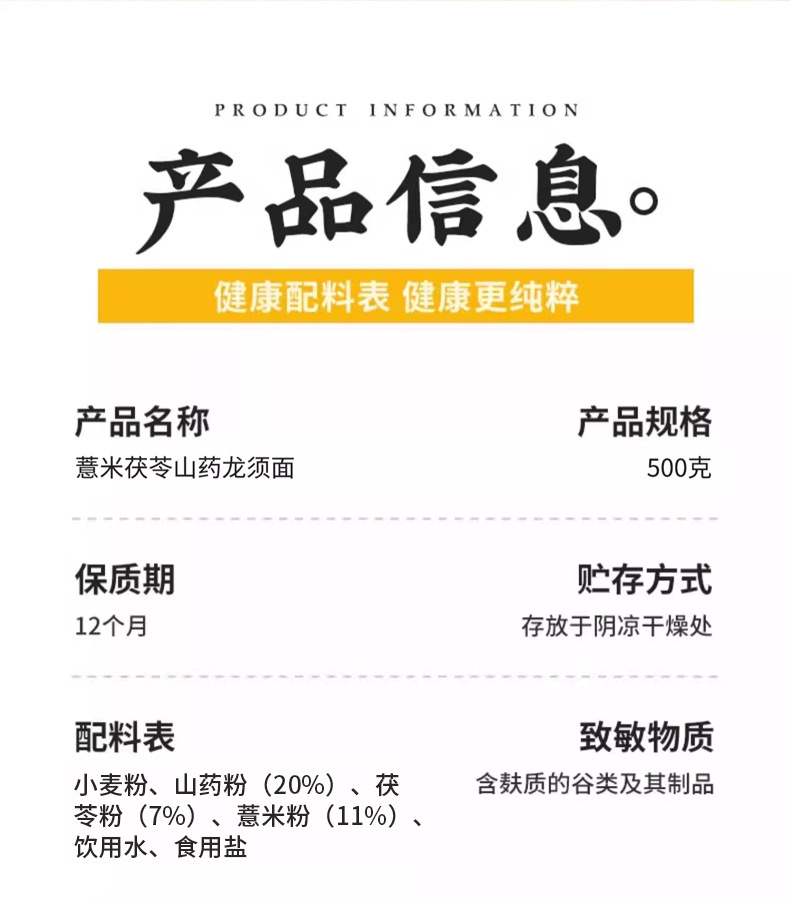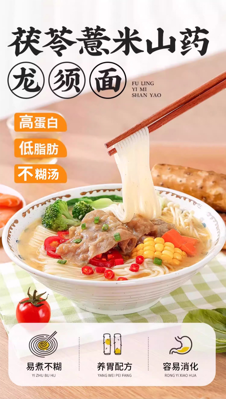 高蛋白,低脂肪【三大好食材,温暖你的胃】正宗茯苓薏米山药小麦龙须挂面条山药速食手工早中晚餐。ha