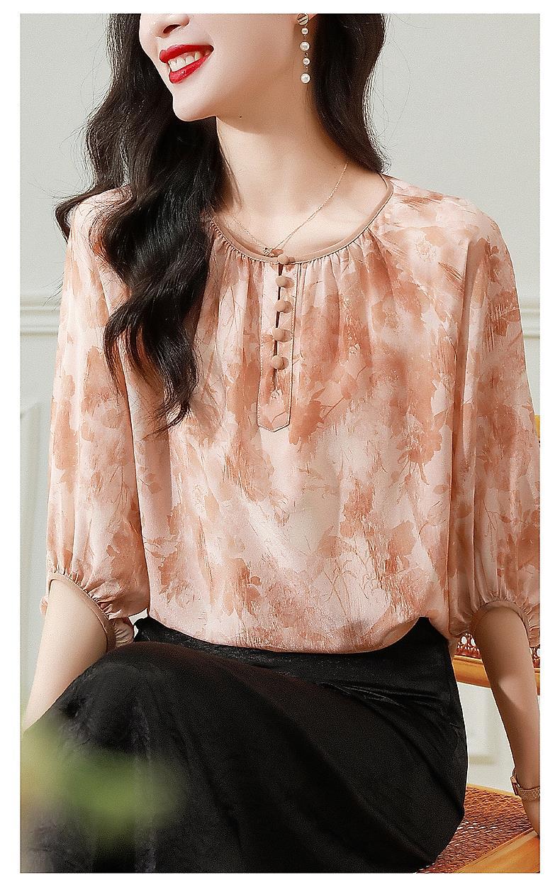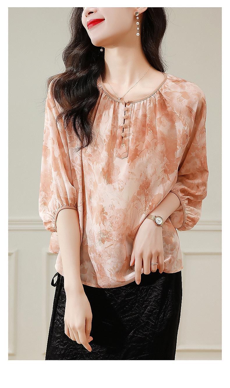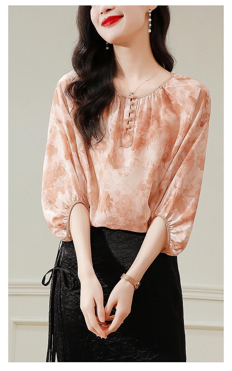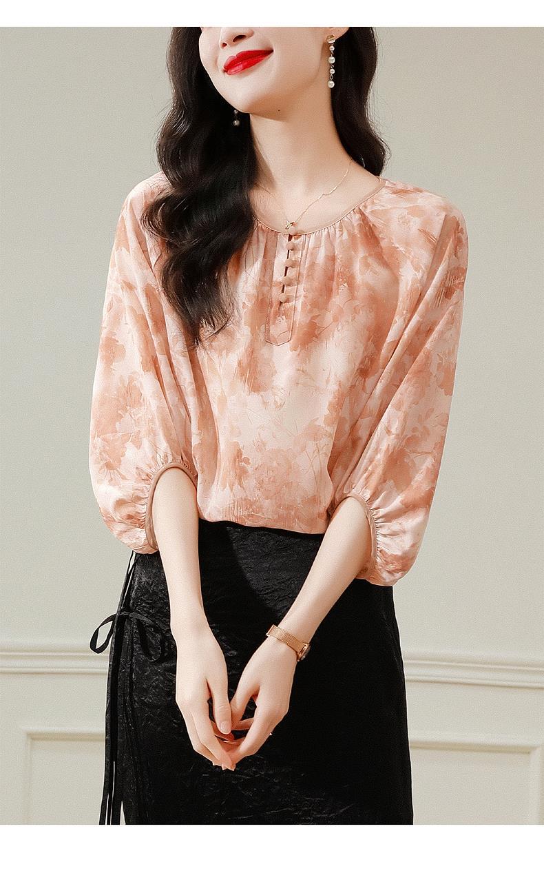 SMZ16615 2024夏季新款小众减龄法式轻熟别致薄款气质印花七分袖上衣