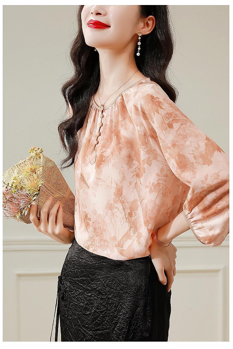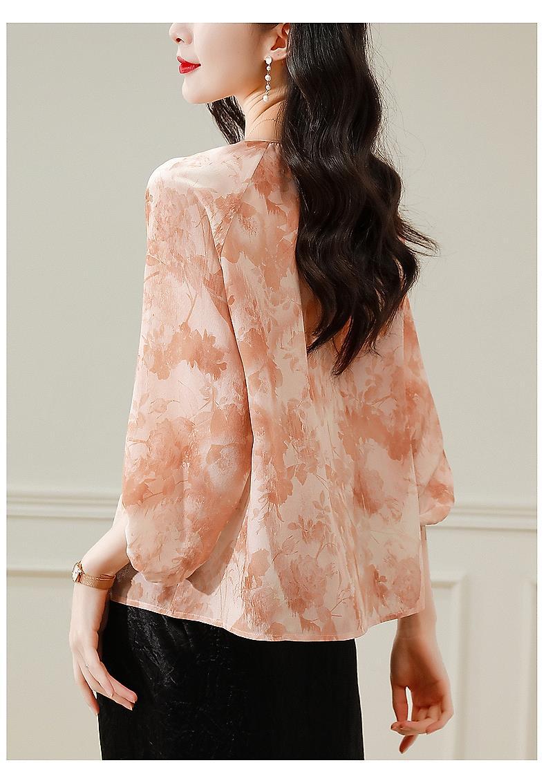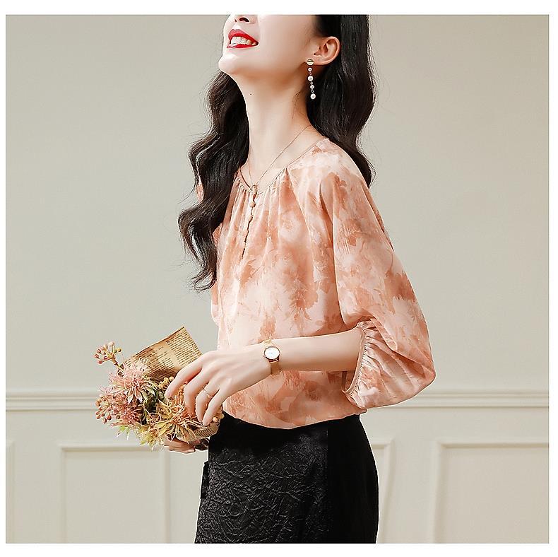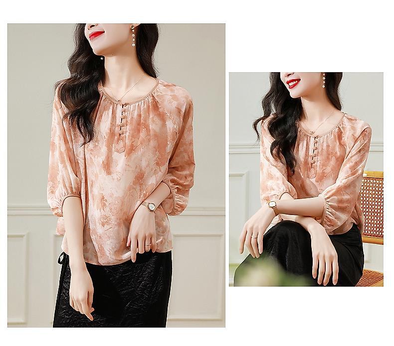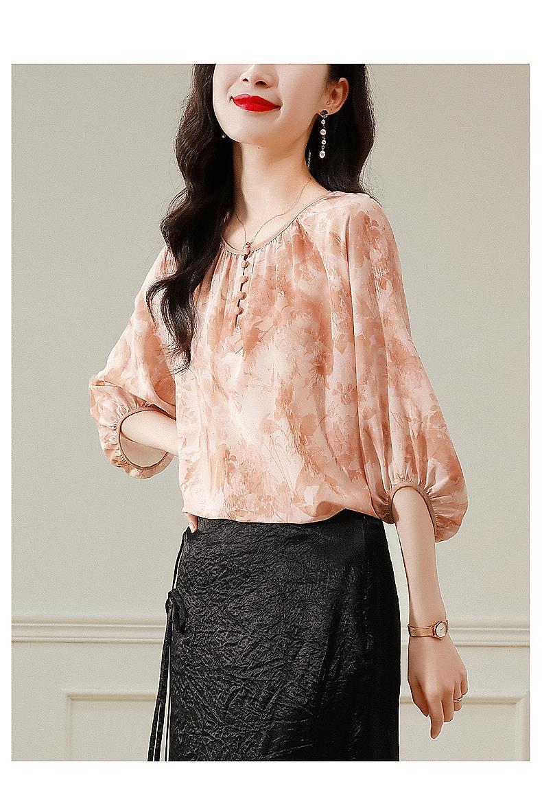SMZ16615 2024夏季新款小众减龄法式轻熟别致薄款气质印花七分袖上衣