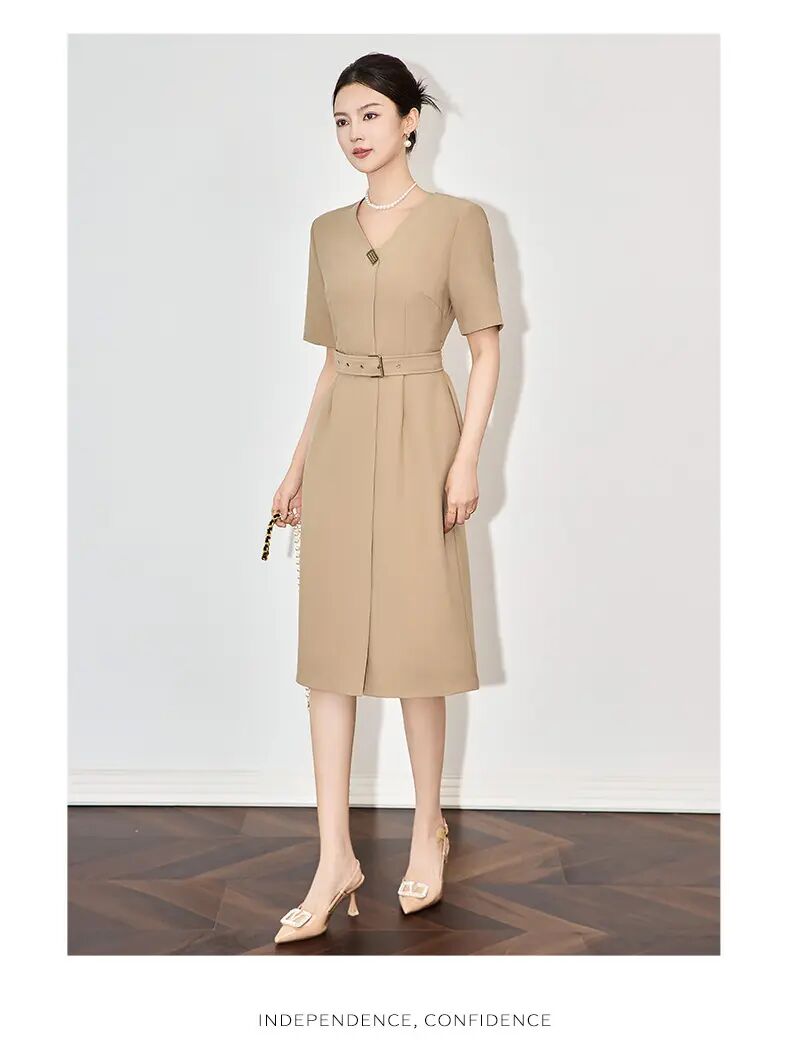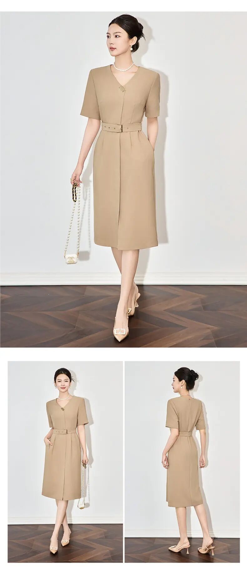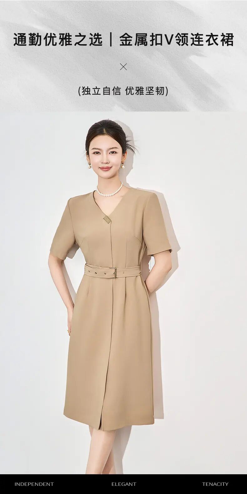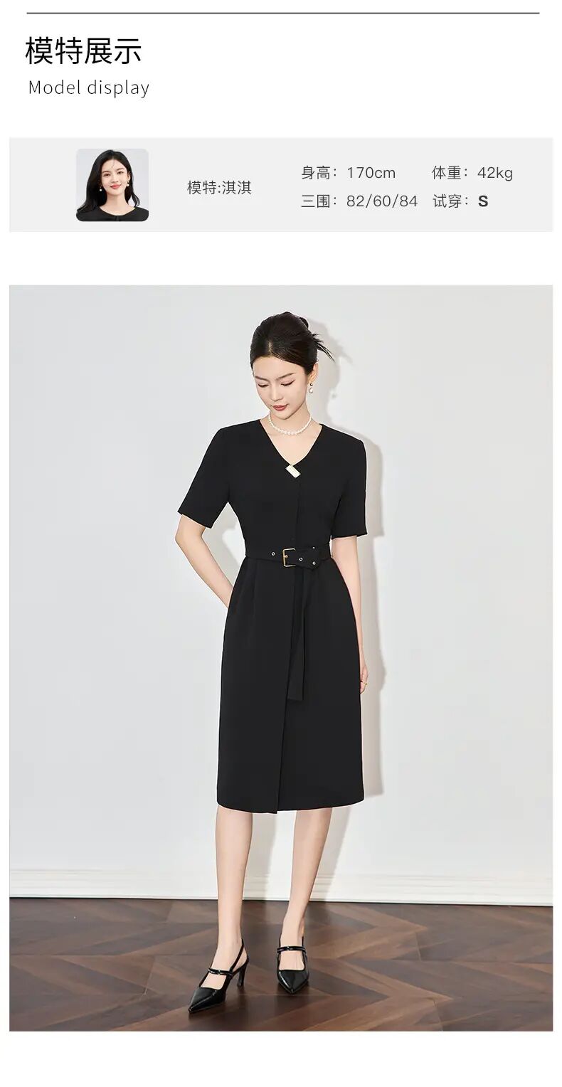 【高货wl】全新升级【铂金会员330/天猫439/差价109】(03853) 洛诗琳春款高级感通勤气质V领包臀裙时尚端庄大气连衣裙