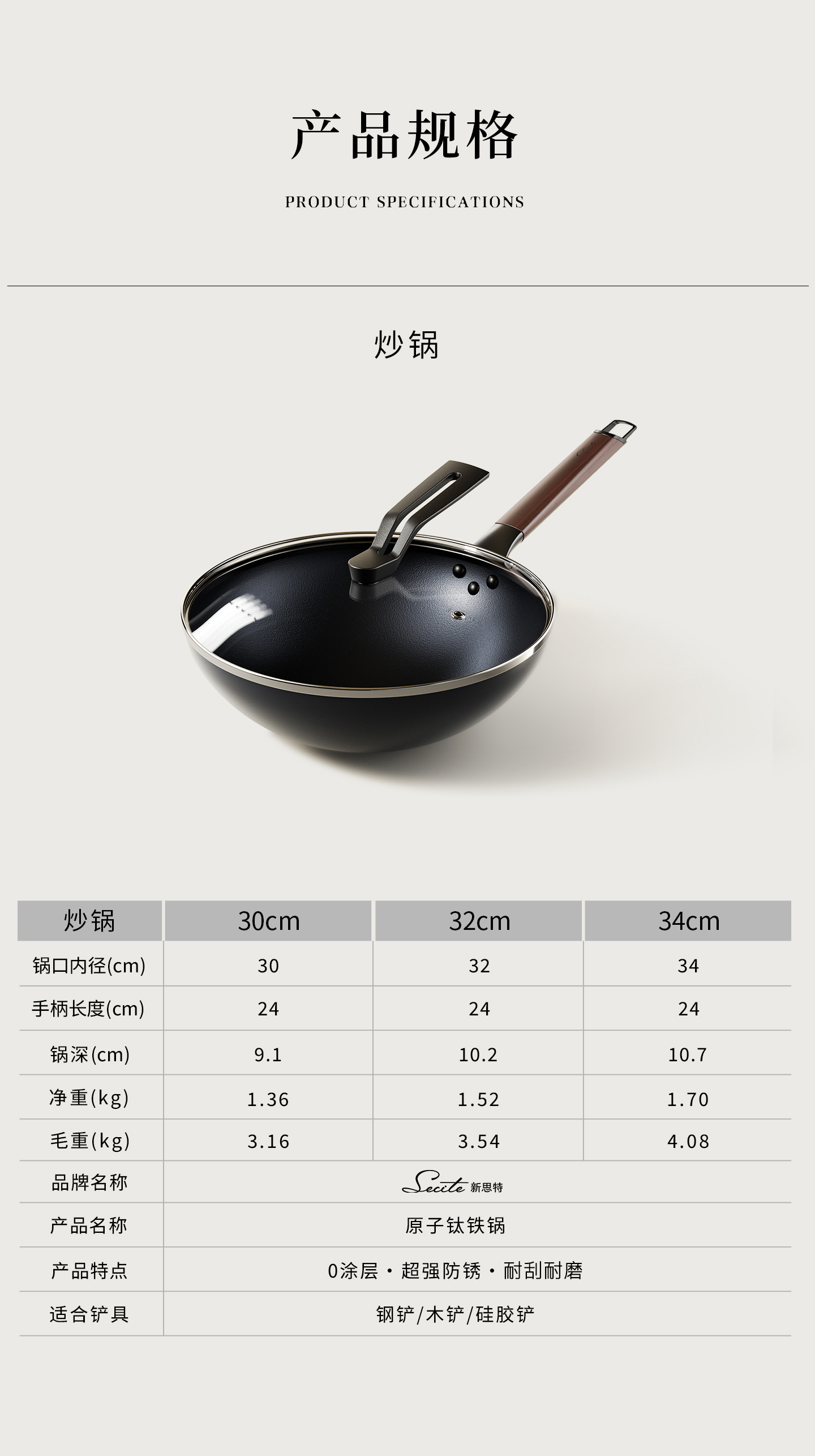 新思特原子钛铁锅 家用电磁炉燃气灶专用