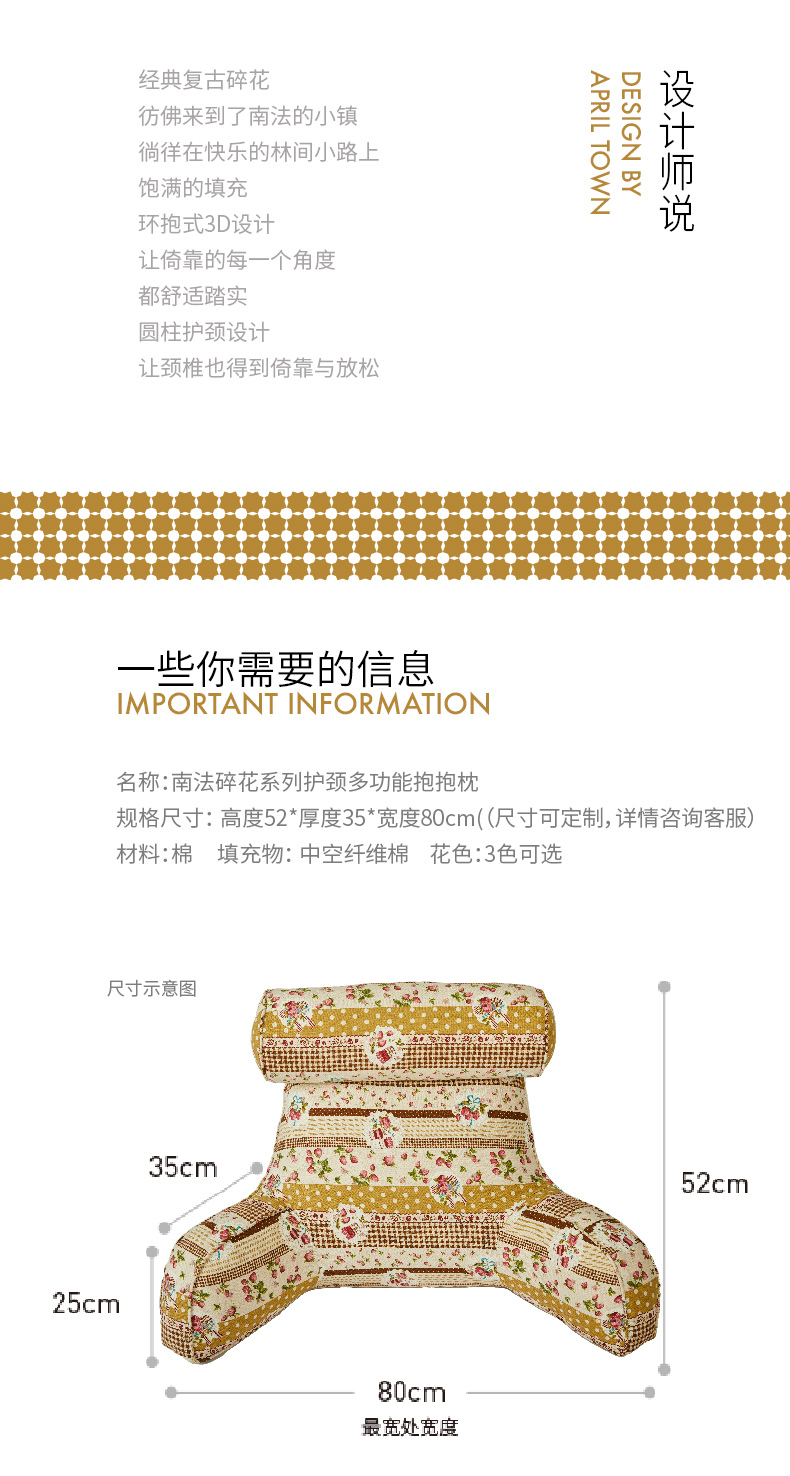 南法碎花护颈多功能靠枕床头沙发软包高级感靠垫