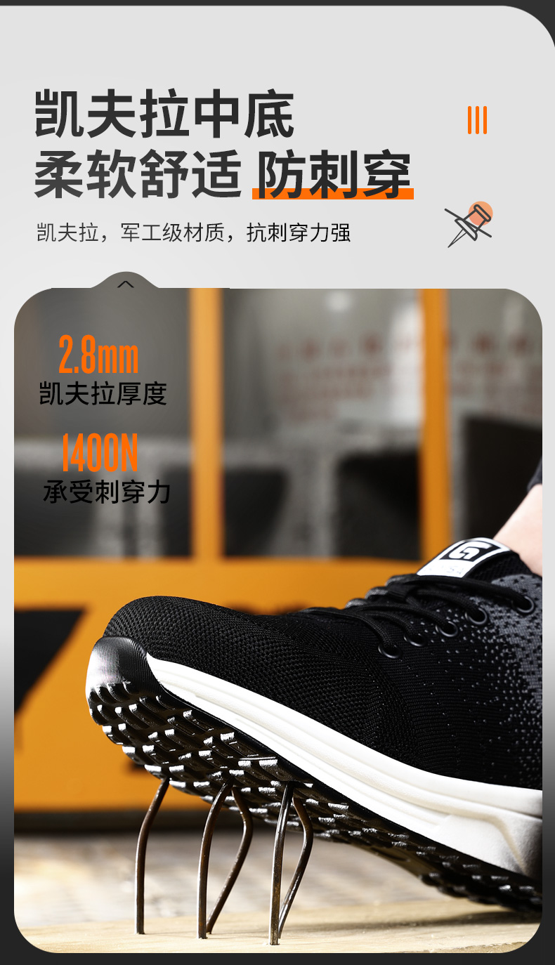劳保鞋男防砸防刺PU大底安全鞋四季款透气柔软