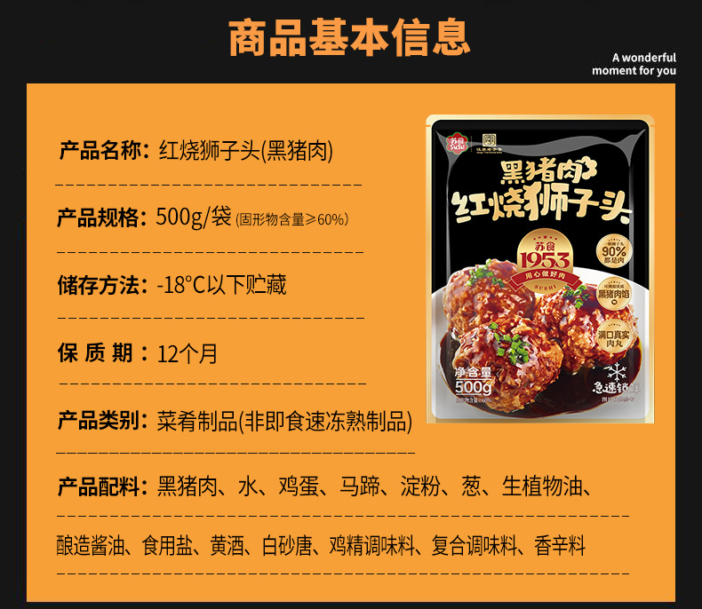 【南京提货券300-500】苏食黑猪红烧马蹄狮子头500克*4袋