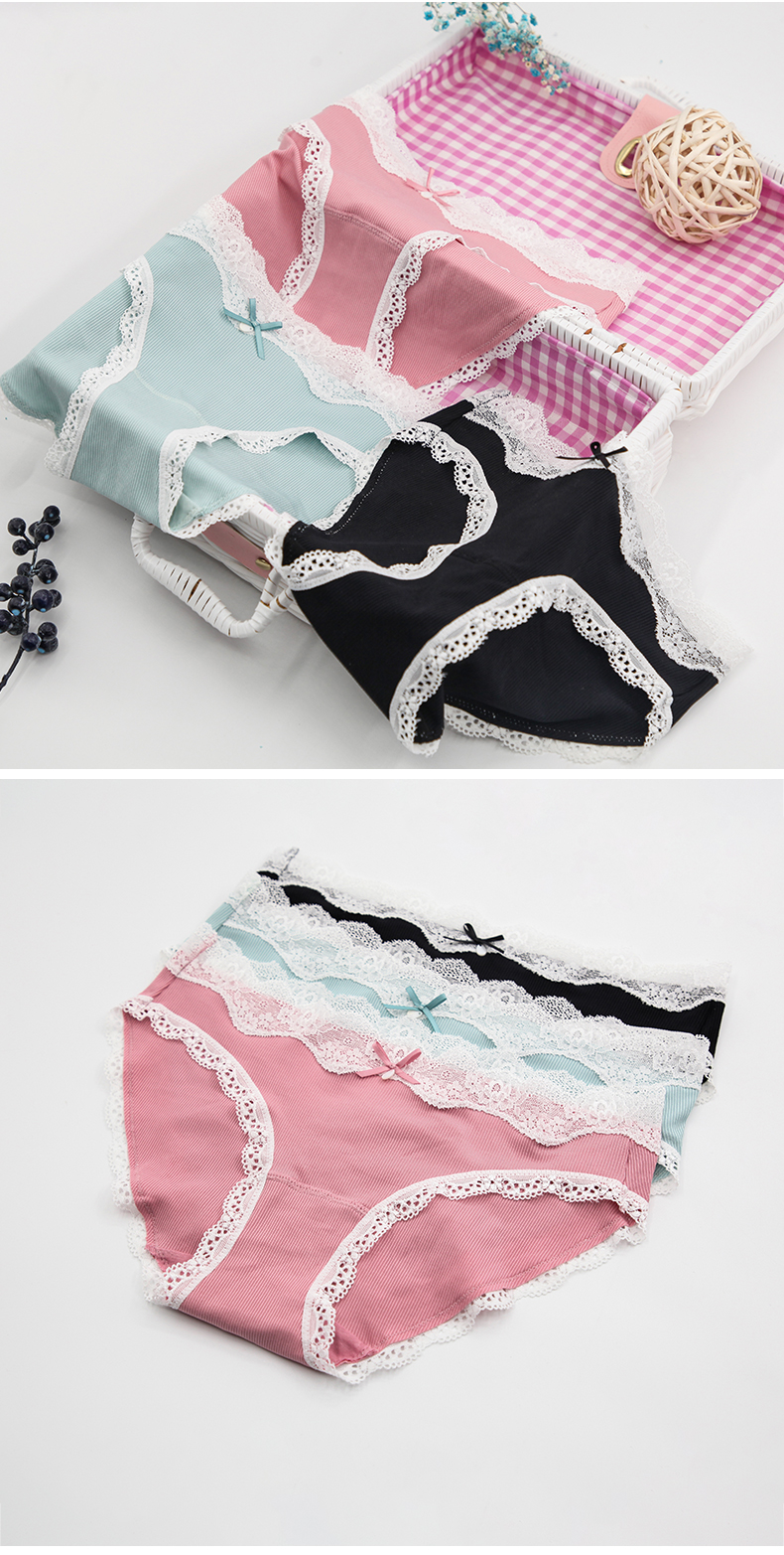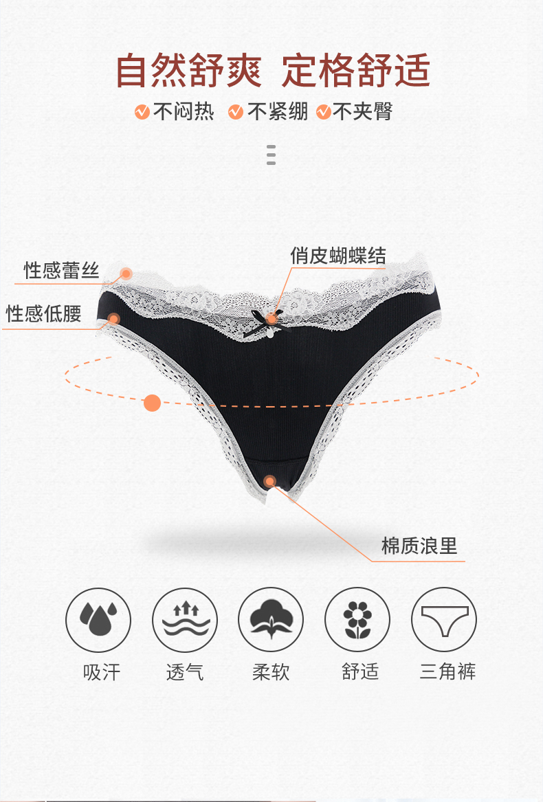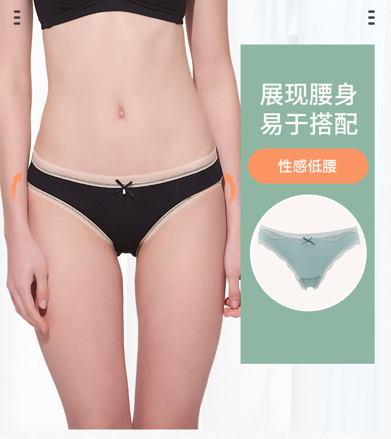 贝佳人新品低腰三角裤蕾丝甜美可爱少女感内裤亲肤棉质BW712115