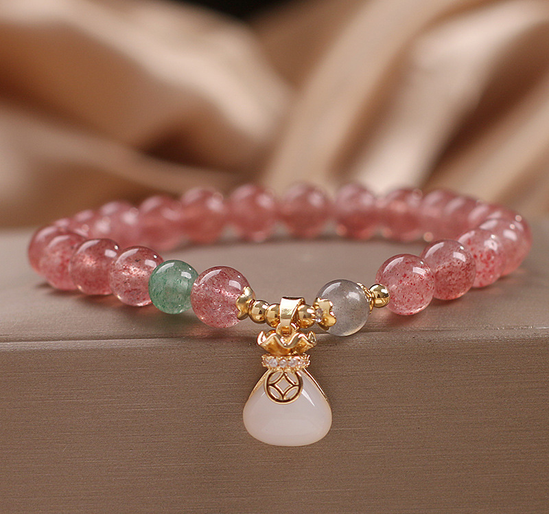 太清草莓晶钱袋和田玉手链