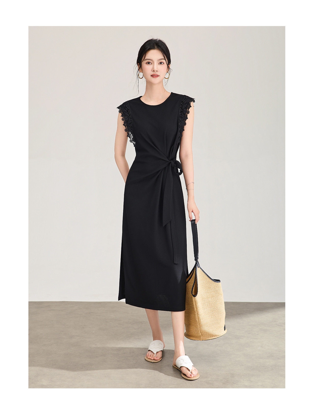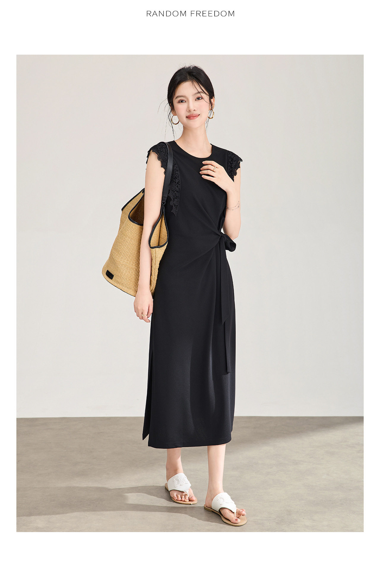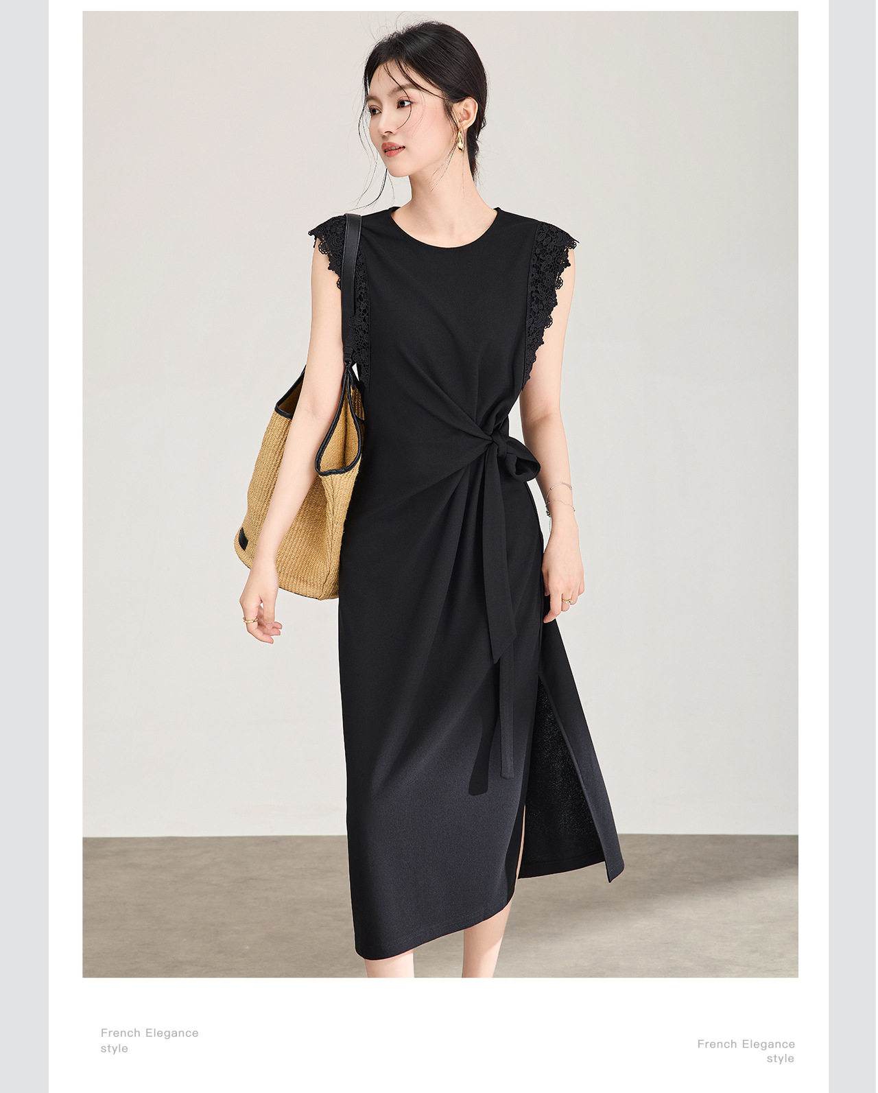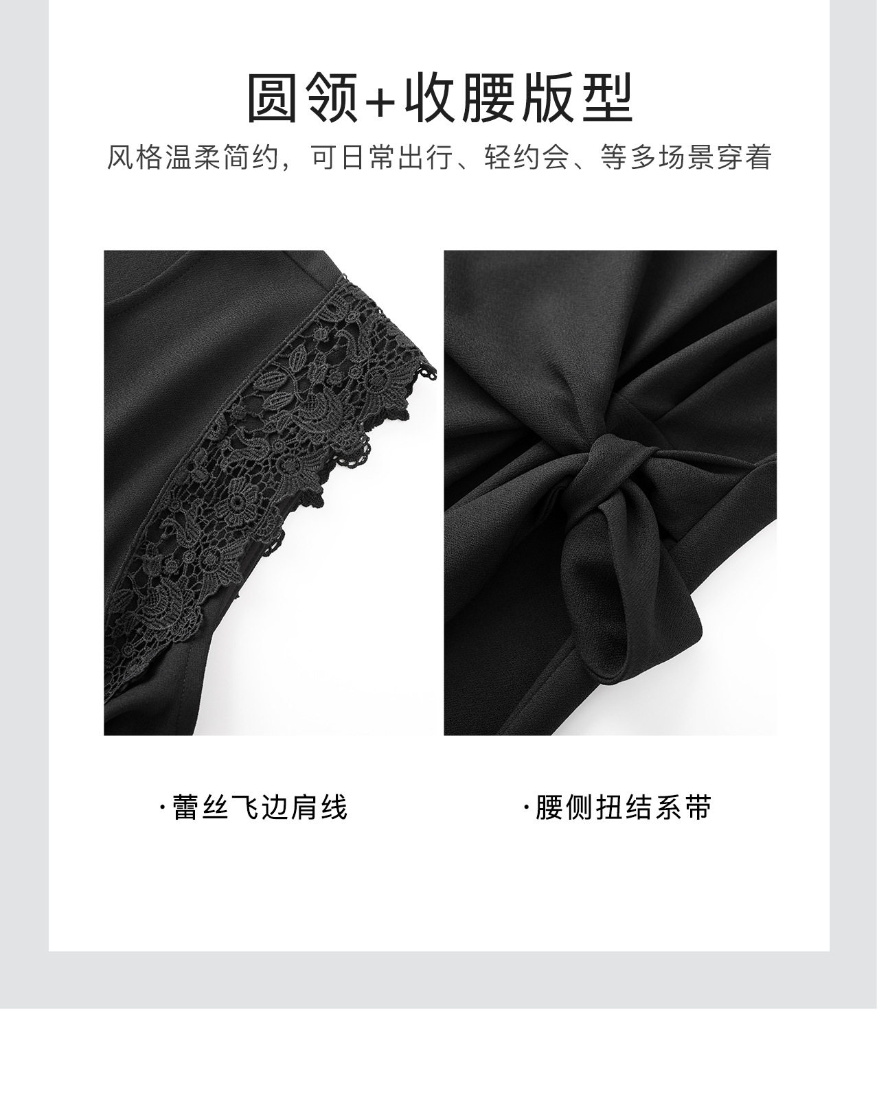 「高货wl」全新升级【铂金会员293/天猫389/差价96】(05513)洛诗琳2026极简气质设计感蕾丝拼接系带收腰修身连衣裙女