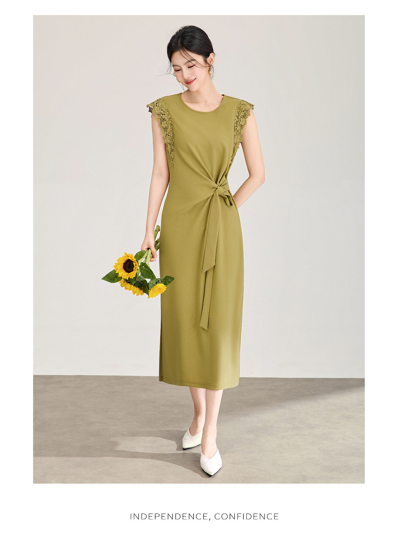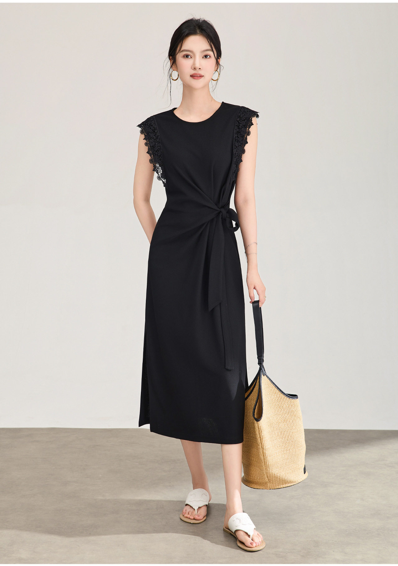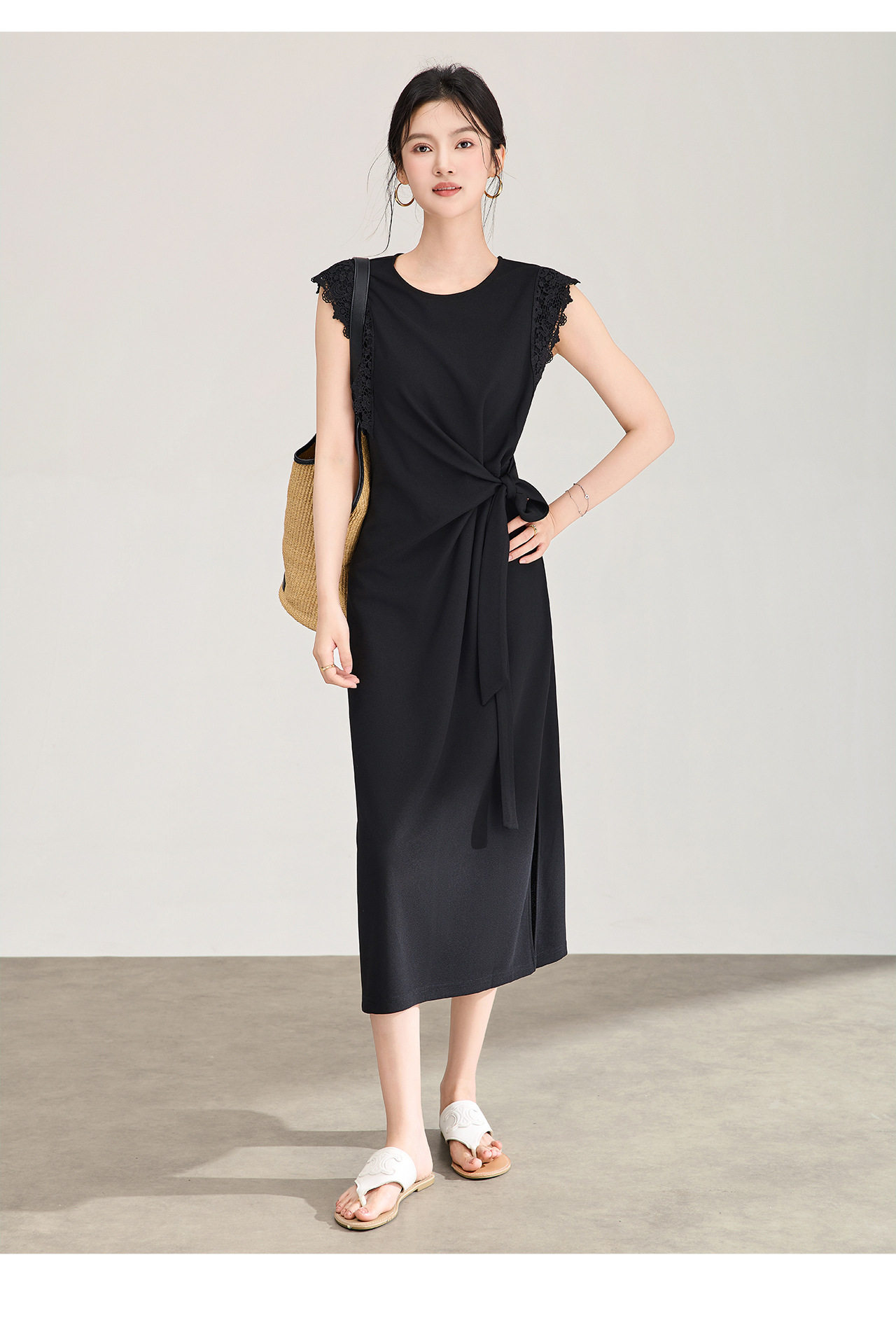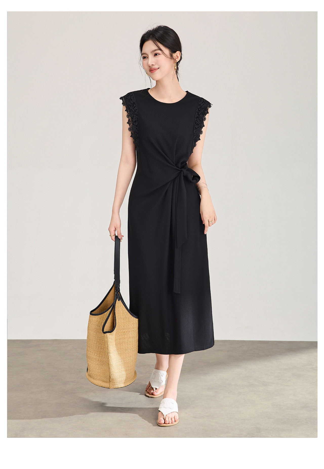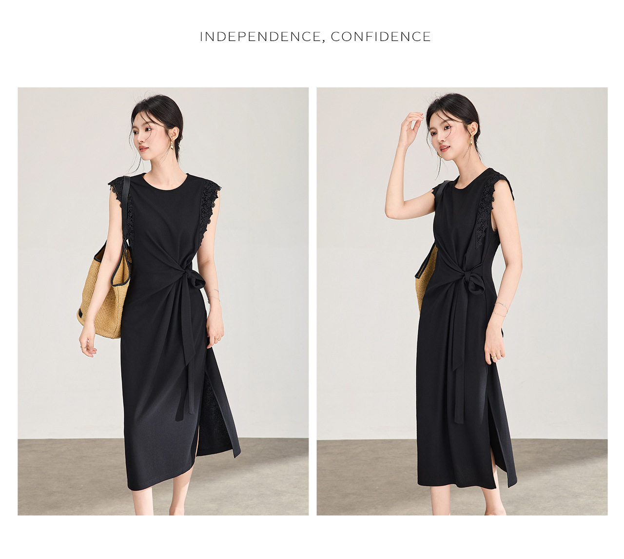 「高货wl」全新升级【铂金会员293/天猫389/差价96】(05513)洛诗琳2026极简气质设计感蕾丝拼接系带收腰修身连衣裙女