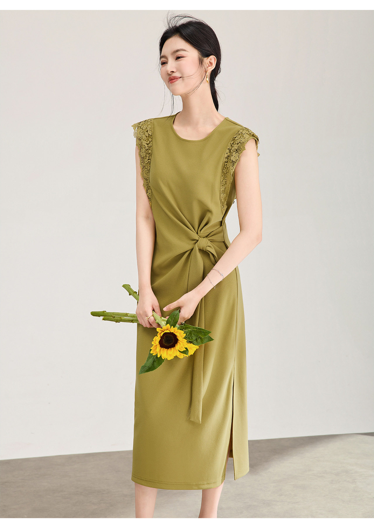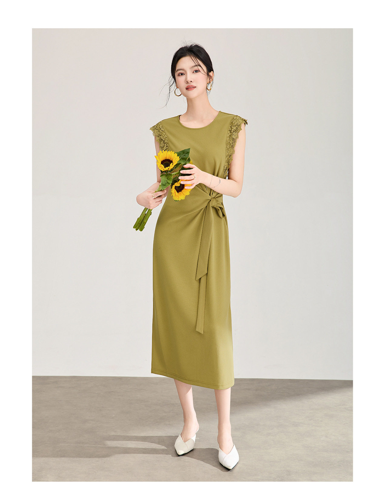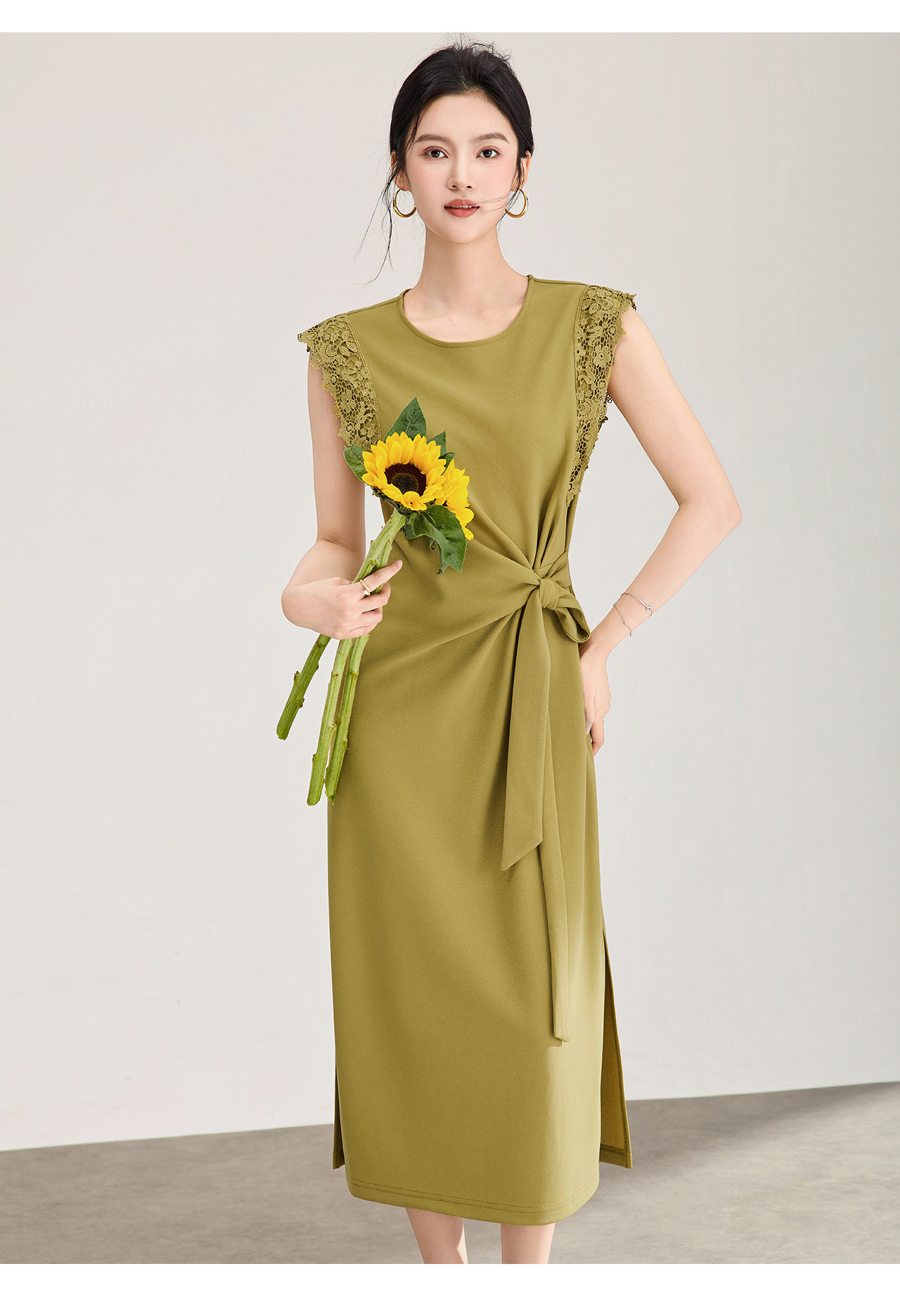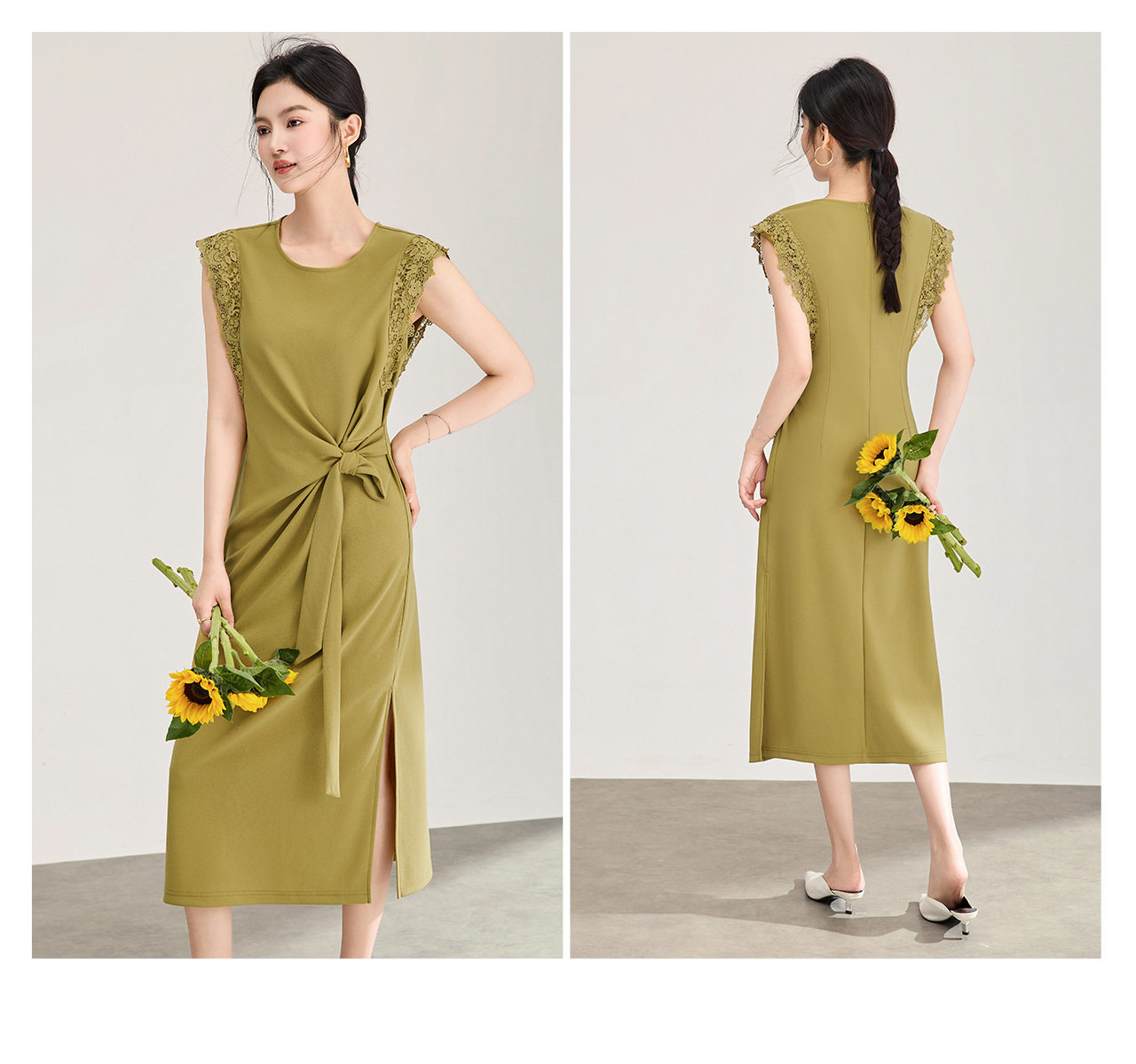 「高货wl」全新升级【铂金会员293/天猫389/差价96】(05513)洛诗琳2026极简气质设计感蕾丝拼接系带收腰修身连衣裙女