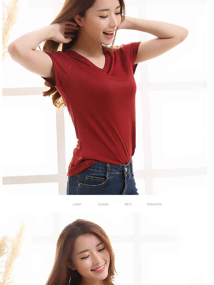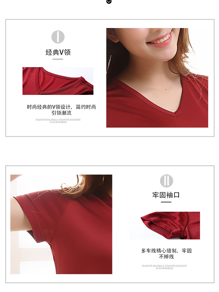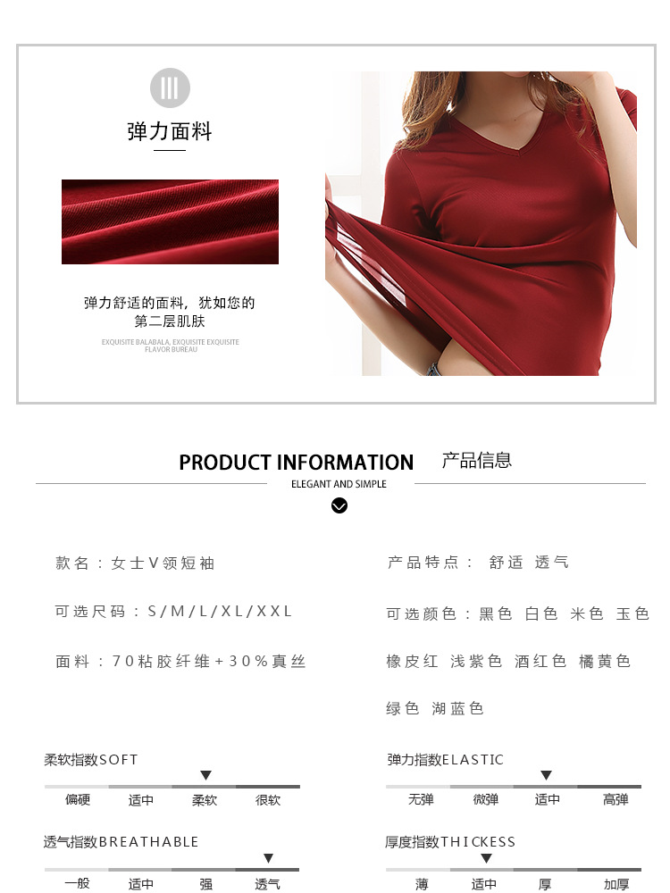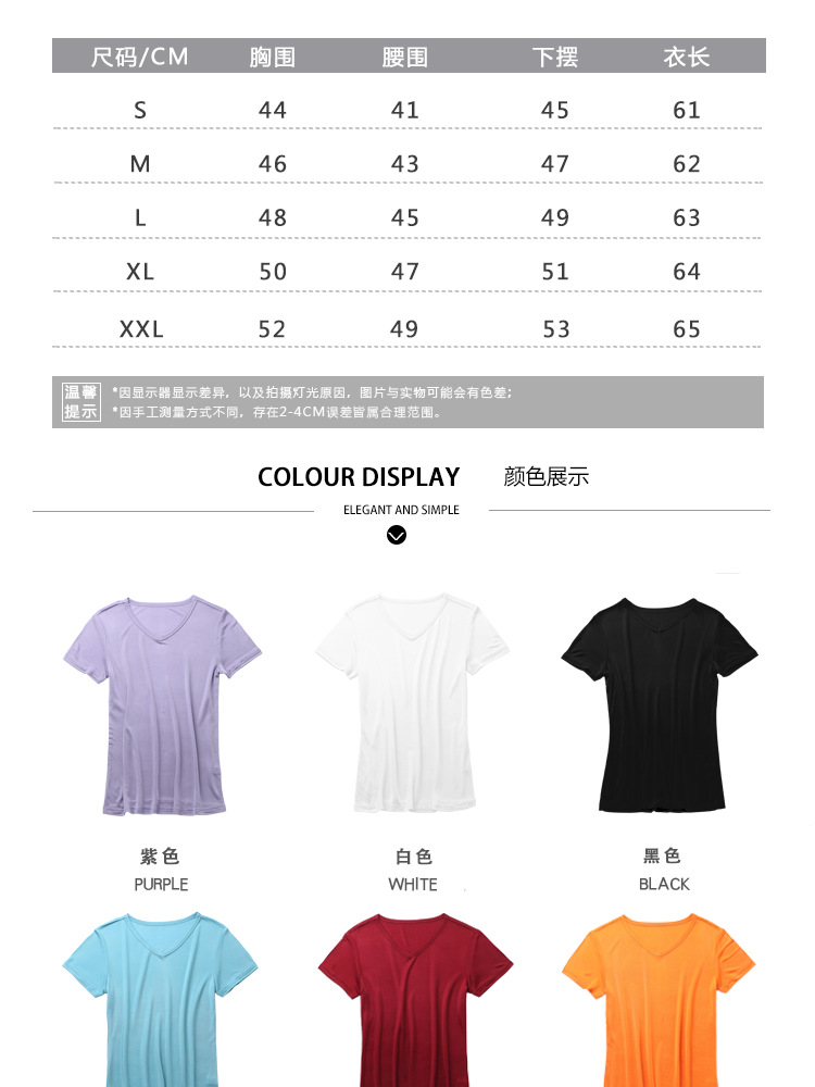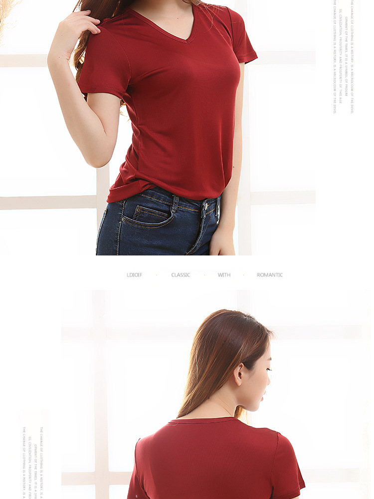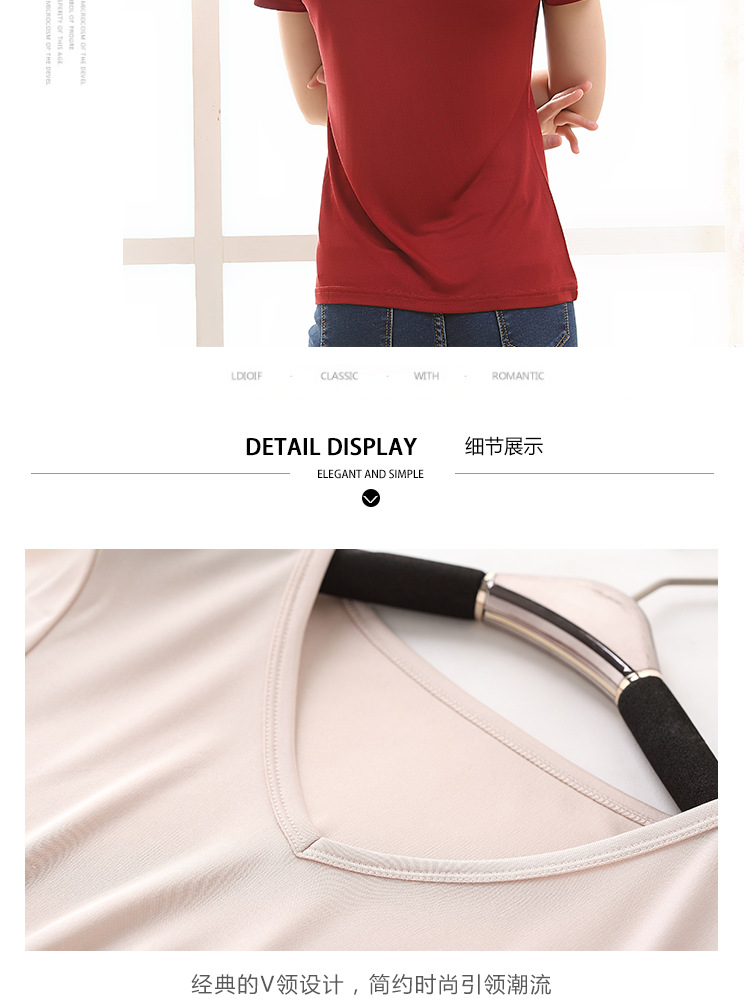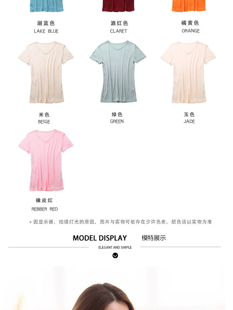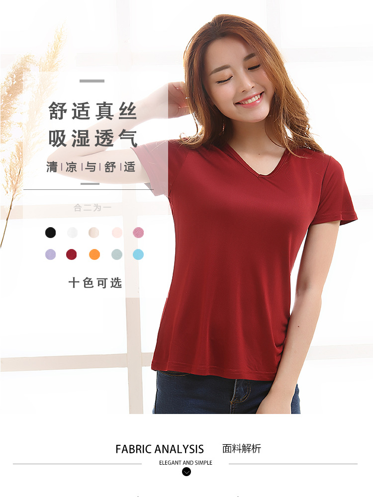 ARN-Y010夏季真丝女T恤短袖 时尚v领桑蚕丝打底衫 纯色针织修身上衣